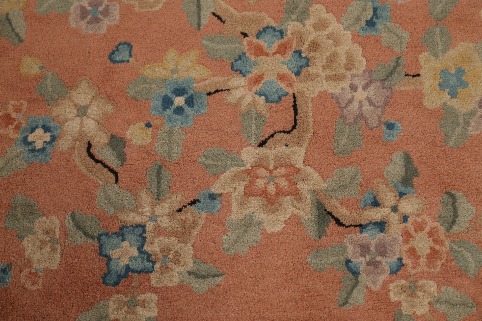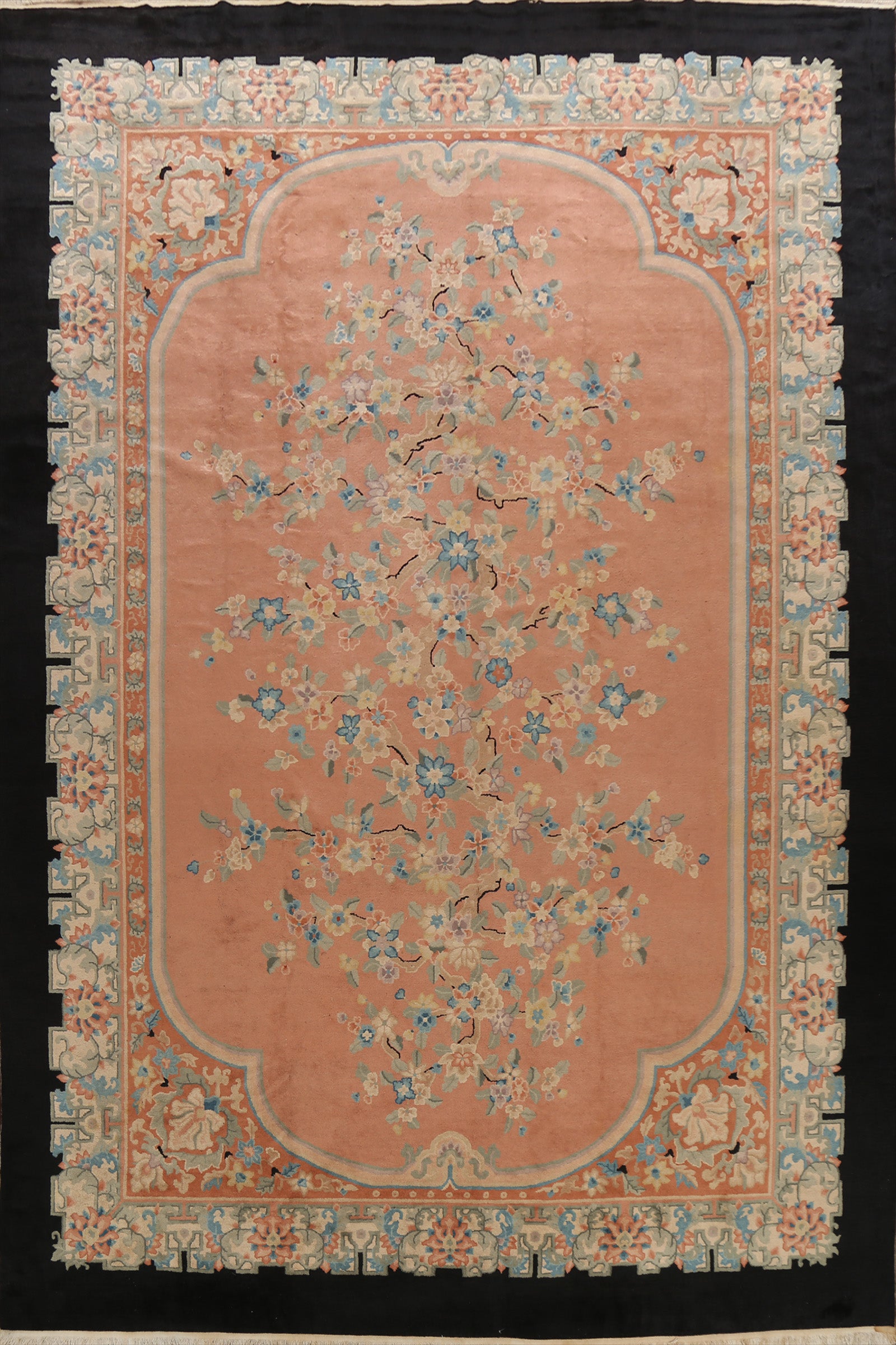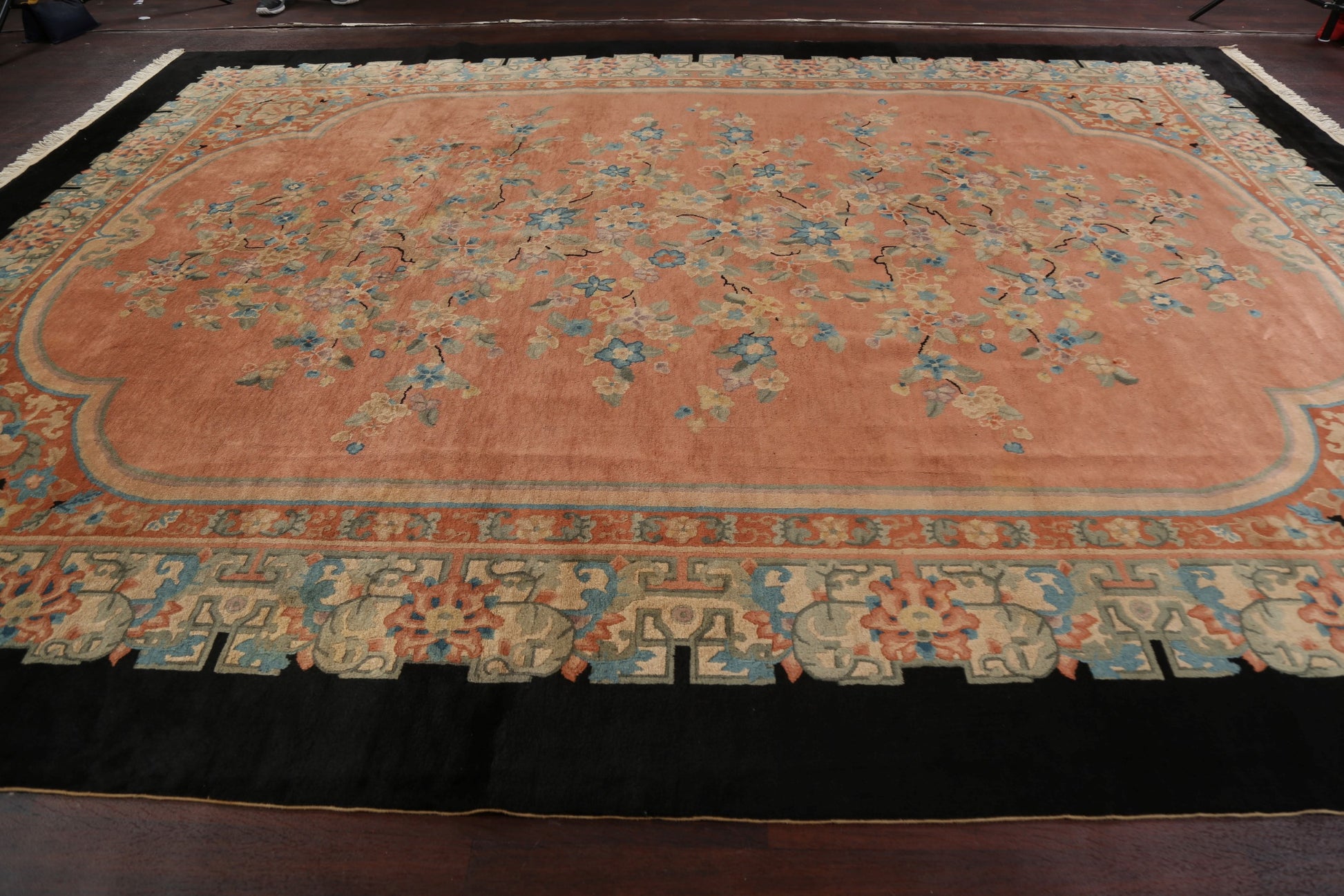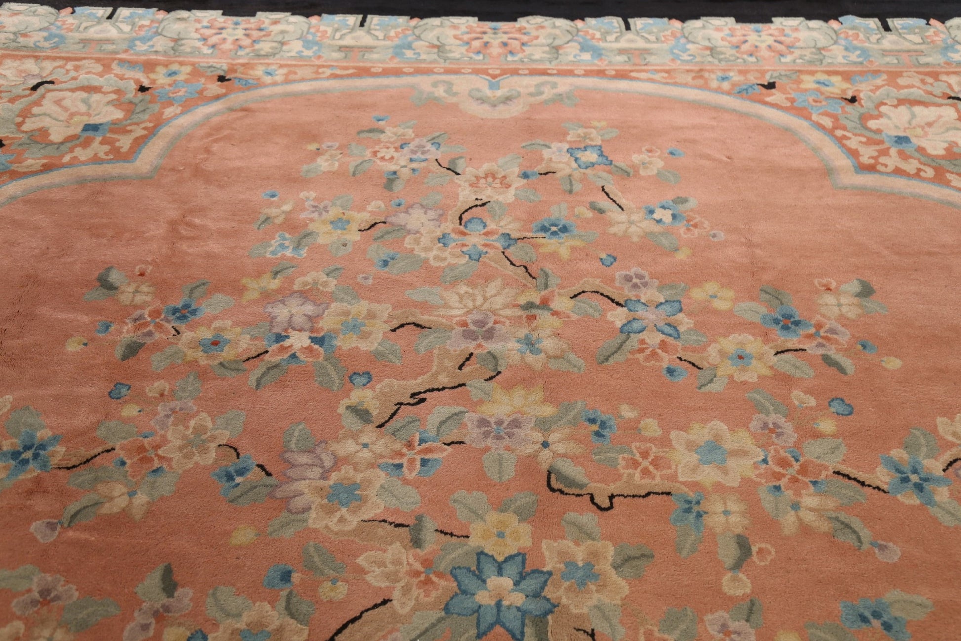 A Beautiful Genuine China Art Deco Nichols rug is Hand Knotted by skillful weavers in China with 100% Wool Material. This rug is in Very Good condition. dimensions are 13' 10'' X 10' 4'' in foot and 422 X 315 in centimeter. the primary color is Peach.
