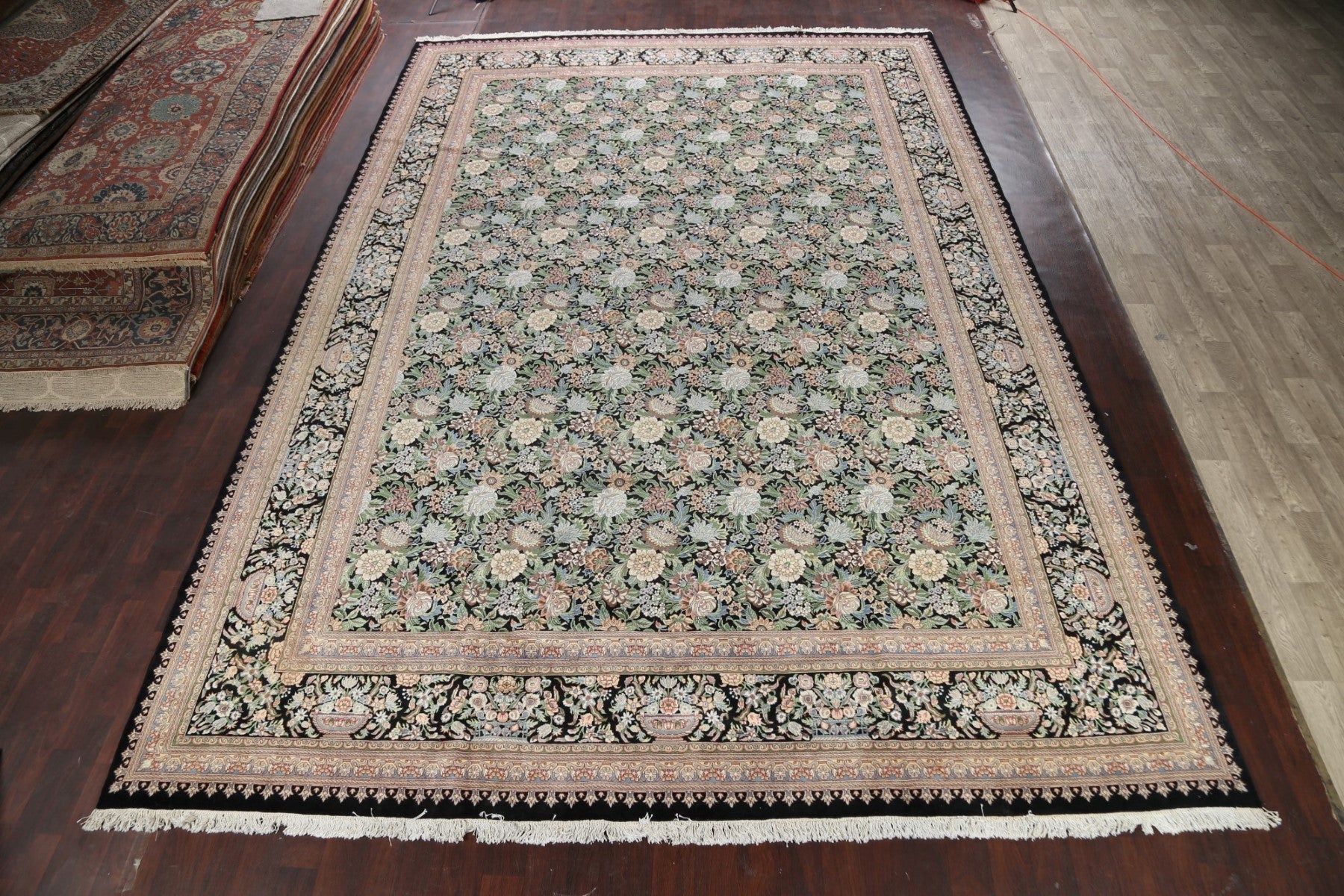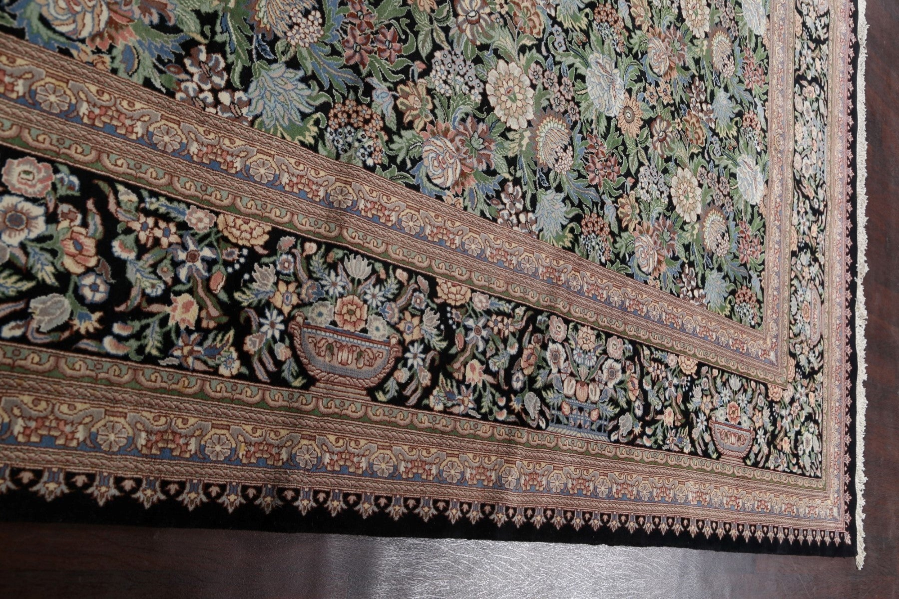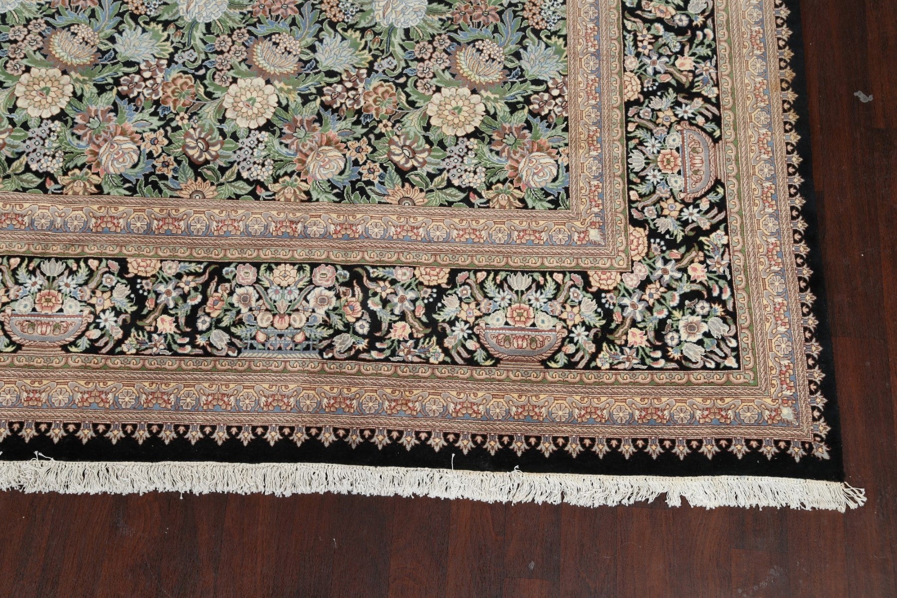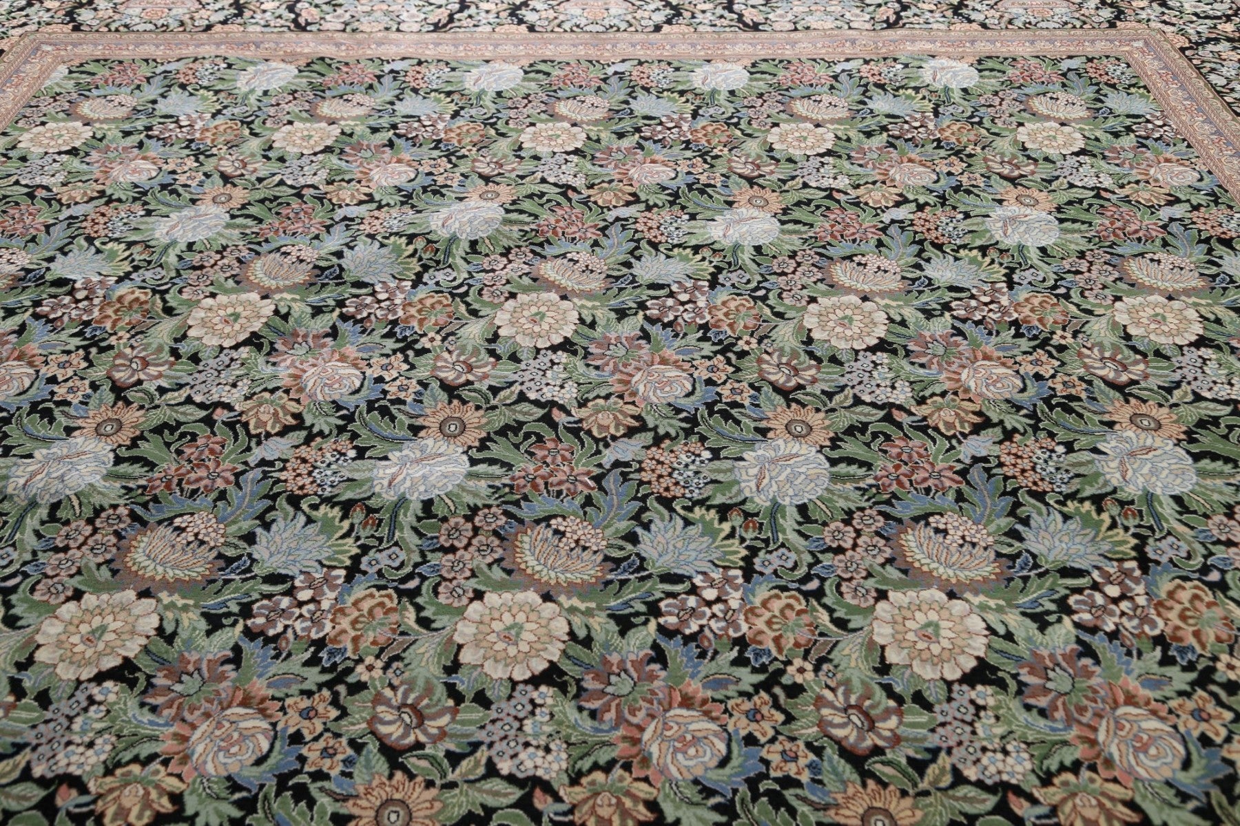 A Beautiful Genuine Pakistan Aubusson rug is Hand Knotted by skillful weavers in Pakistan with 100% Wool Material. This rug is in New, First Quality condition. dimensions are 17' 10'' X 12' 1'' in foot and 544 X 368 in centimeter. the primary color is Black.