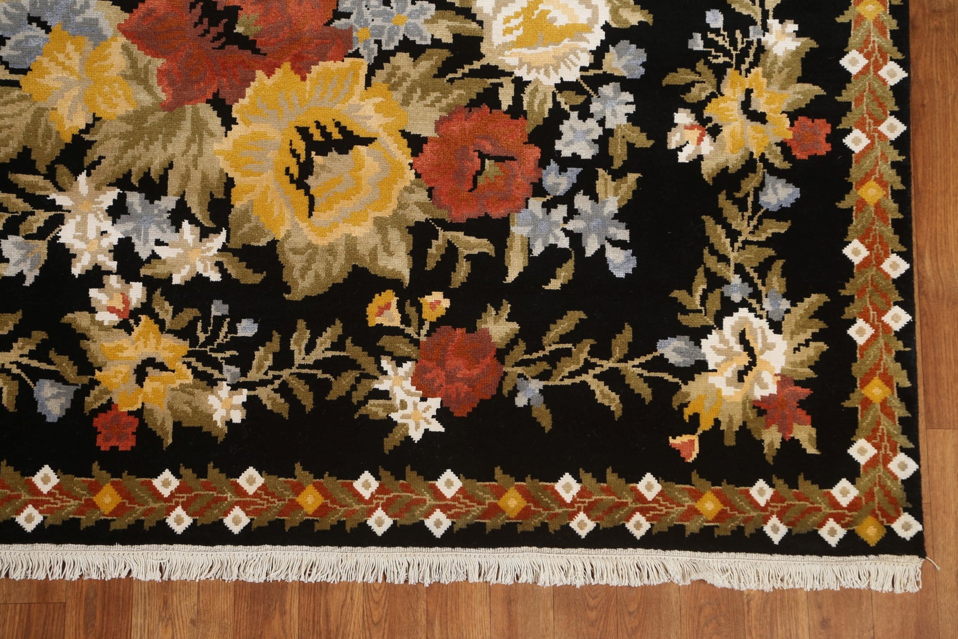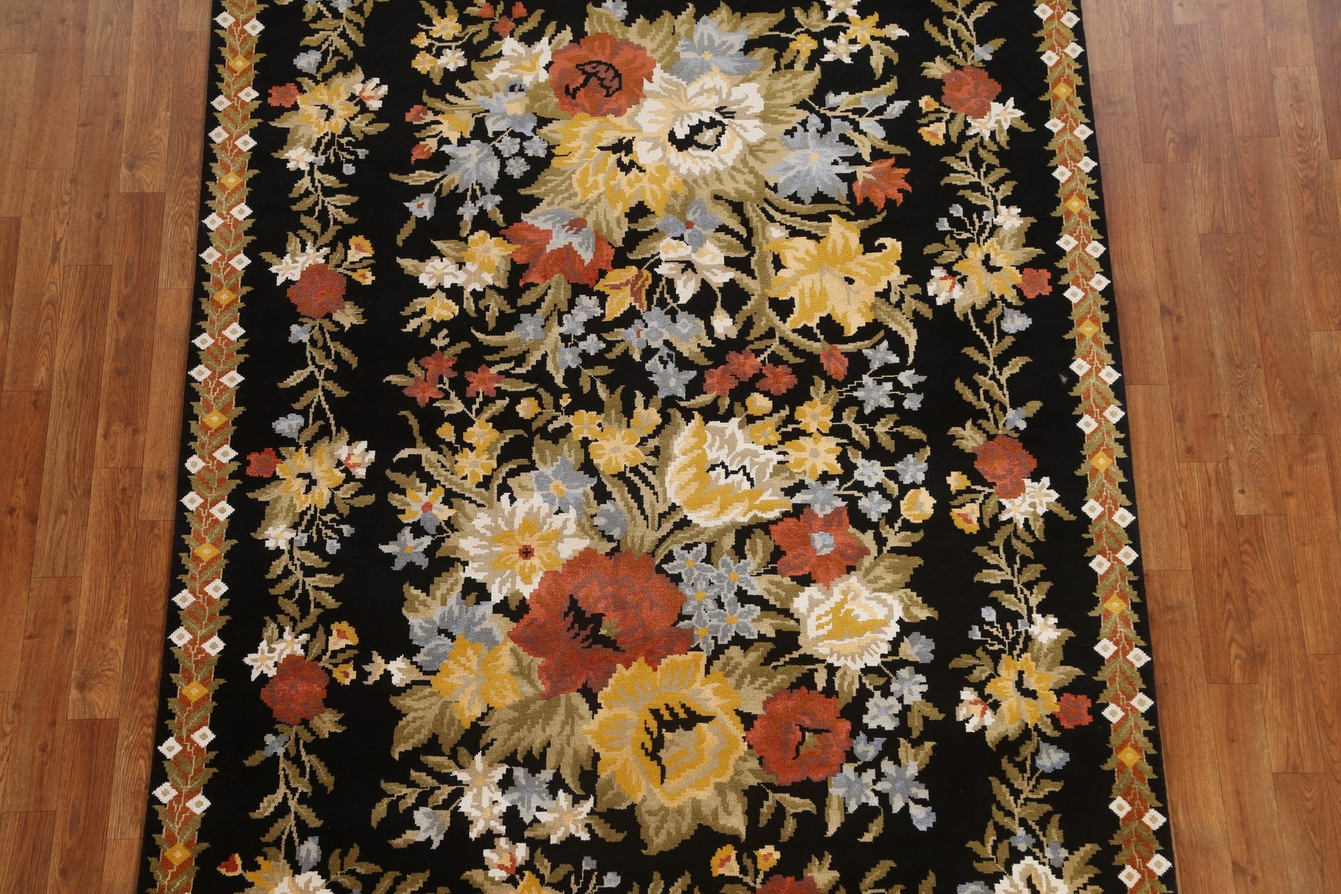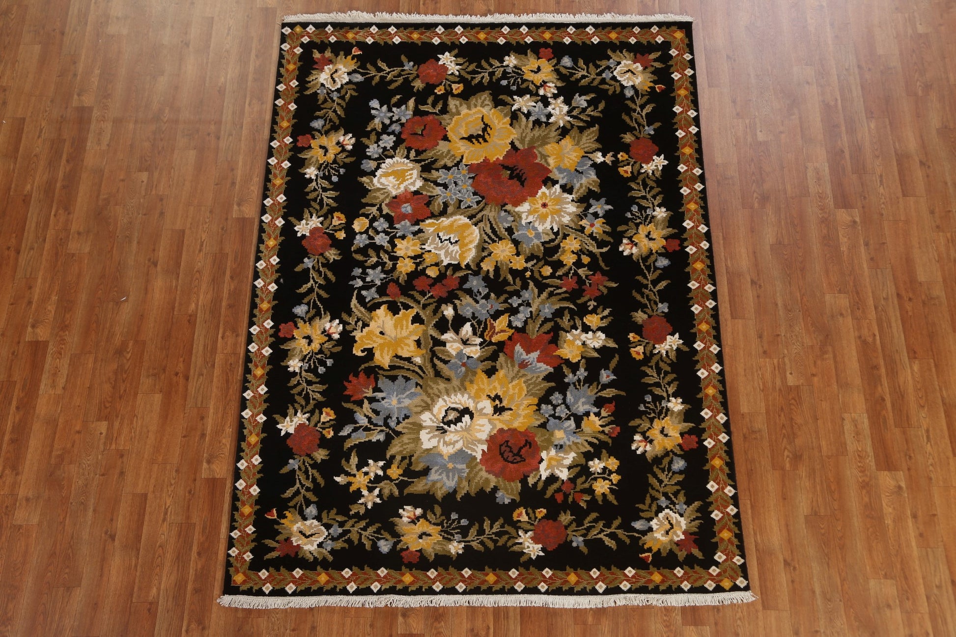 A Beautiful Genuine India Aubusson rug is Hand Knotted by skillful weavers in India with 100% Wool Material. This rug is in New, First Quality condition. dimensions are 7' 6'' X 5' 5'' in foot and 229 X 165 in centimeter. the primary color is Black.