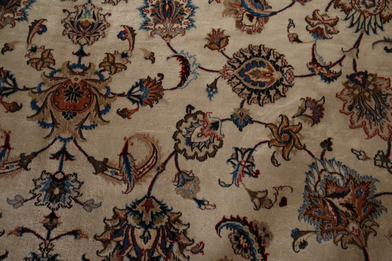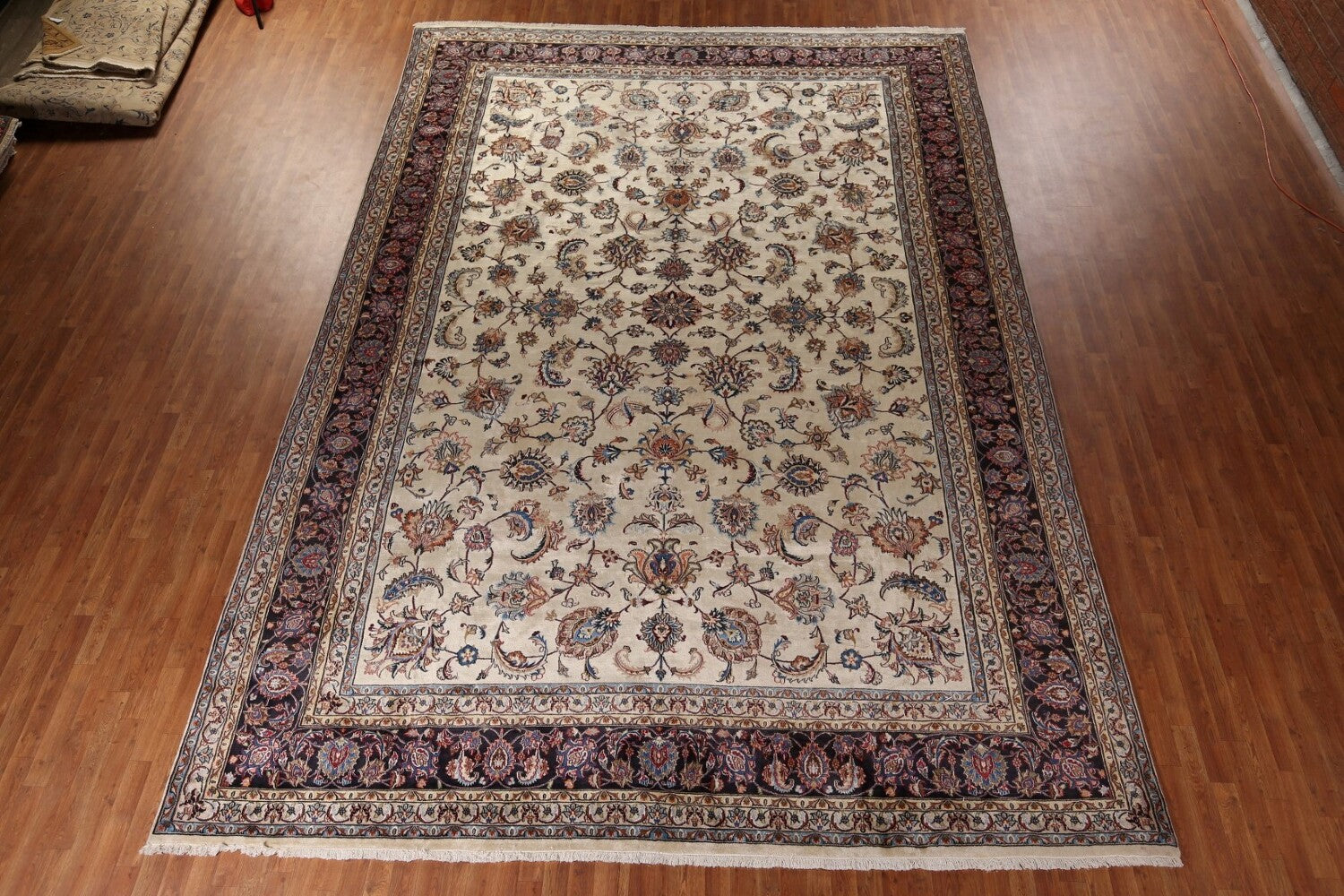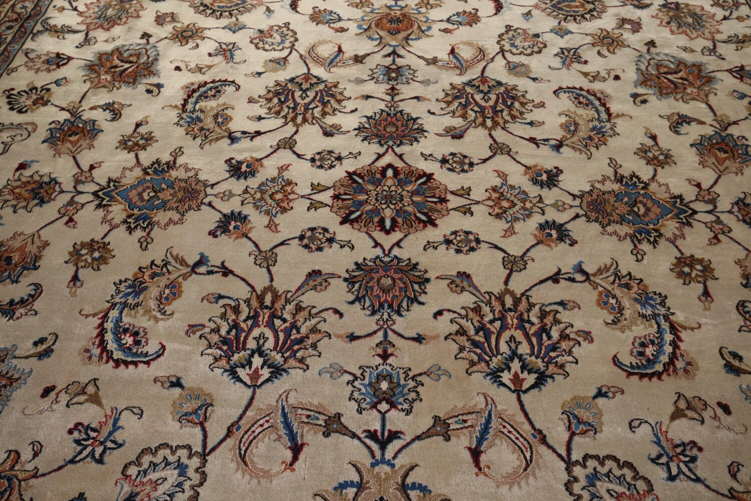 A Beautiful Genuine Persia ( Persia ) Kashmar rug is Hand Knotted by skillful weavers in Persia ( Persia ) with 100% Wool Material. This rug is in Very Good condition. dimensions are 16' 3'' X 11' 3'' in foot and 495 X 343 in centimeter. the primary color is Beige & Ivories.