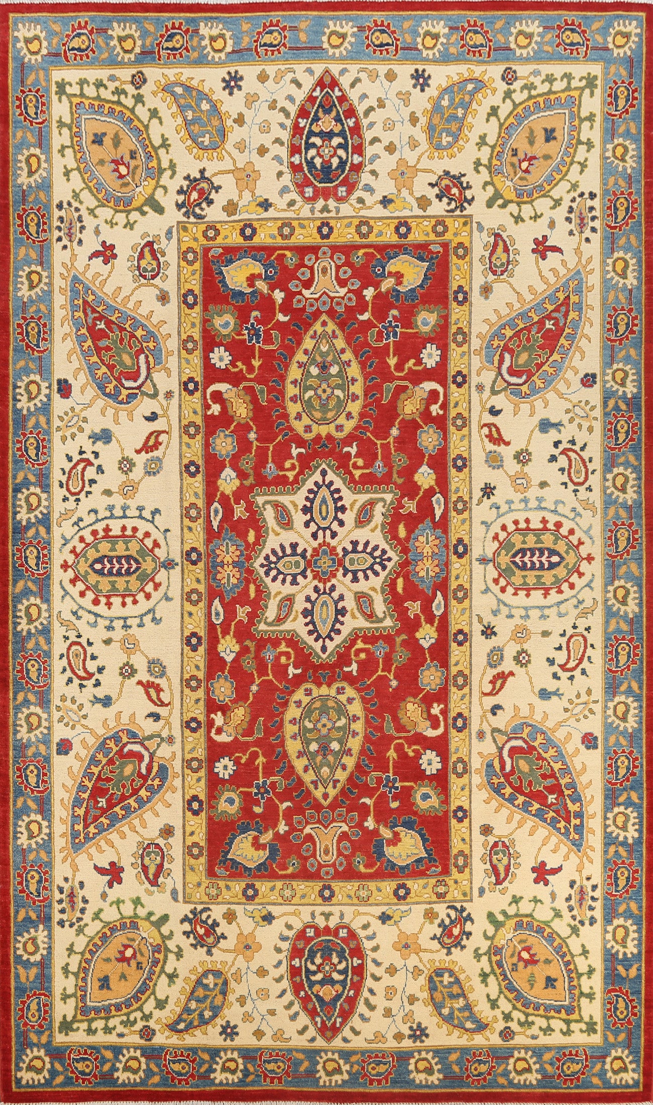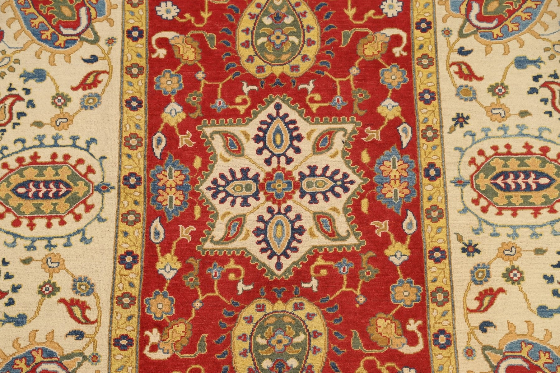 A Beautiful Genuine Pakistan Kazak rug is Hand Knotted by skillful weavers in Pakistan with 100% Wool Material. This rug is in New, First Quality condition. dimensions are 10' 0'' X 6' 6'' in foot and 305 X 198 in centimeter. the primary color is Red.