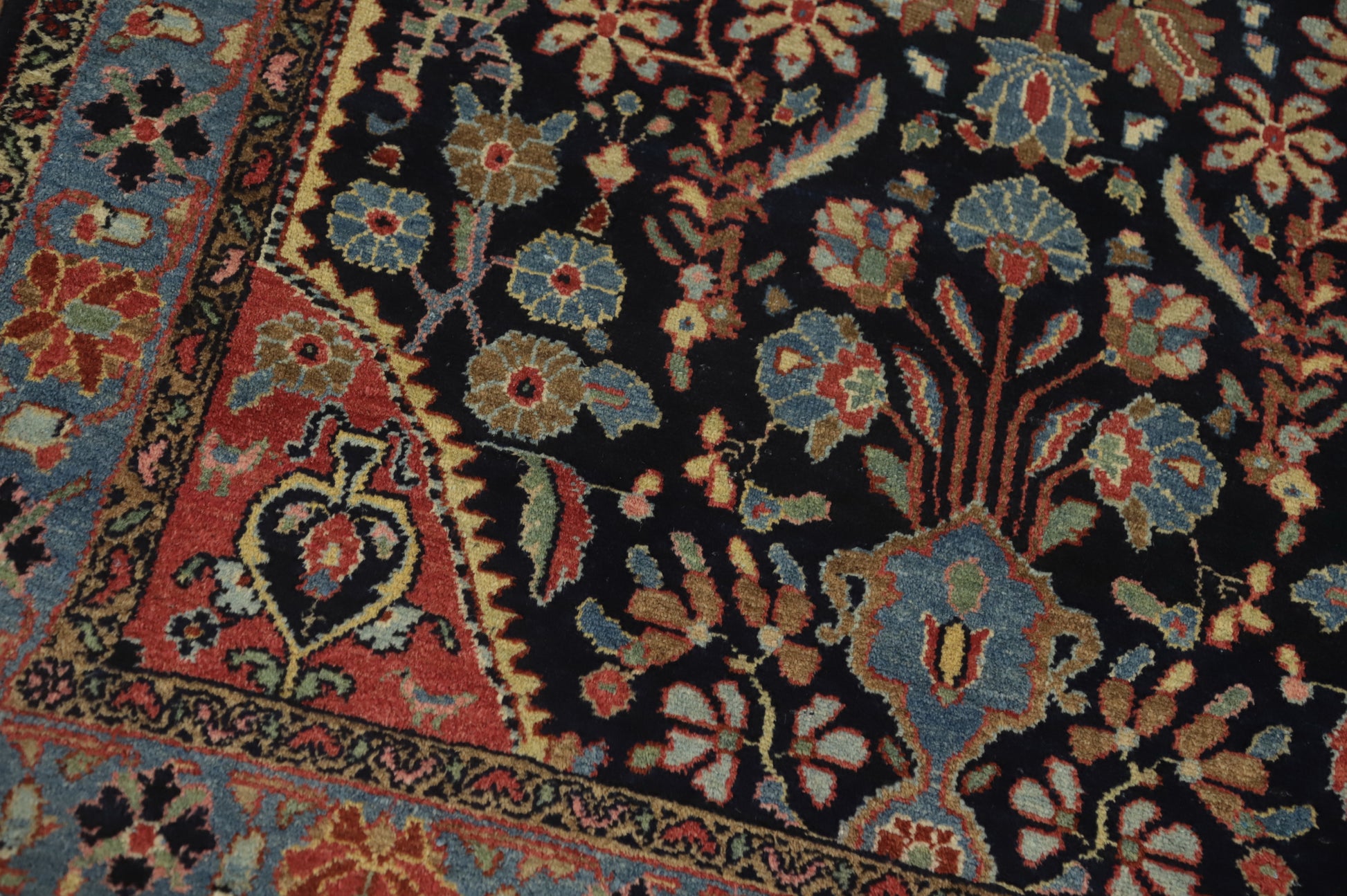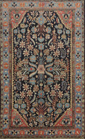 A Beautiful Genuine Persia ( Persia ) Lilian rug is Hand Knotted by skillful weavers in Persia ( Persia ) with 100% Wool Material. This rug is in Very Good (Evenly Low Pile) condition. dimensions are 6' 11'' X 4' 4'' in foot and 211 X 132 in centimeter. the primary color is Navy Blue & Blues.