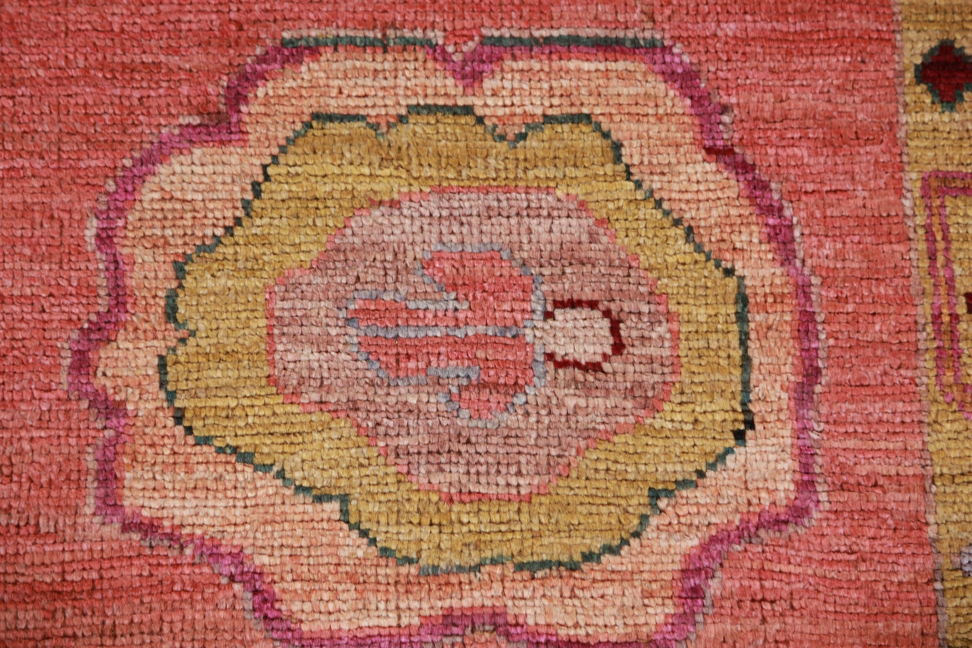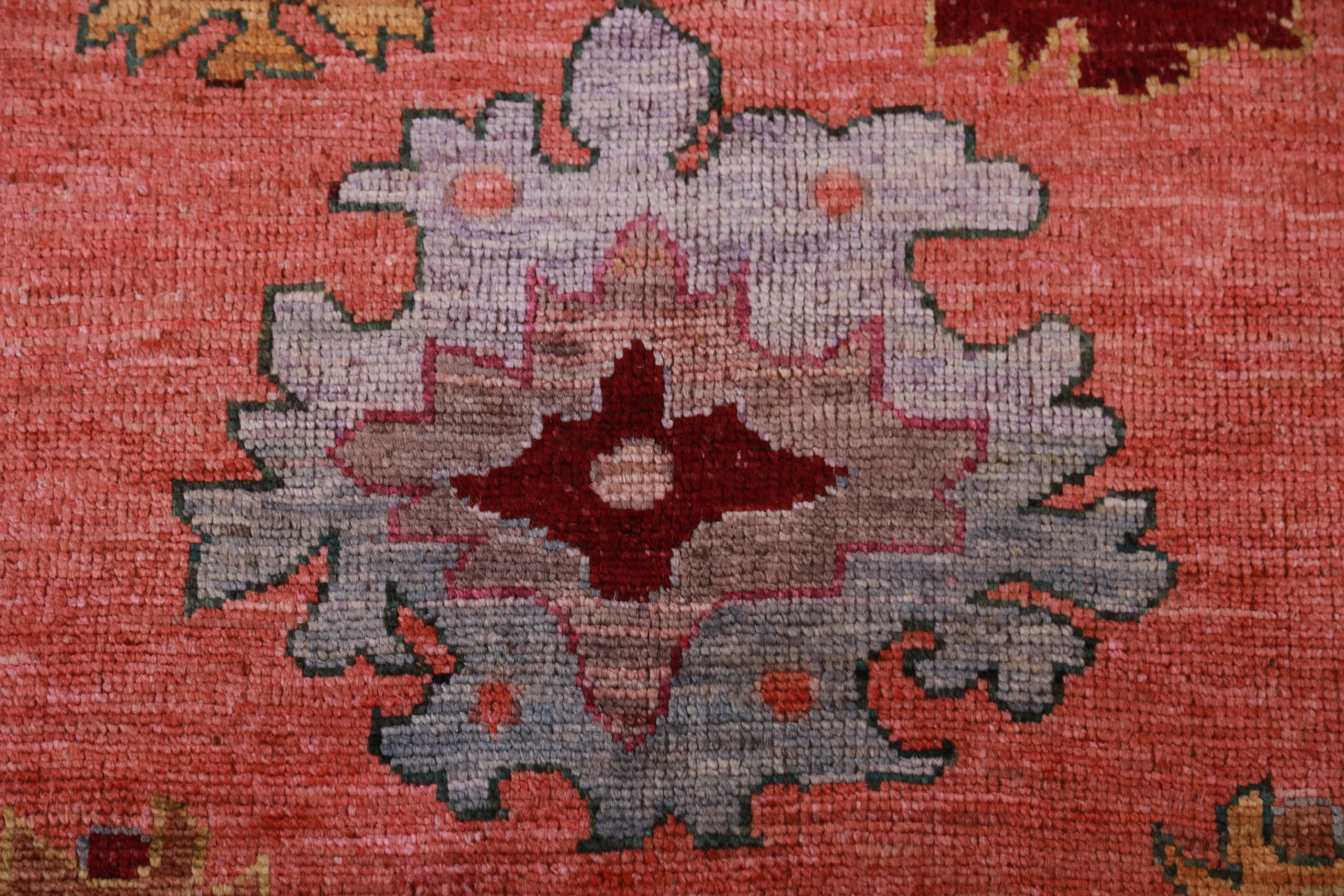 A Beautiful Genuine Turkey Oushak rug is Hand Knotted by skillful weavers in Turkey with 100% Wool Material. This rug is in New, First Quality condition. dimensions are 9' 8'' X 8' 2'' in foot and 295 X 249 in centimeter. the primary color is Coral.