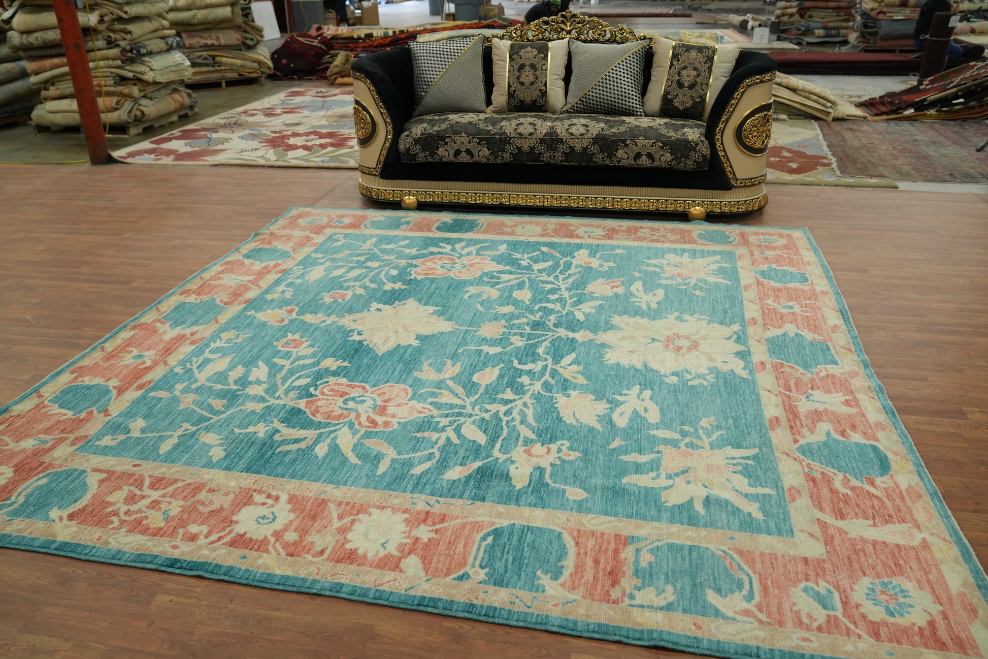 Vegetable Dye Floral Oushak Square Area Rug 10x10