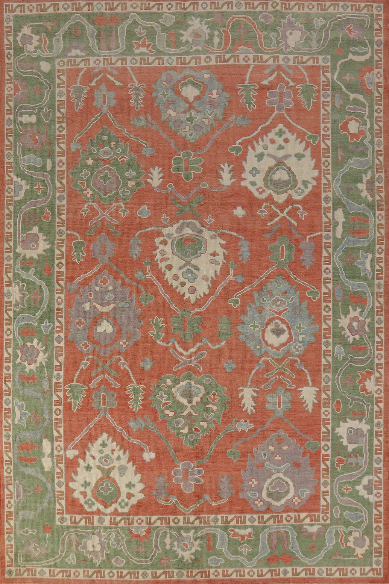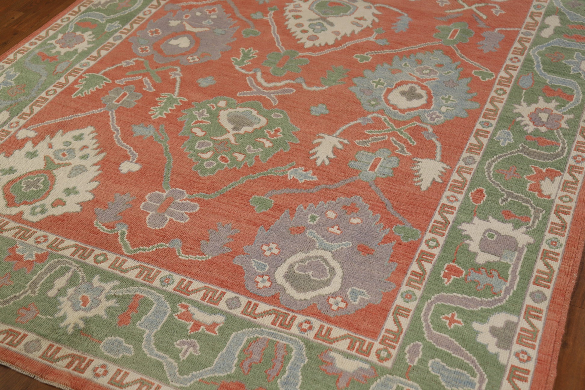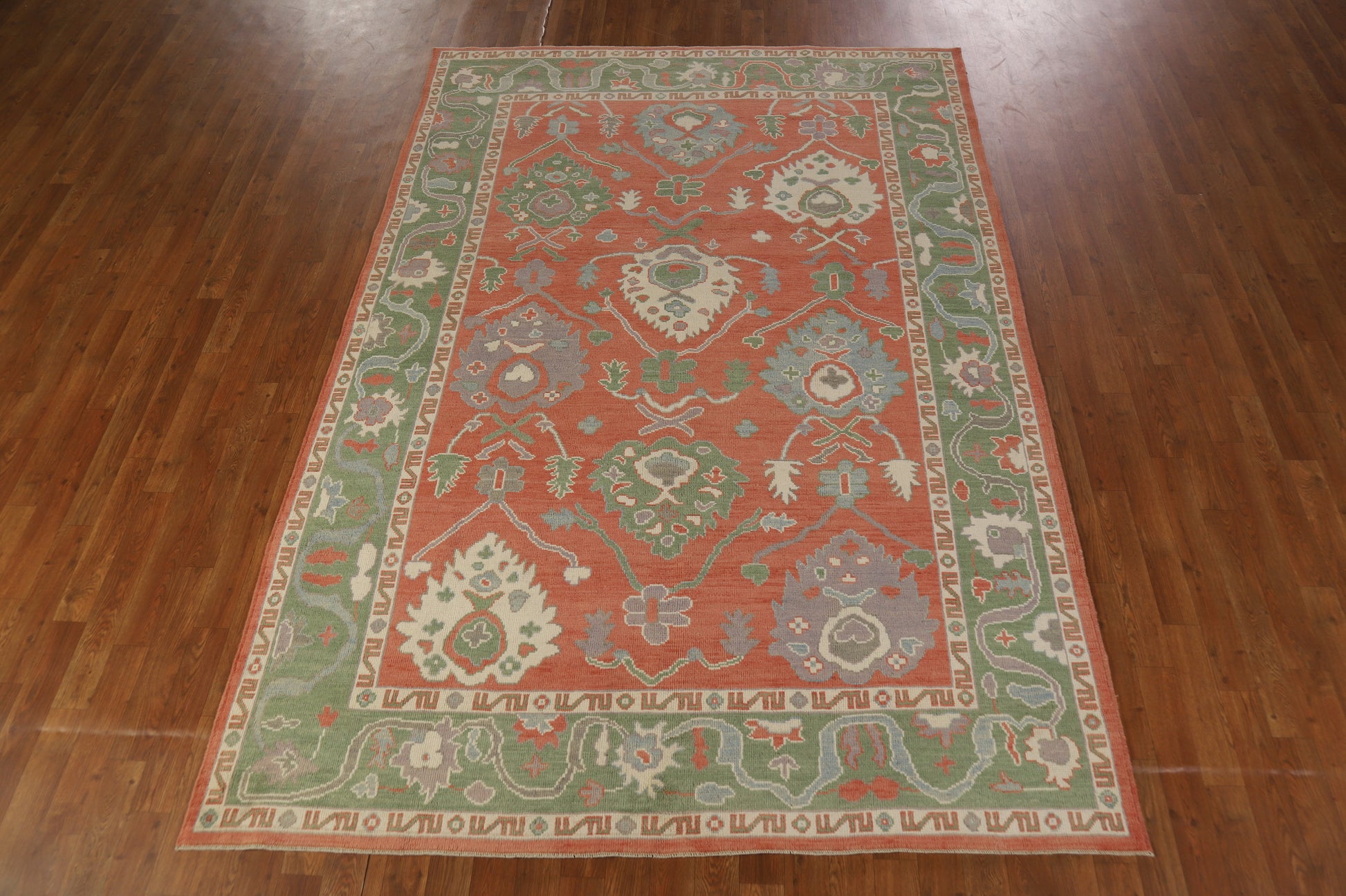 A Beautiful Genuine Turkey Oushak rug is Hand Knotted by skillful weavers in Turkey with 100% Wool Material. This rug is in New, First Quality condition. dimensions are 8' 10'' X 6' 1'' in foot and 269 X 185 in centimeter. the primary color is Oranges & Rust.