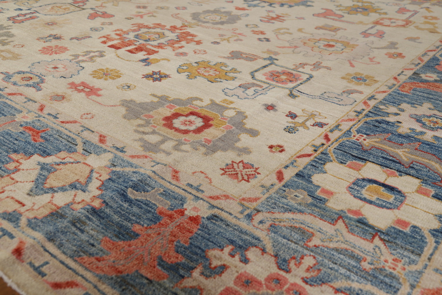 A Beautiful Genuine Turkey Oushak rug is Hand Knotted by skillful weavers in Turkey with 100% Wool Material. This rug is in New, First Quality condition. dimensions are 9' 9'' X 8' 1'' in foot and 297 X 246 in centimeter. the primary color is Beige & Ivories.