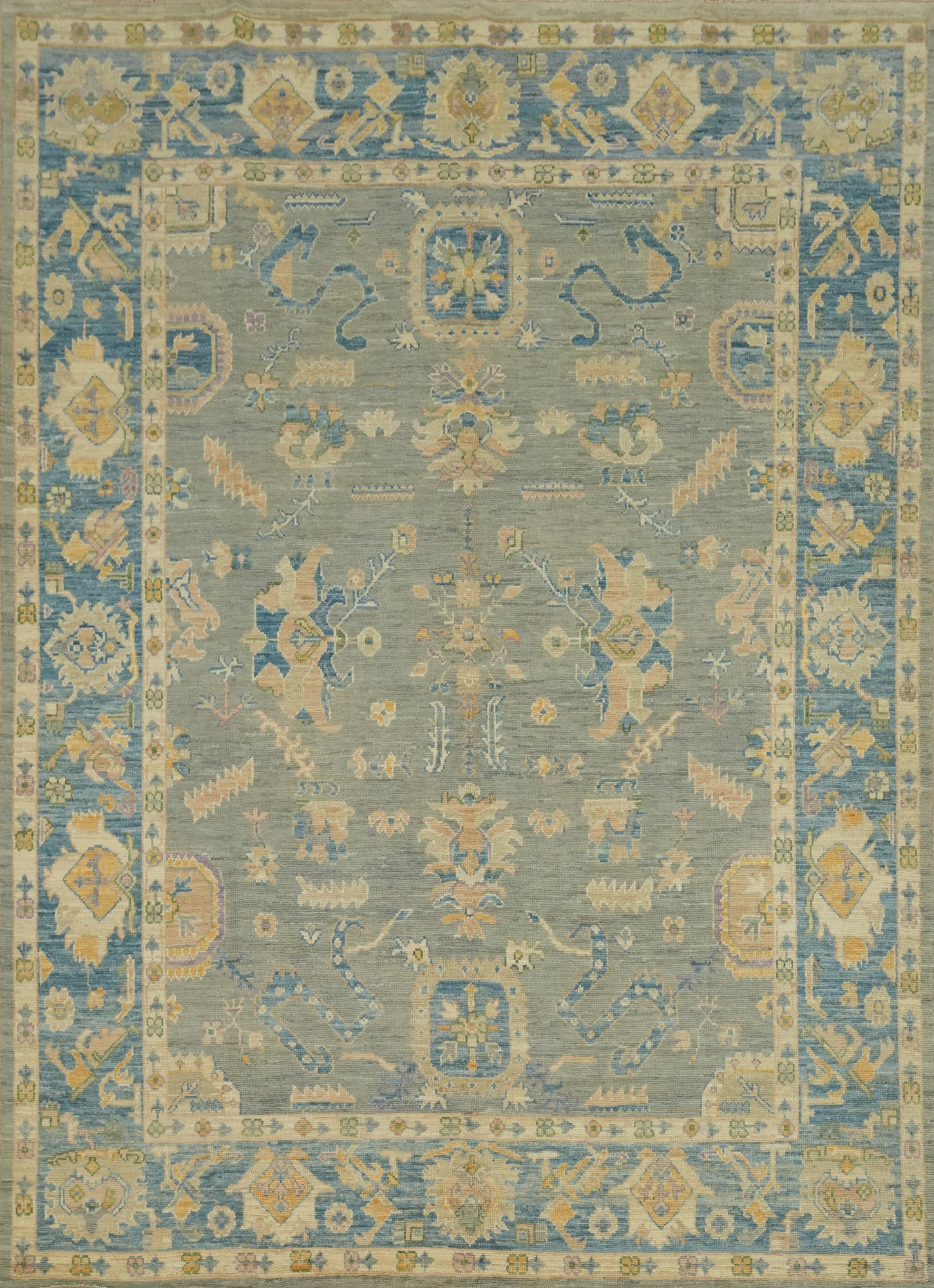 A Beautiful Genuine Turkey Oushak rug is Hand Knotted by skillful weavers in Turkey with 100% Wool Material. This rug is in New, First Quality condition. dimensions are 10' 1'' X 8' 2'' in foot and 307 X 249 in centimeter. the primary color is Greys & Charcoal.