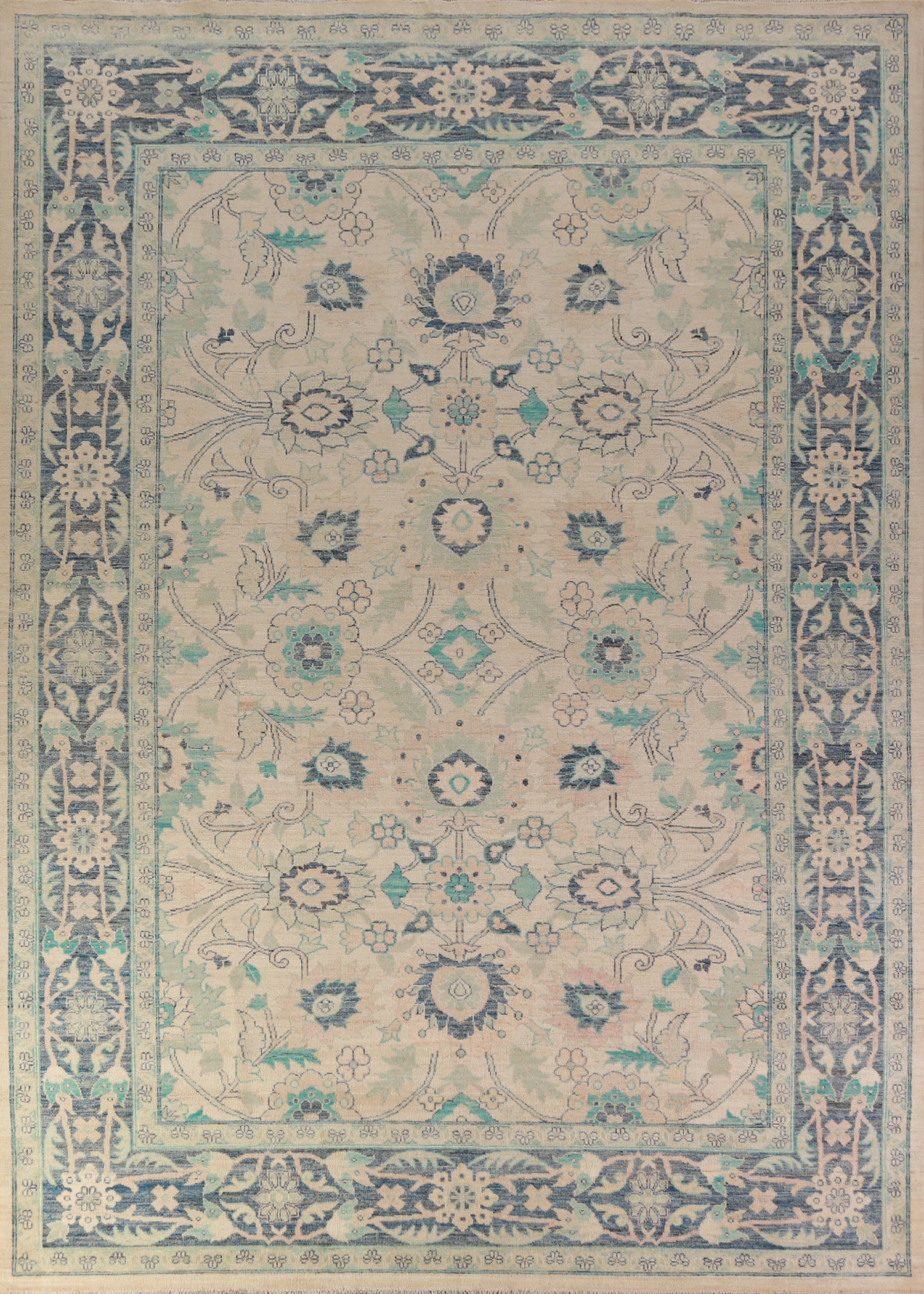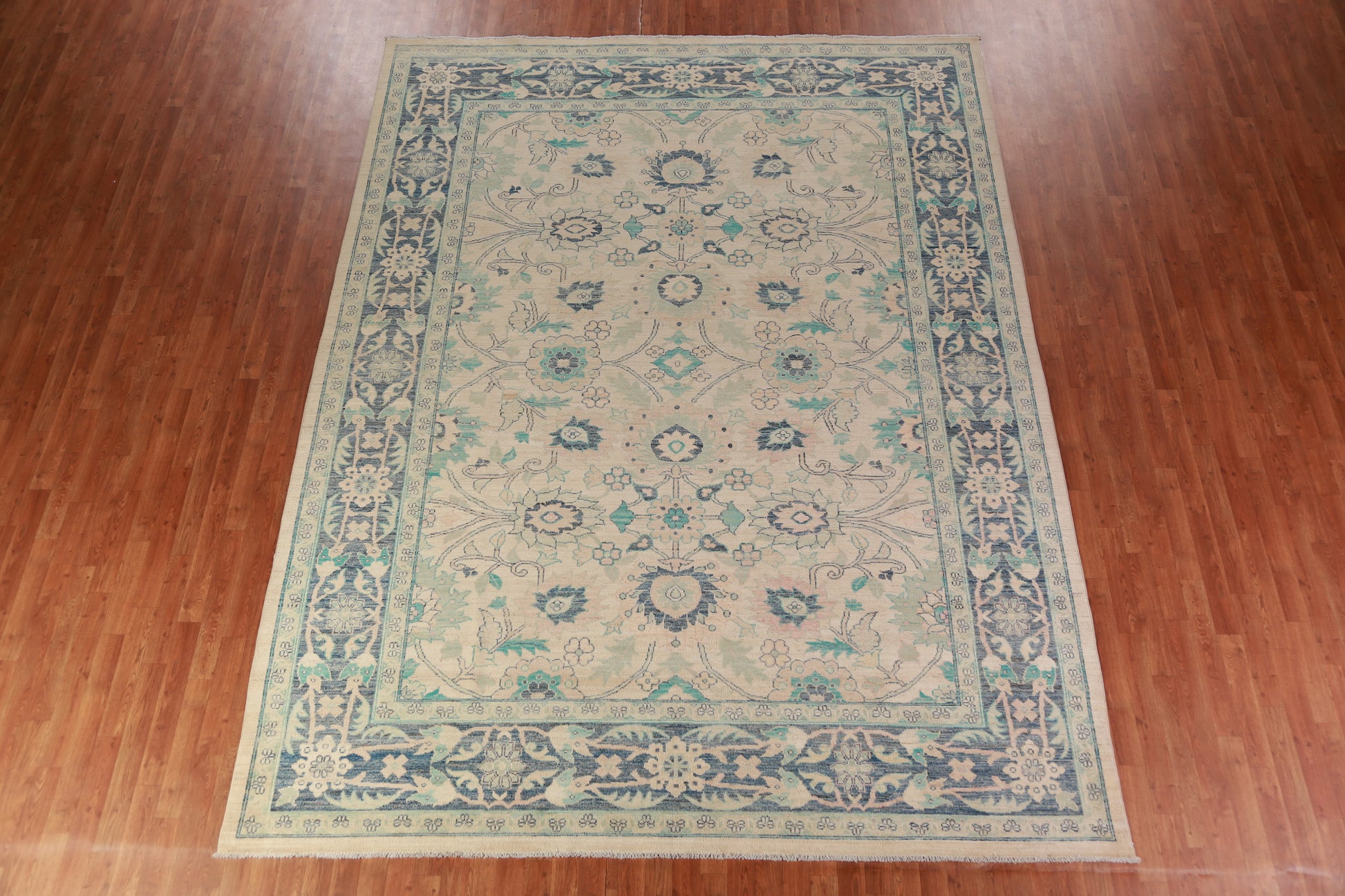 Vegetable Dye Floral Oushak Turkish Area Rug 9x12