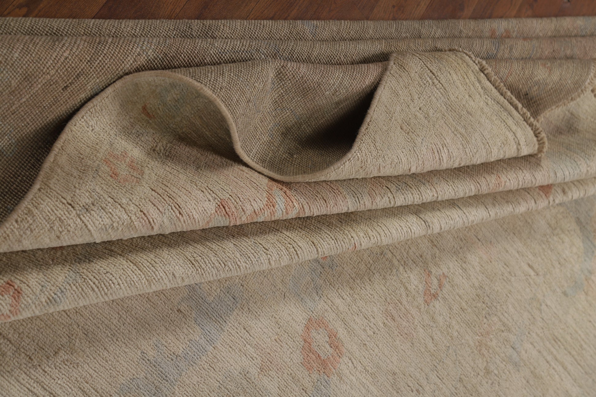 A Beautiful Genuine Turkey Oushak rug is Hand Knotted by skillful weavers in Turkey with 100% Wool Material. This rug is in New, First Quality condition. dimensions are 12' 0'' X 9' 2'' in foot and 366 X 279 in centimeter. the primary color is Beige & Ivories.
