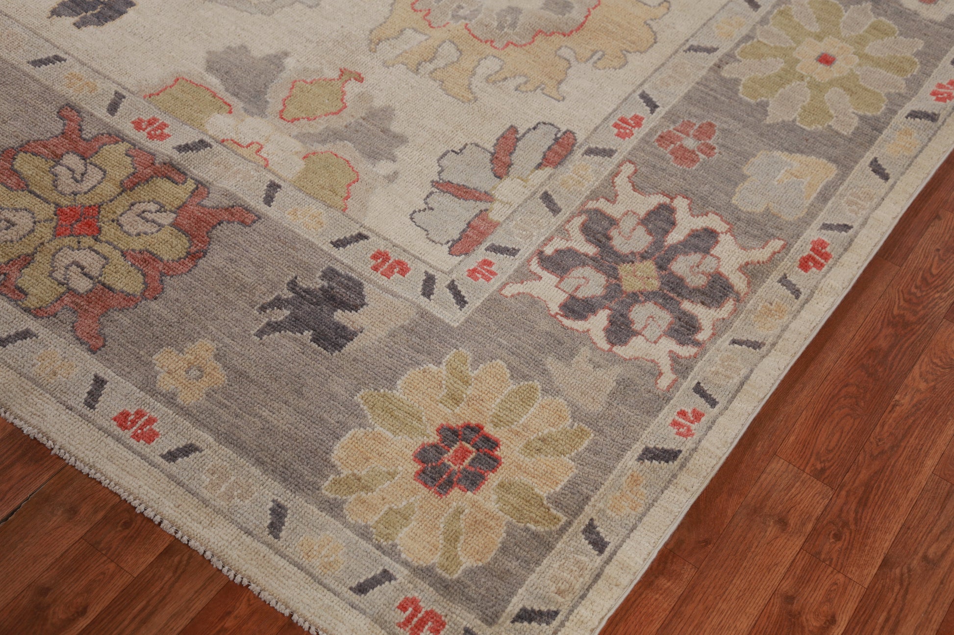 Vegetable Dye Floral Oushak Turkish Area Rug 9x12