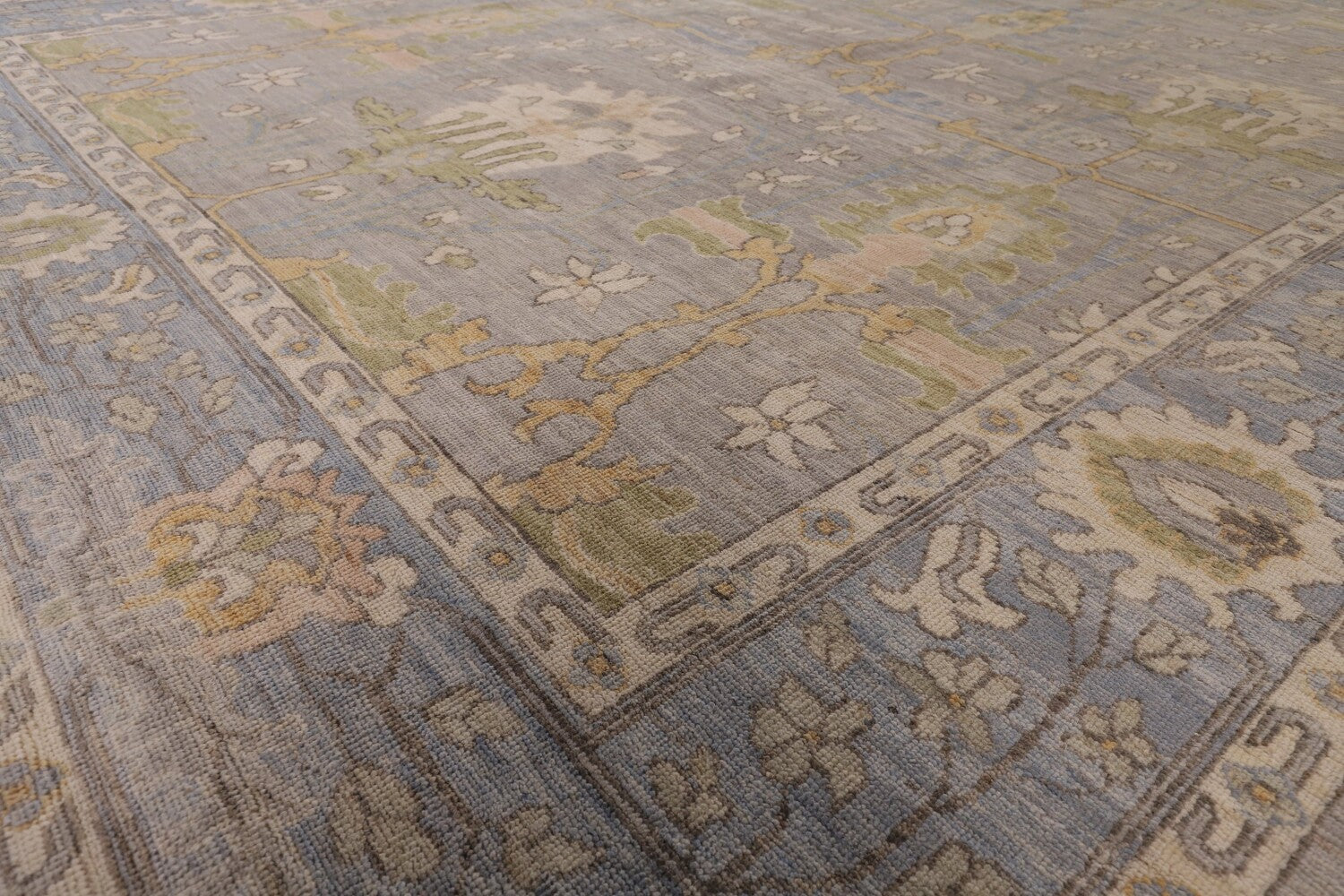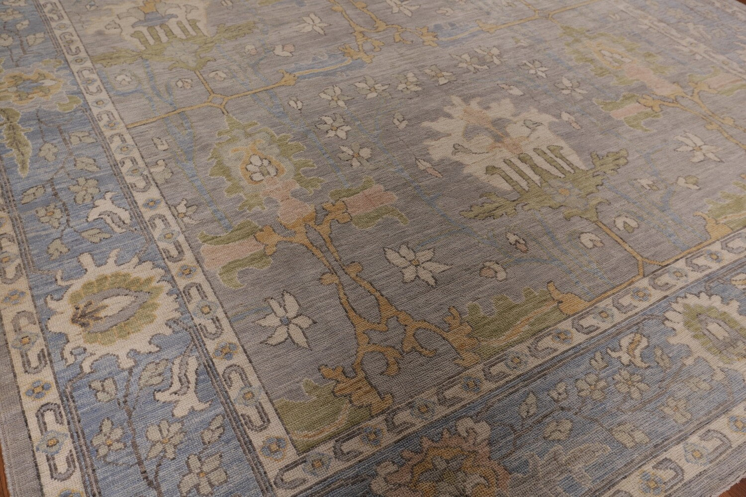 Vegetable Dye Floral Oushak Turkish Area Rug 9x12
