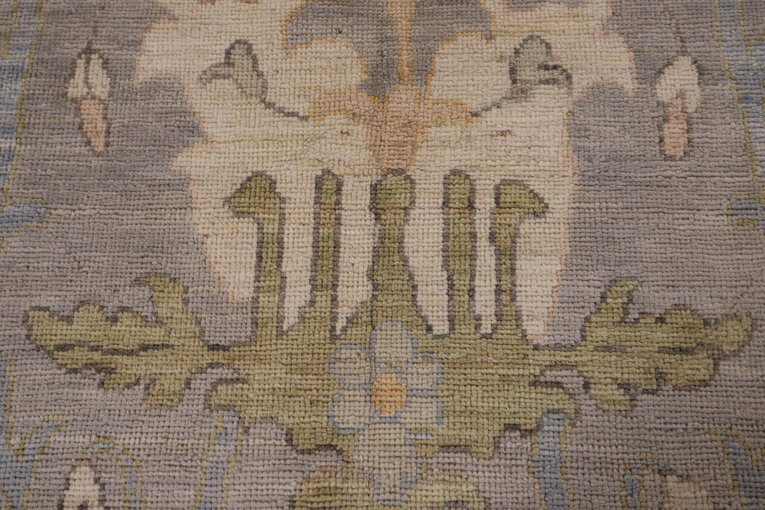 A Beautiful Genuine Turkey Oushak rug is Hand Knotted by skillful weavers in Turkey with 100% Wool Material. This rug is in New, First Quality condition. dimensions are 11' 11'' X 9' 1'' in foot and 363 X 277 in centimeter. the primary color is Greys & Charcoal.