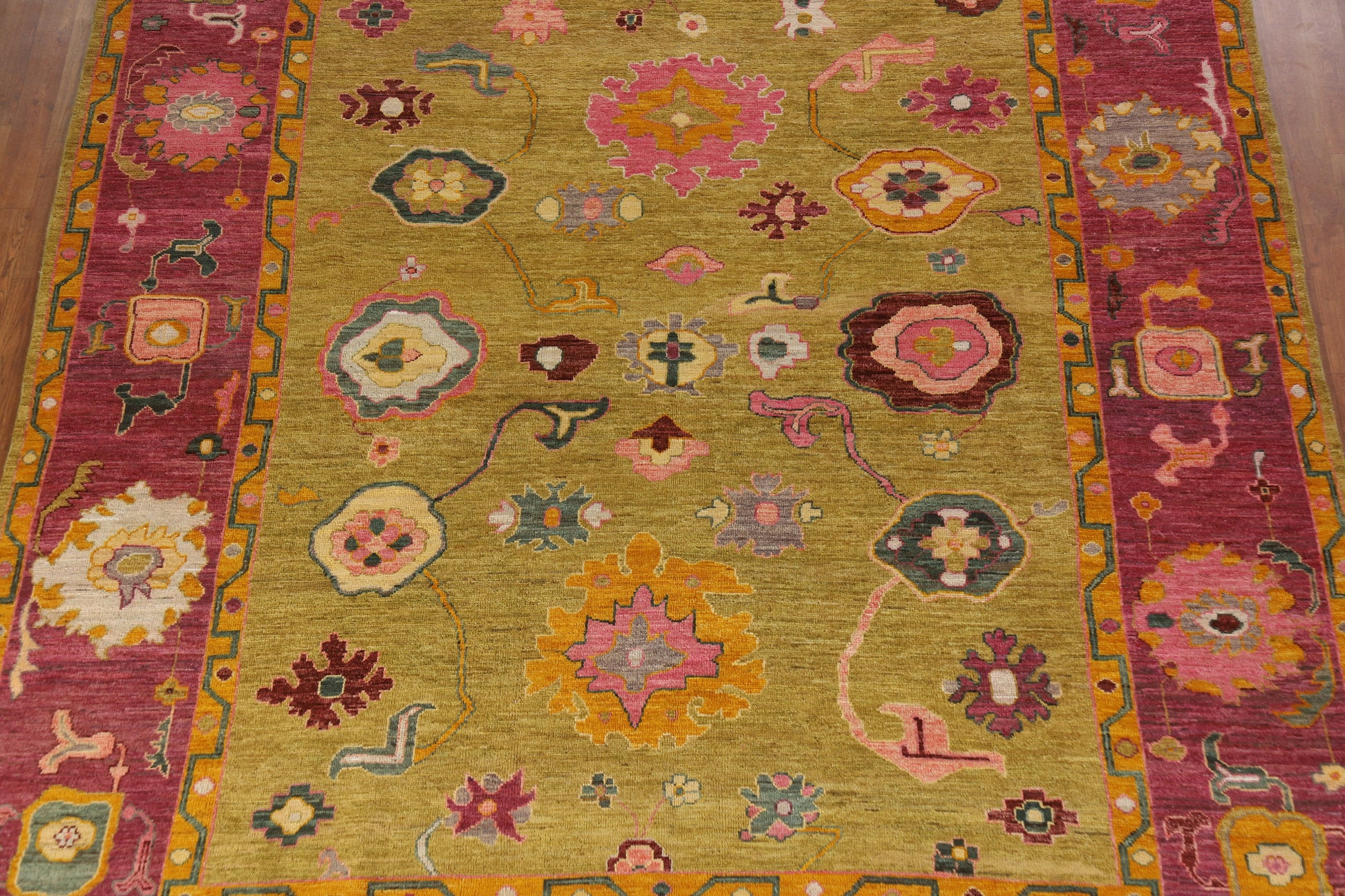 Vegetable Dye Floral Oushak Turkish Area Rug 9x12