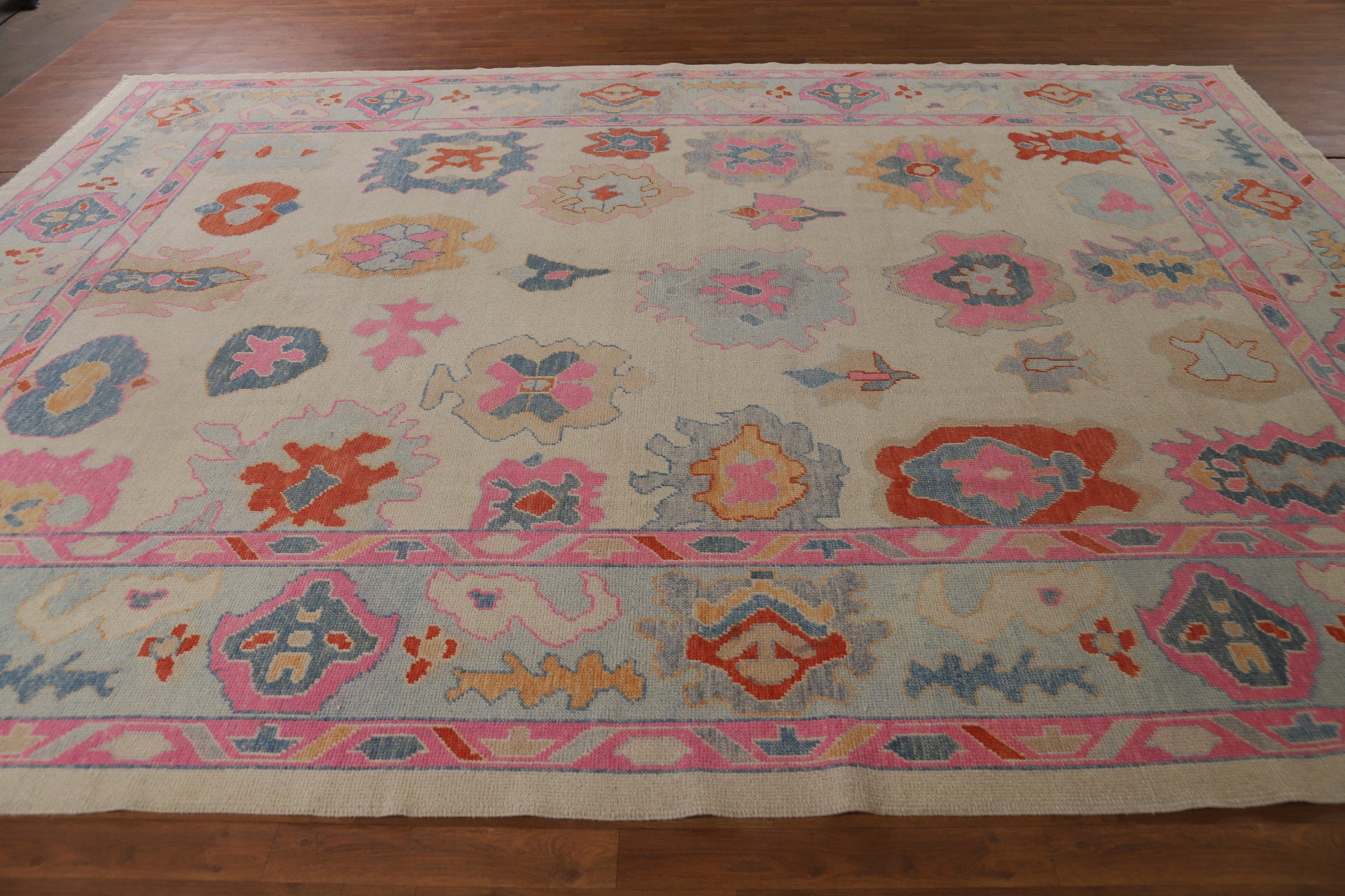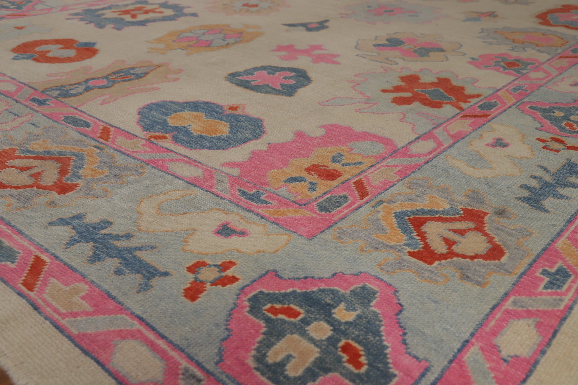 Vegetable Dye Floral Oushak Turkish Area Rug 9x12