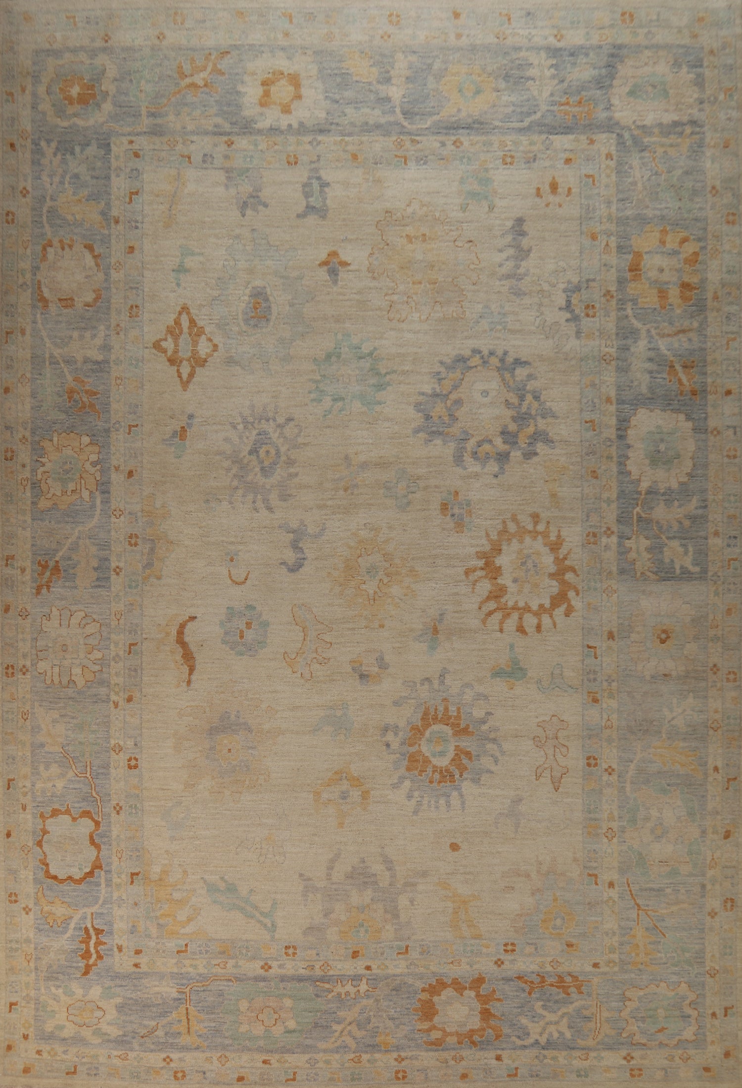 Vegetable Dye Floral Oushak Turkish Large Rug 10x14