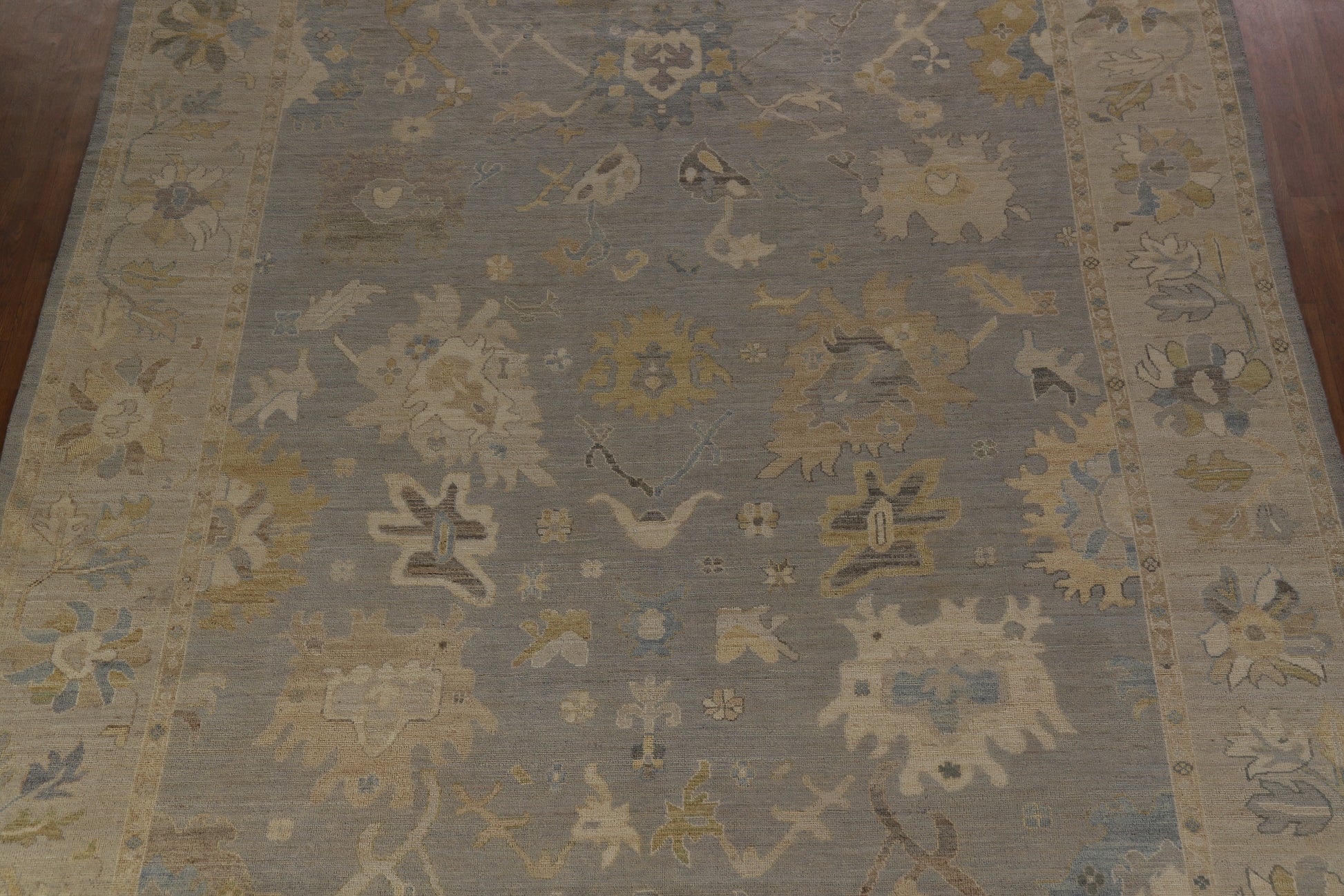 A Beautiful Genuine Turkey Oushak rug is Hand Knotted by skillful weavers in Turkey with 100% Wool Material. This rug is in New, First Quality condition. dimensions are 14' 0'' X 10' 0'' in foot and 427 X 305 in centimeter. the primary color is Greys & Charcoal.