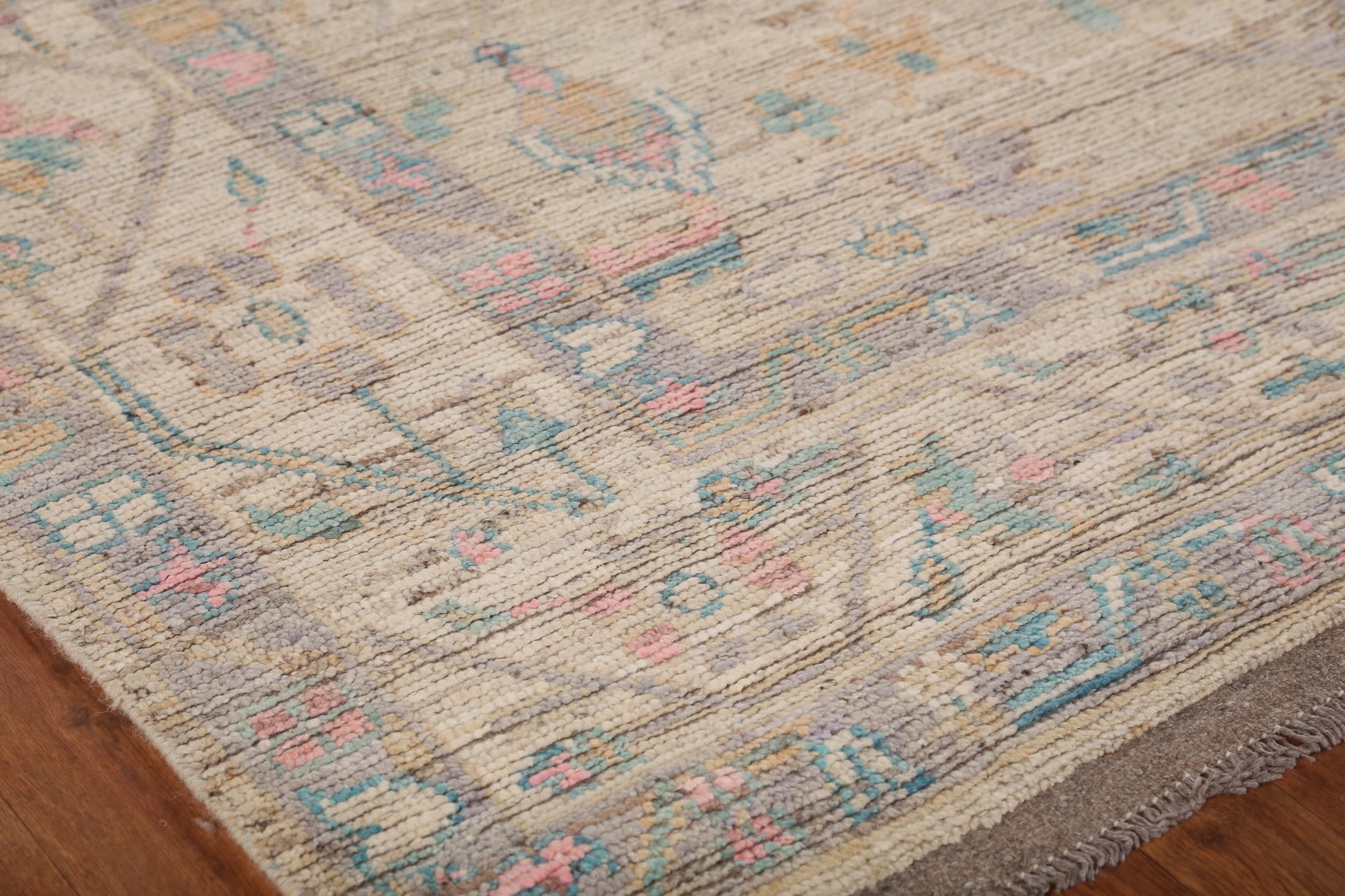 A Beautiful Genuine Turkey Oushak rug is Hand Knotted by skillful weavers in Turkey with 100% Wool Material. This rug is in New, First Quality condition. dimensions are 16' 8'' X 6' 8'' in foot and 508 X 203 in centimeter. the primary color is Beige & Ivories.