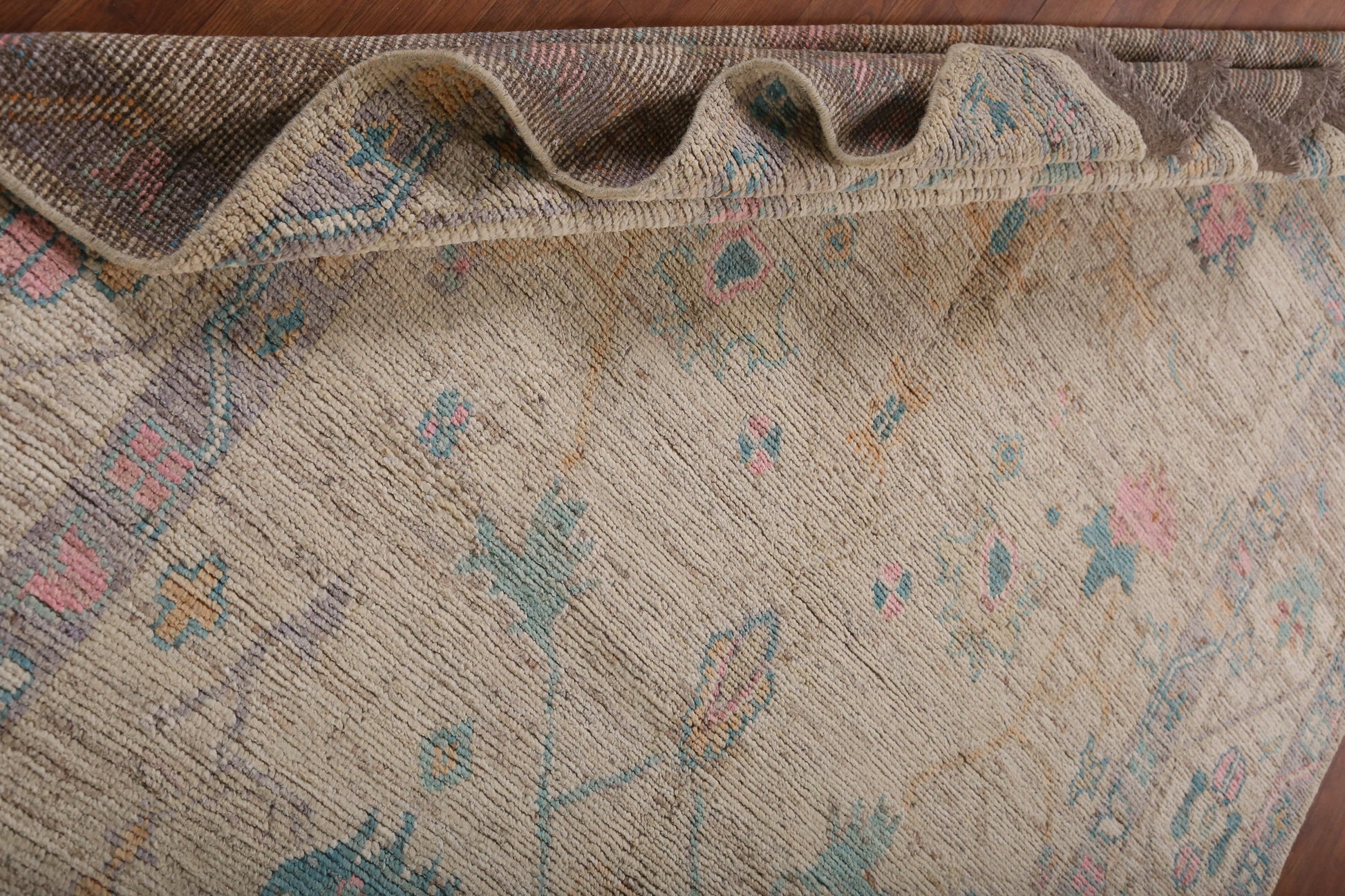 Vegetable Dye Floral Oushak Turkish Large Rug 7x17