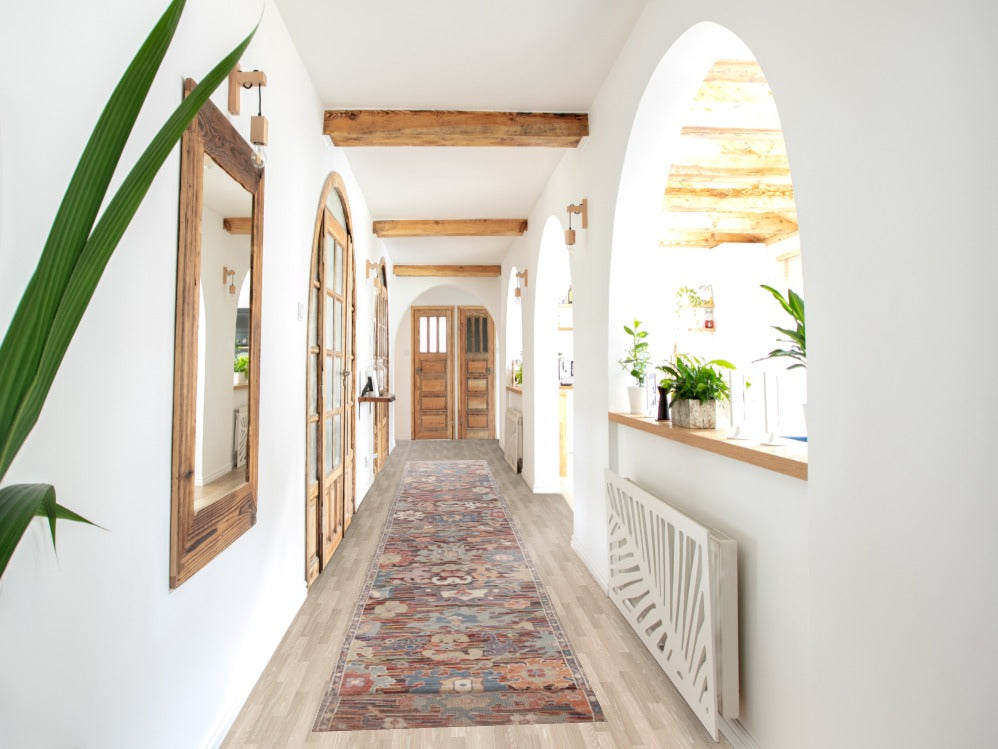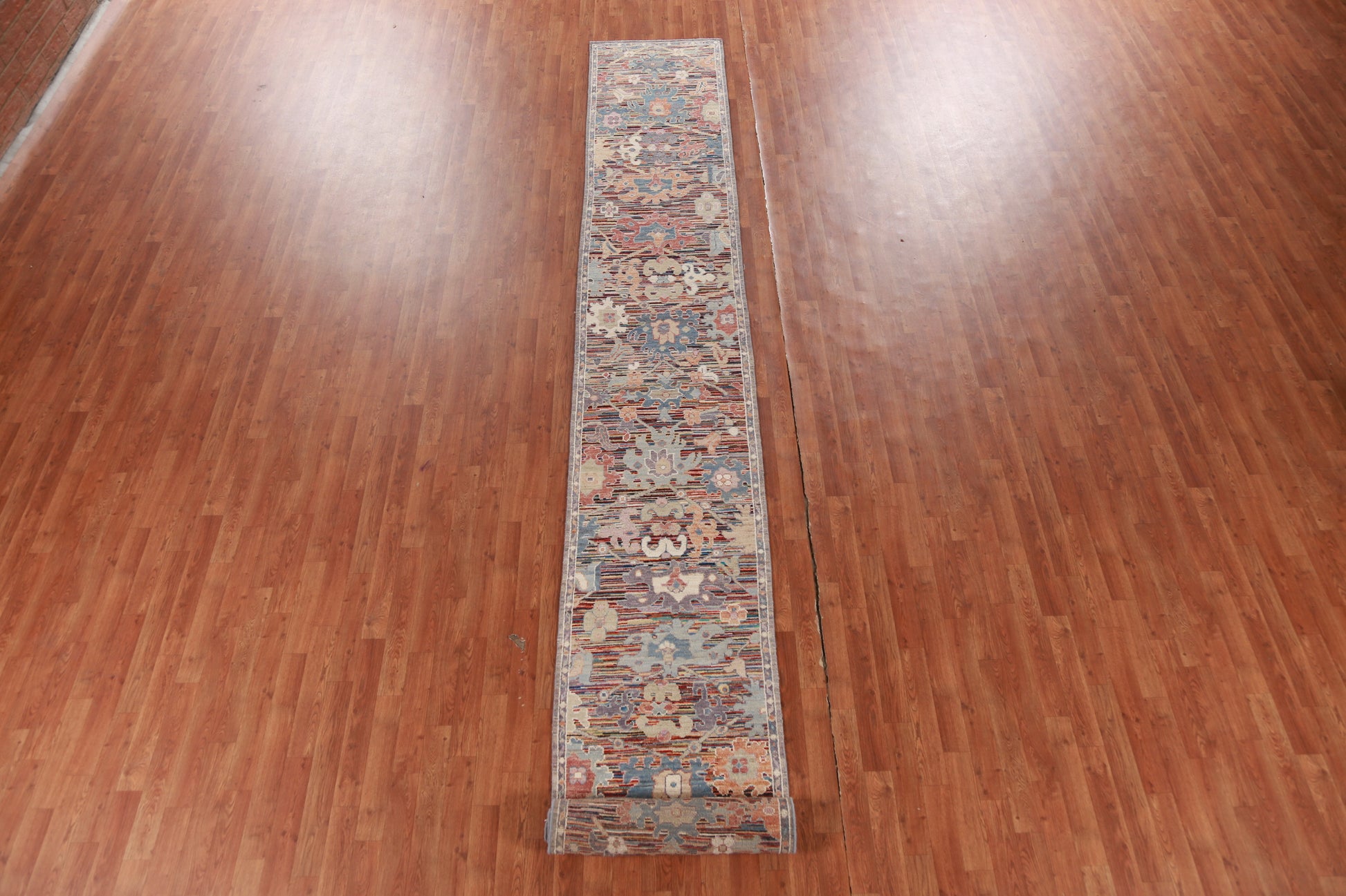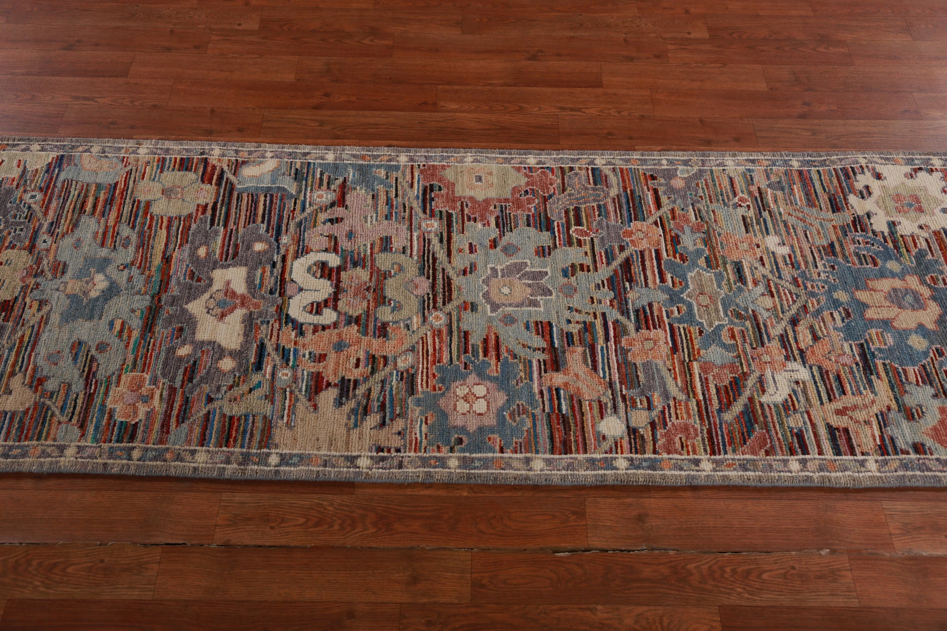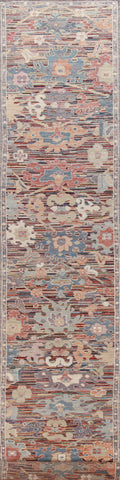 Vegetable Dye Floral Oushak Turkish Runner Rug 2x19