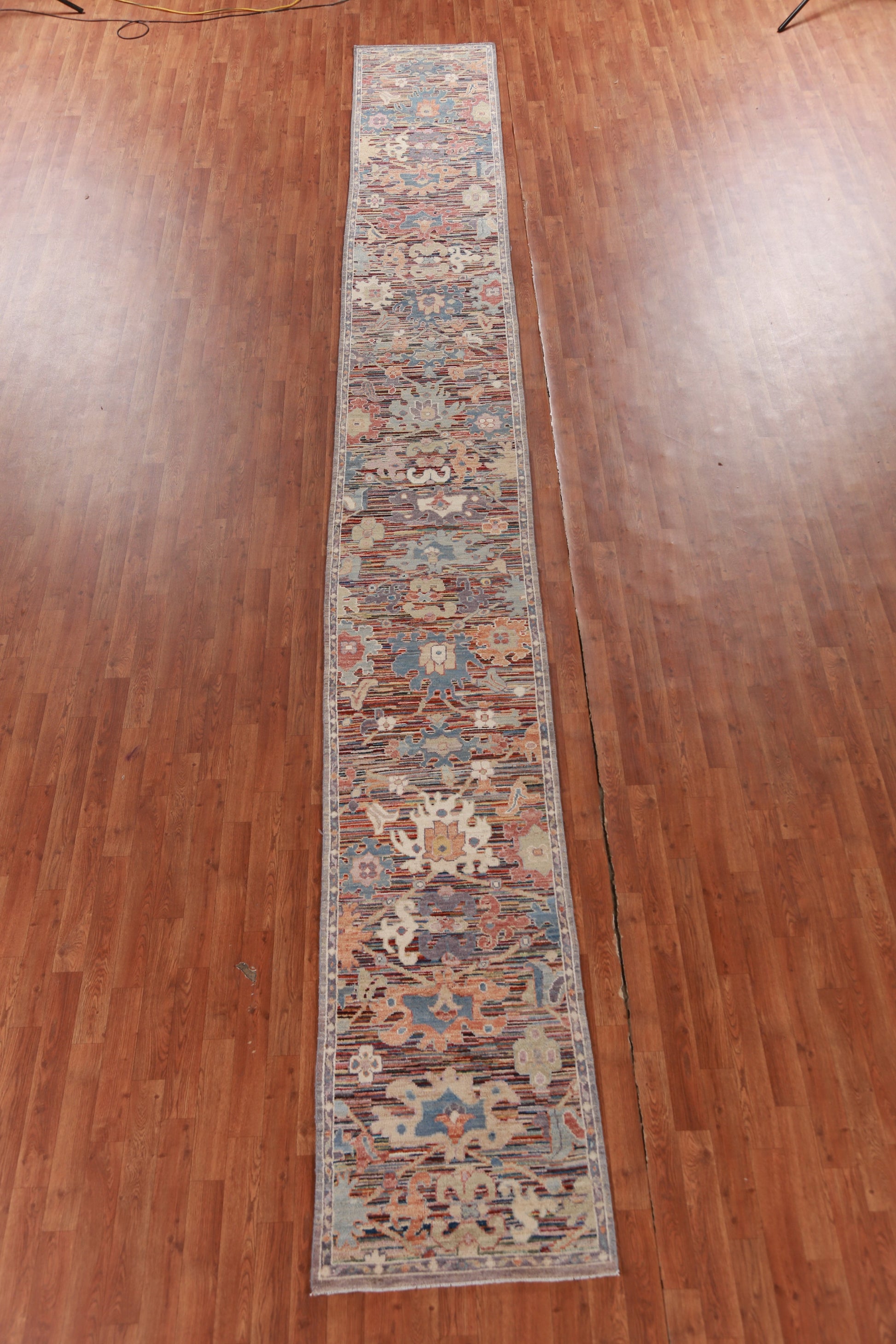 A Beautiful Genuine Turkey Oushak rug is Hand Knotted by skillful weavers in Turkey with 100% Wool Material. This rug is in New, First Quality condition. dimensions are 19' 5'' X 2' 4'' in foot and 592 X 71 in centimeter. the primary color is Multi-Colored.
