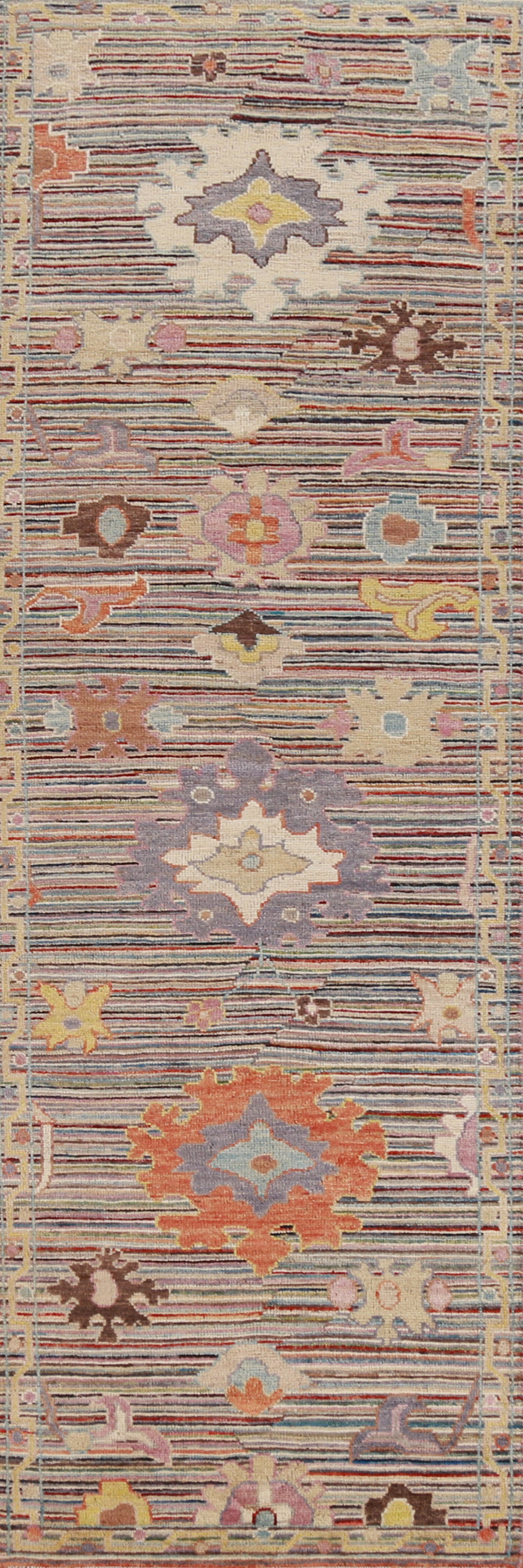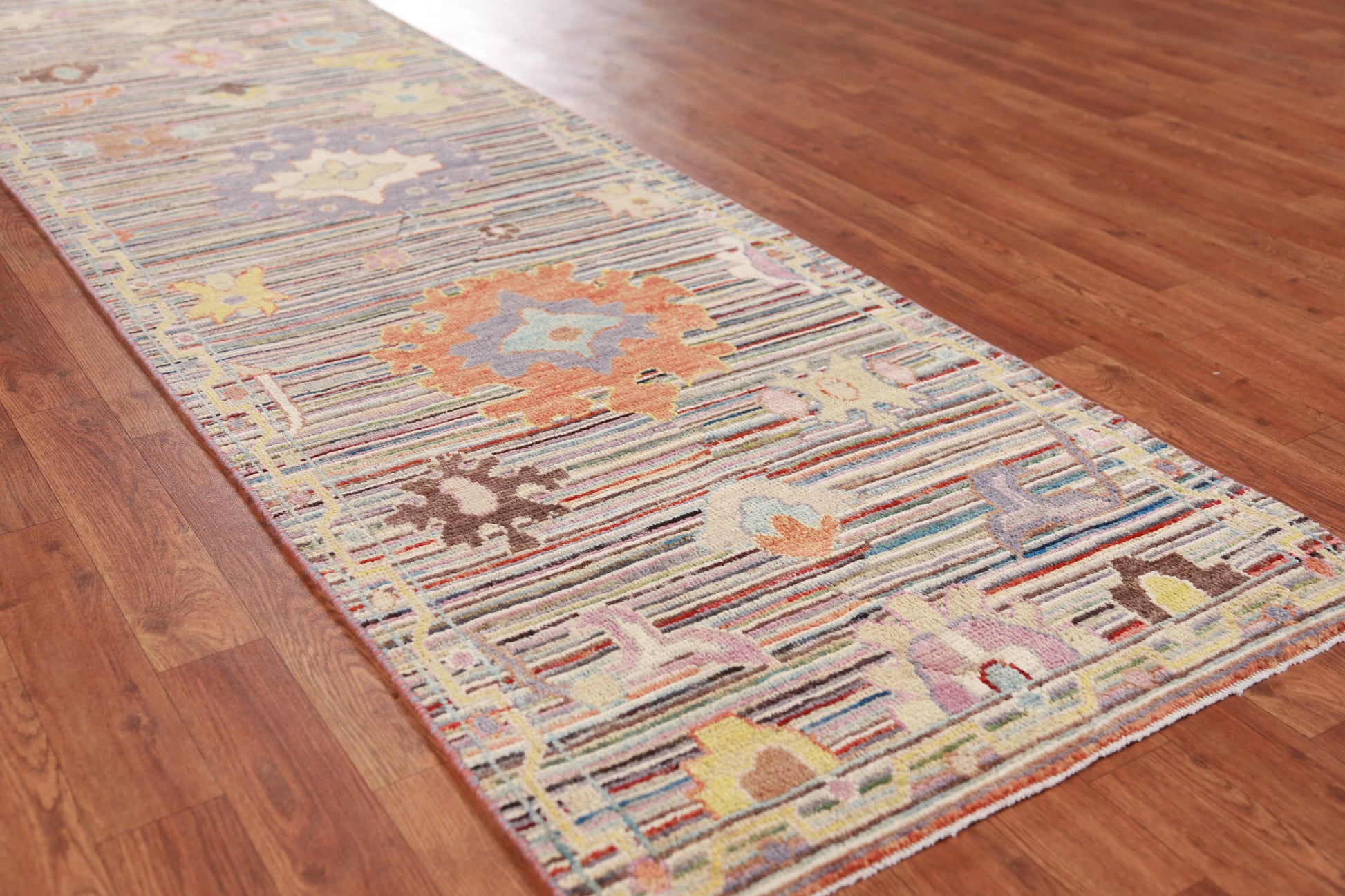 Vegetable Dye Floral Oushak Turkish Runner Rug 3x10
