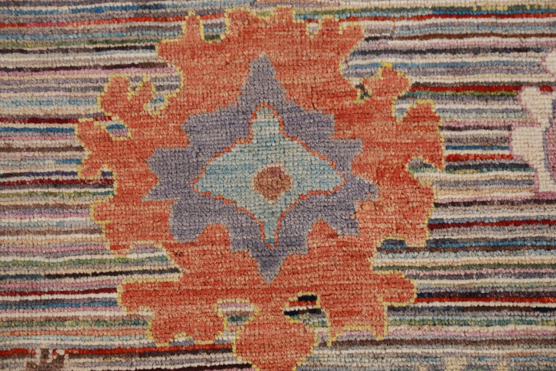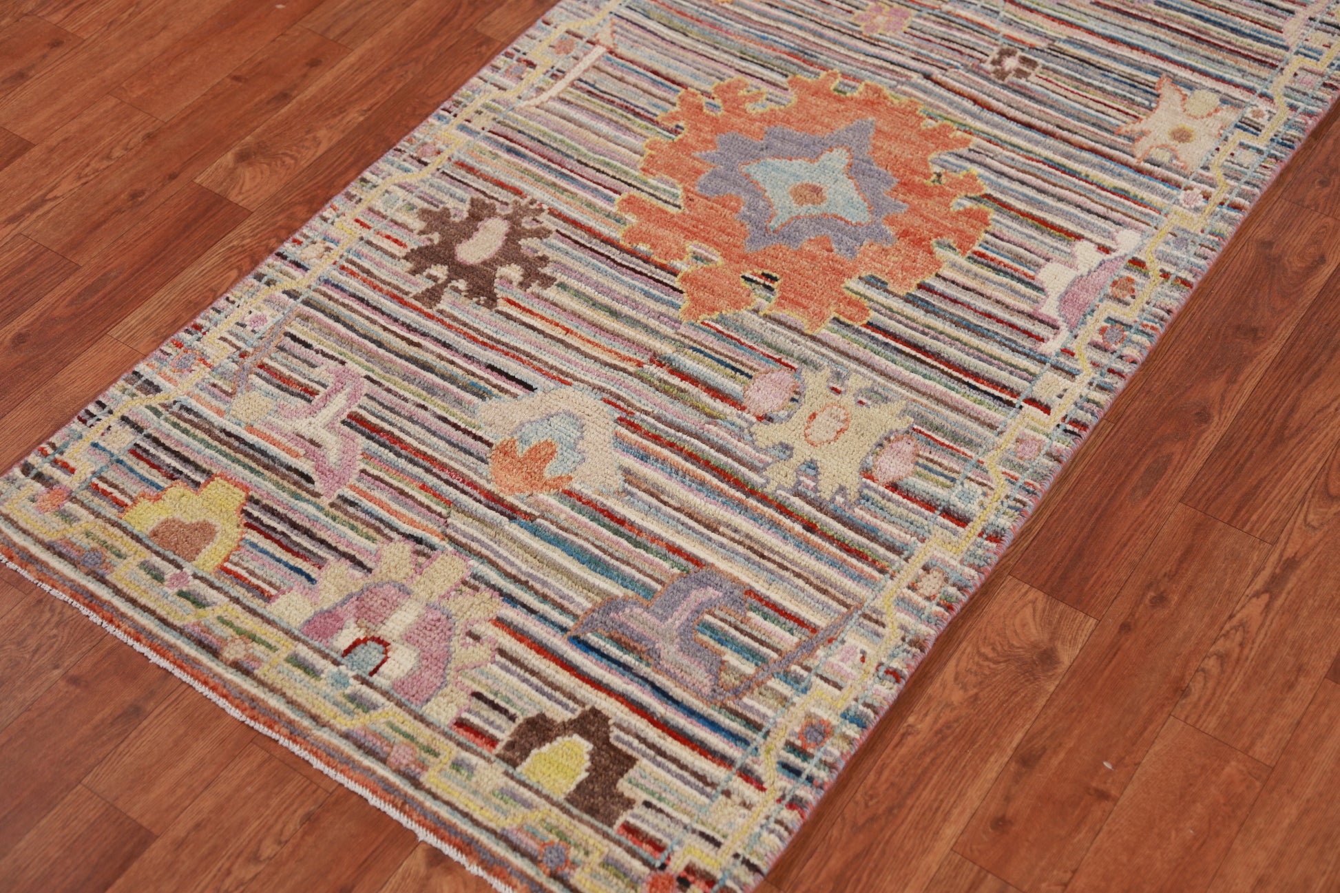 A Beautiful Genuine Turkey Oushak rug is Hand Knotted by skillful weavers in Turkey with 100% Wool Material. This rug is in New, First Quality condition. dimensions are 9' 9'' X 2' 7'' in foot and 297 X 79 in centimeter. the primary color is Multi-Colored.