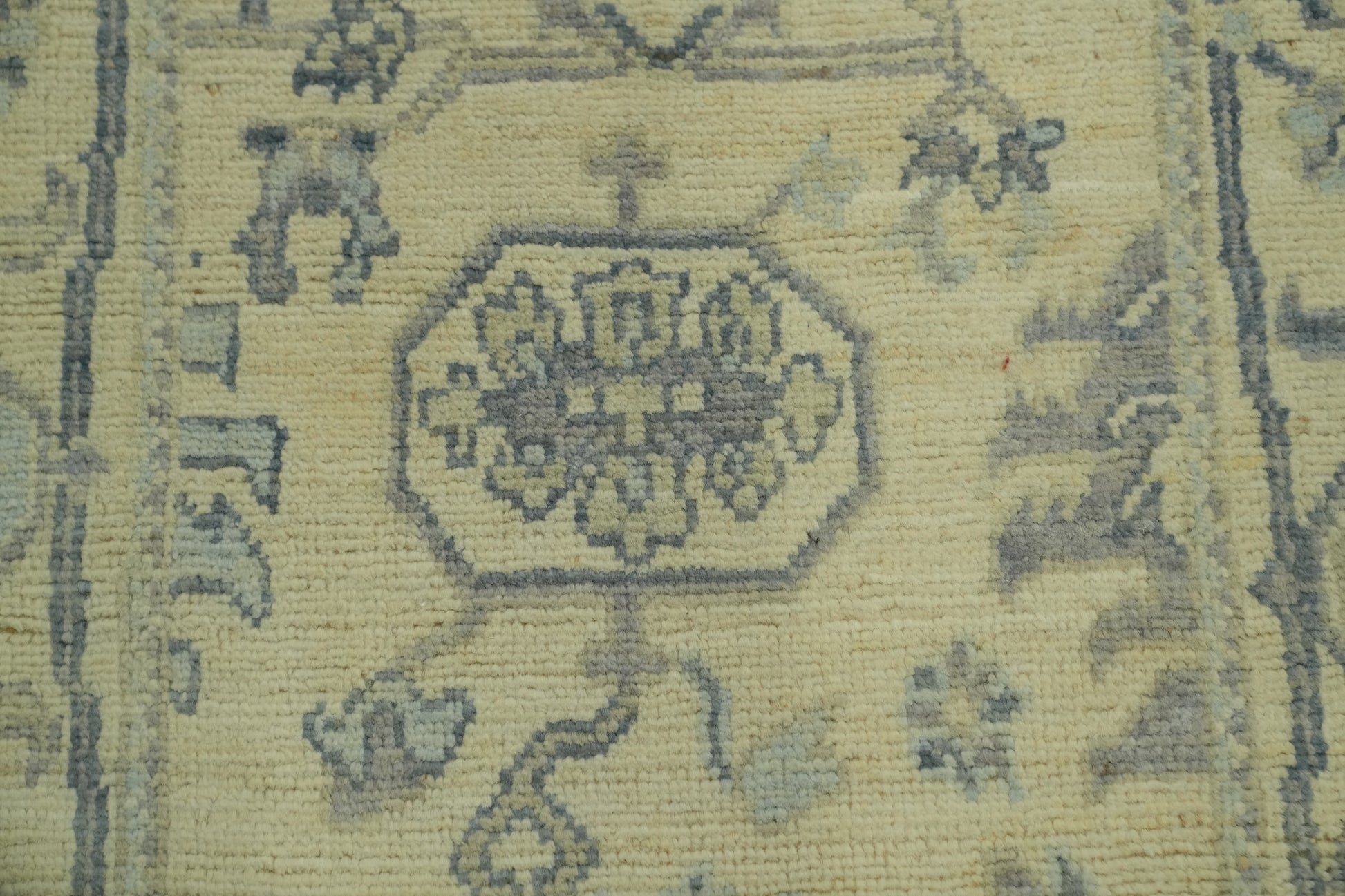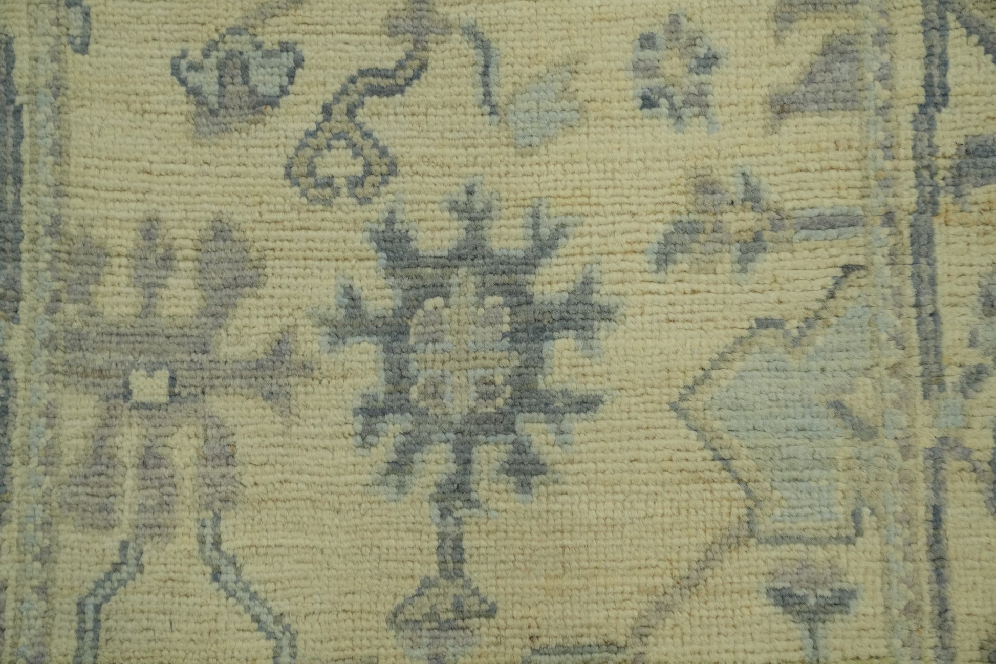 A Beautiful Genuine Turkey Oushak rug is Hand Knotted by skillful weavers in Turkey with 100% Wool Material. This rug is in New, First Quality condition. dimensions are 12' 4'' X 2' 8'' in foot and 376 X 81 in centimeter. the primary color is Beige & Ivories.