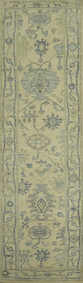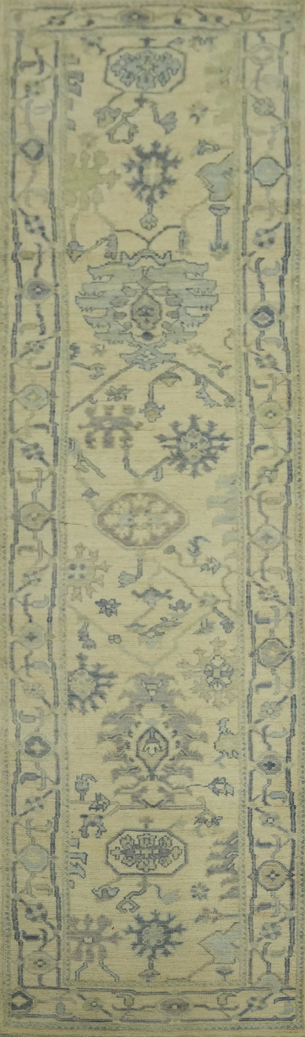 Vegetable Dye Floral Oushak Turkish Runner Rug 3x12