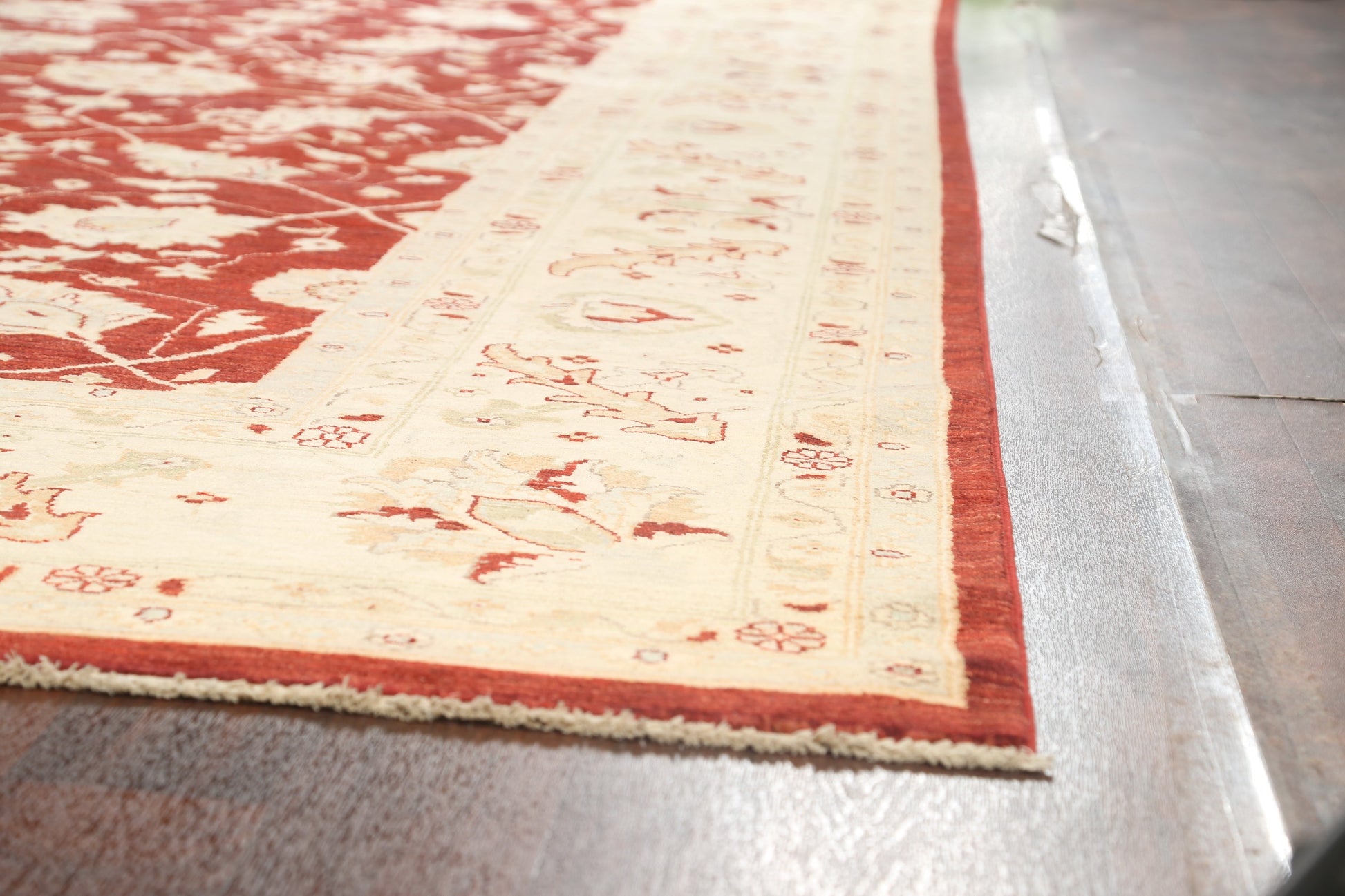 A Beautiful Genuine Pakistan Peshawar-Chobi rug is Hand Knotted by skillful weavers in Pakistan with 100% Wool Material. This rug is in New, First Quality condition. dimensions are 13' 6'' X 9' 11'' in foot and 411 X 302 in centimeter. the primary color is Red.