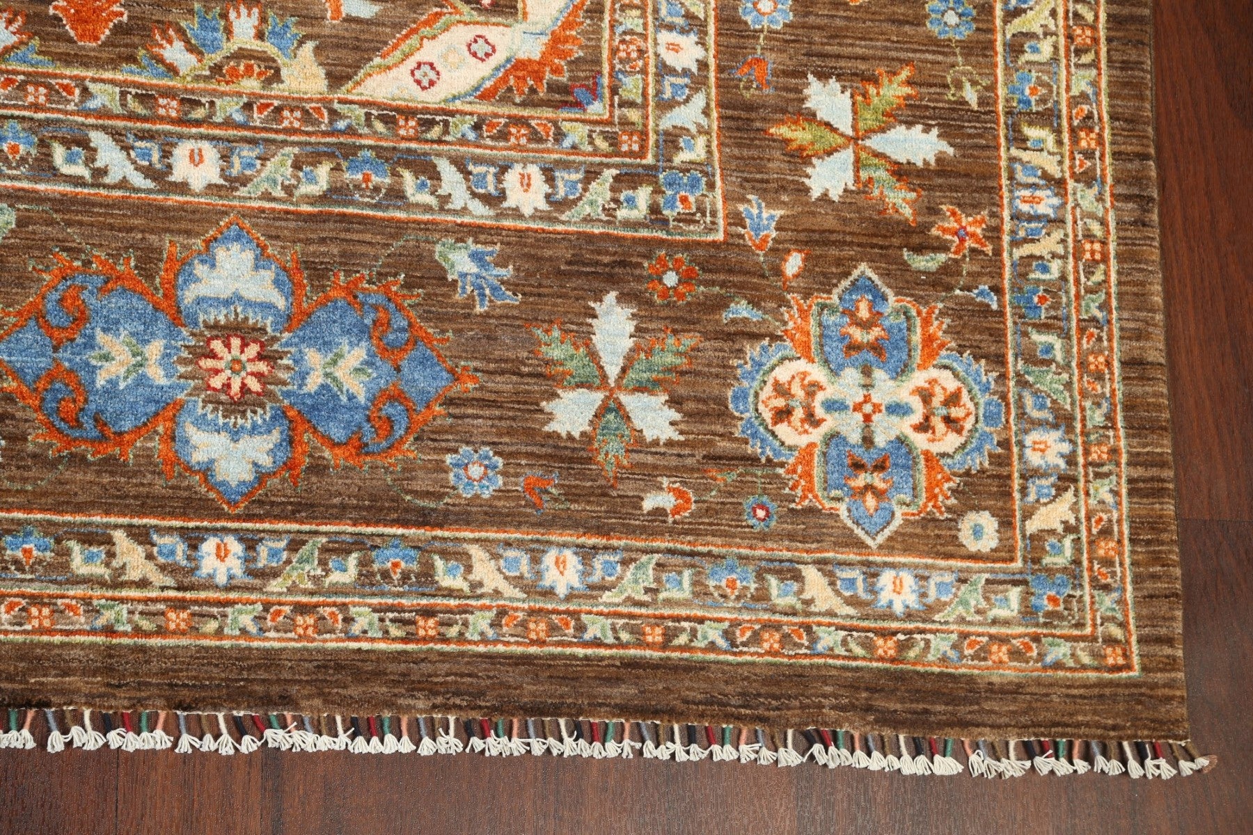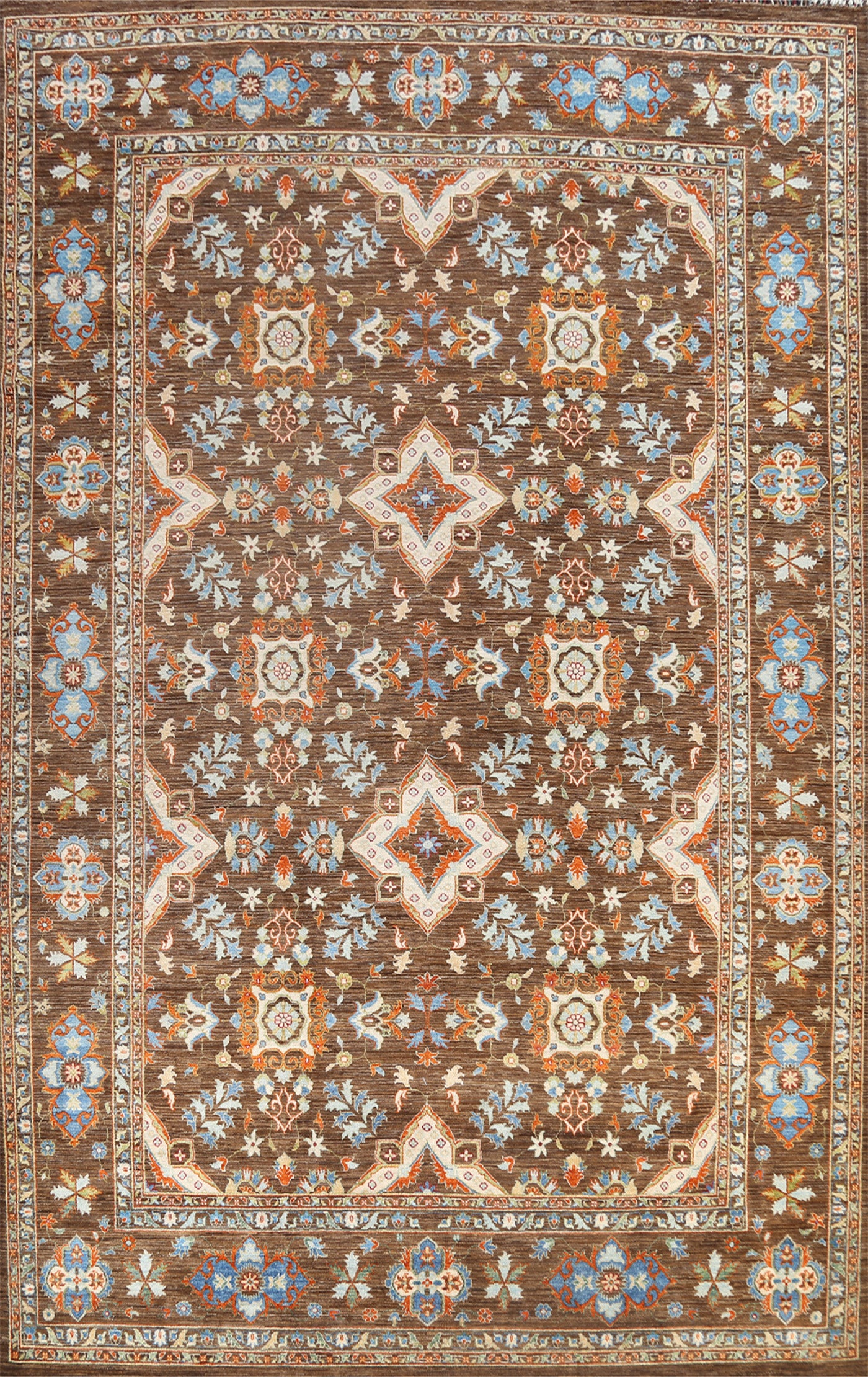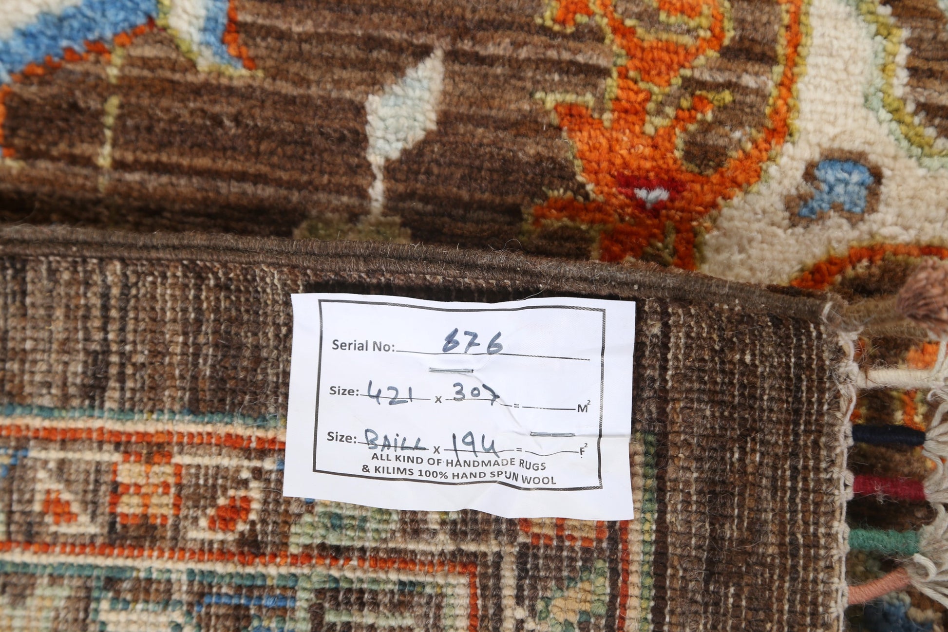 A Beautiful Genuine Pakistan Peshawar-Chobi rug is Hand Knotted by skillful weavers in Pakistan with 100% Wool Material. This rug is in New, First Quality condition. dimensions are 13' 10'' X 10' 1'' in foot and 422 X 307 in centimeter. the primary color is Brown.