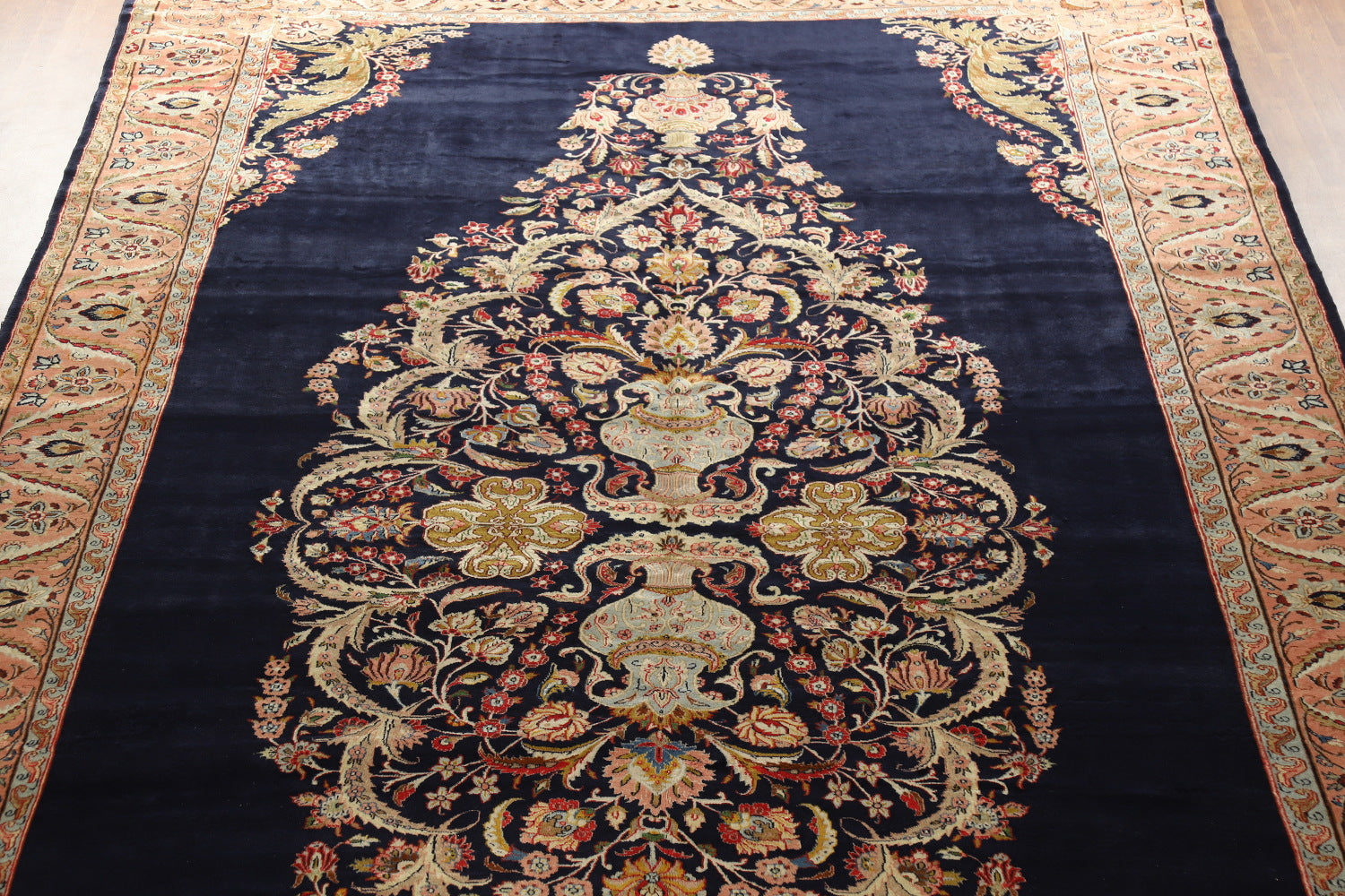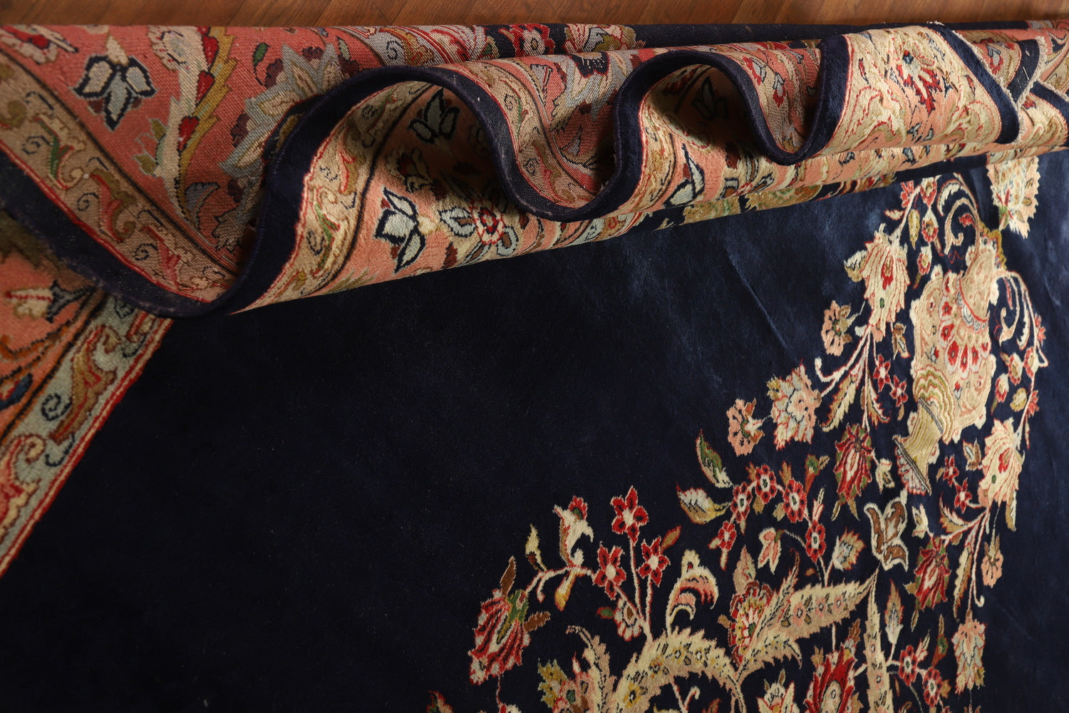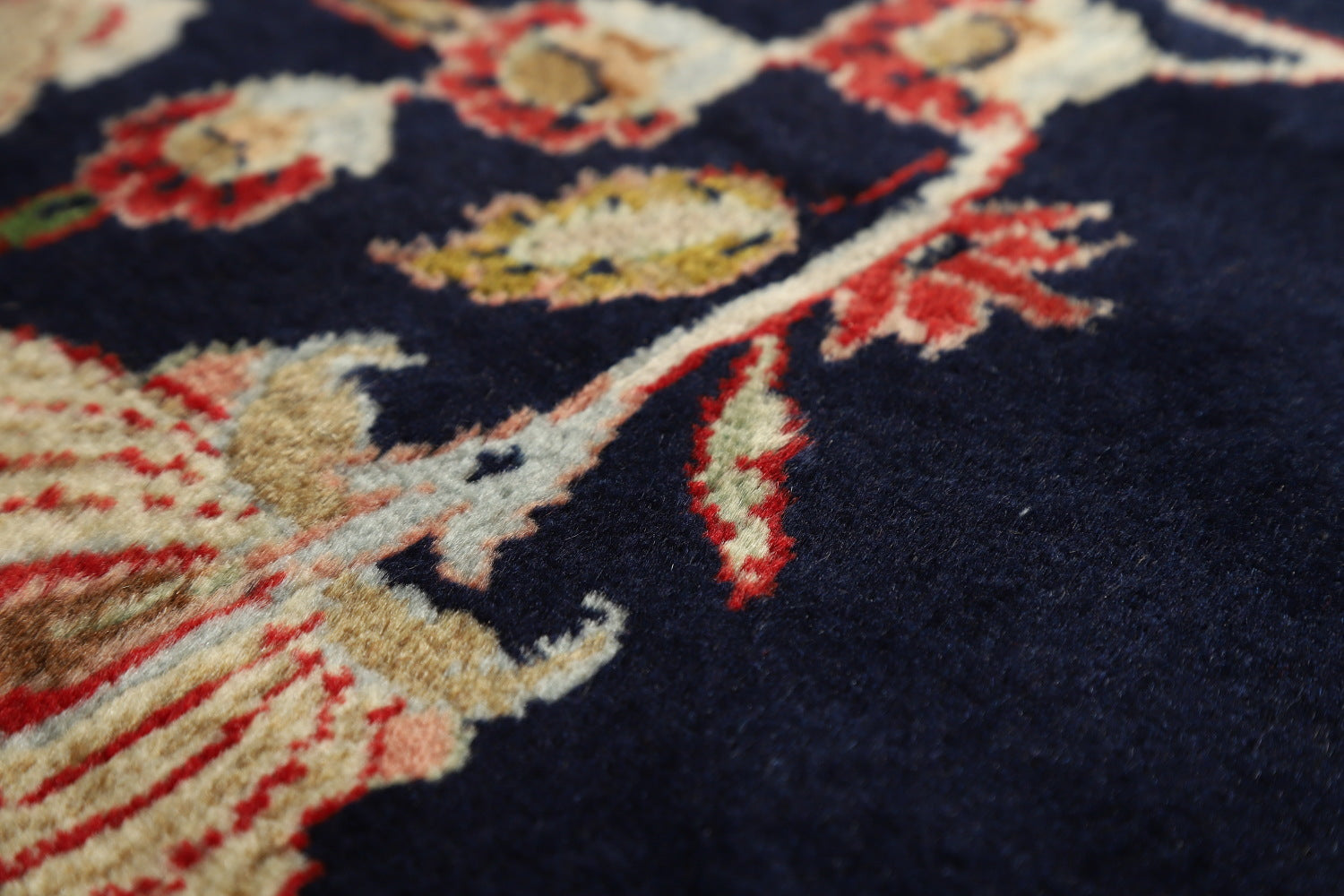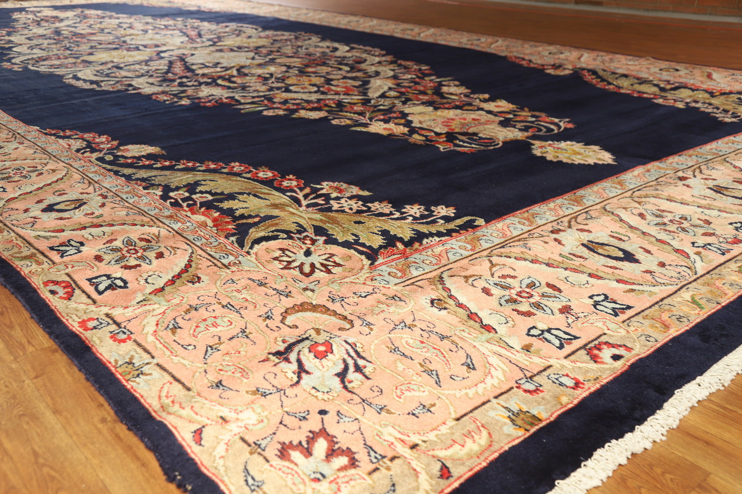 A Beautiful Genuine Persia ( Persia ) Sarouk rug is Hand Knotted by skillful weavers in Persia ( Persia ) with 100% Wool Material. This rug is in Excellent condition. dimensions are 25' 0'' X 12' 2'' in foot and 762 X 371 in centimeter. the primary color is Navy Blue & Blues.