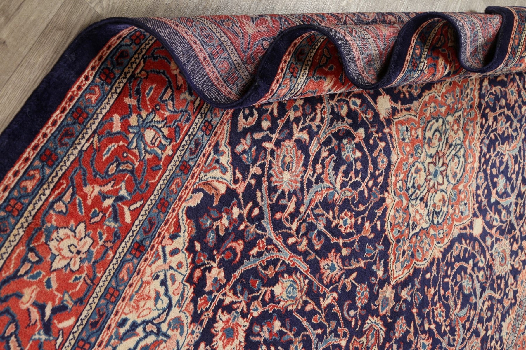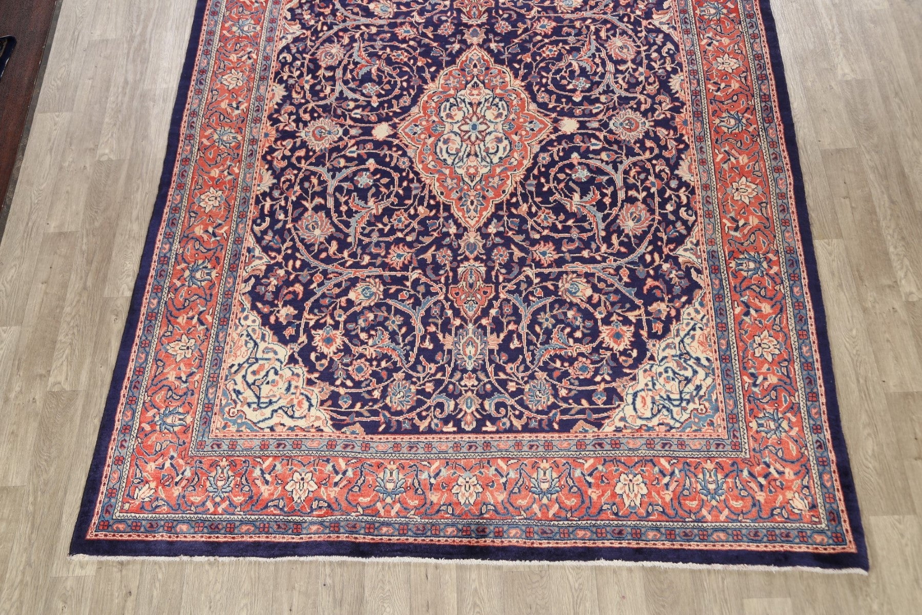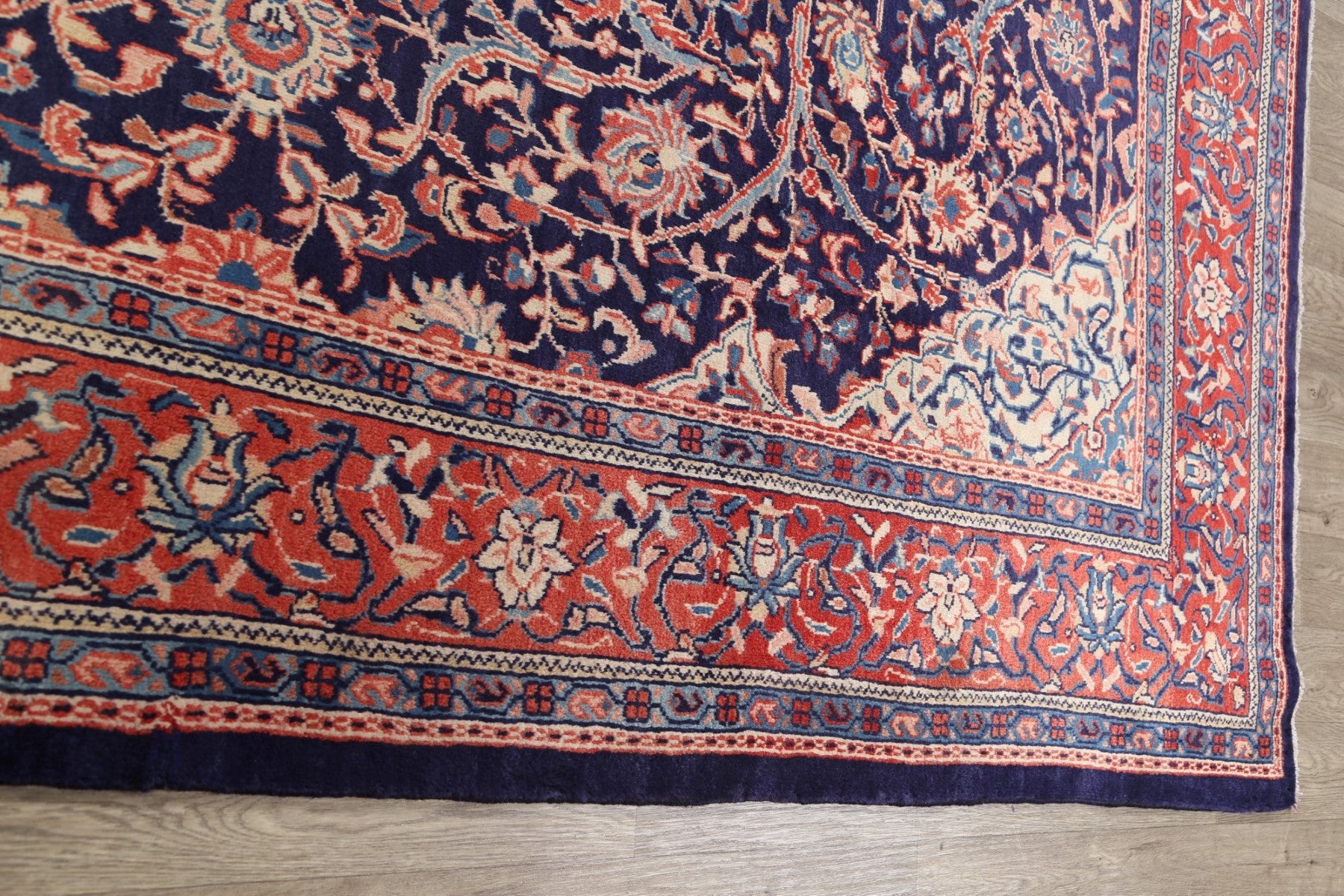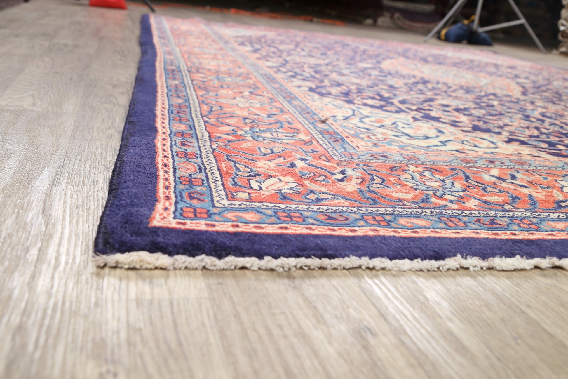 A Beautiful Genuine Persia ( Persia ) Sarouk rug is Hand Knotted by skillful weavers in Persia ( Persia ) with 100% Wool Material. This rug is in Very Good condition. dimensions are 10' 11'' X 8' 2'' in foot and 333 X 249 in centimeter. the primary color is Navy Blue & Blues.