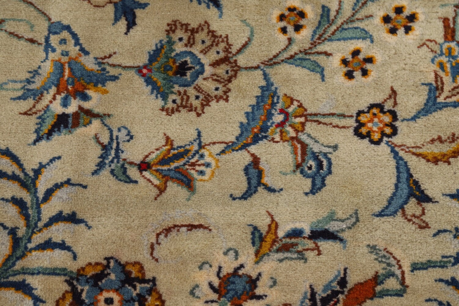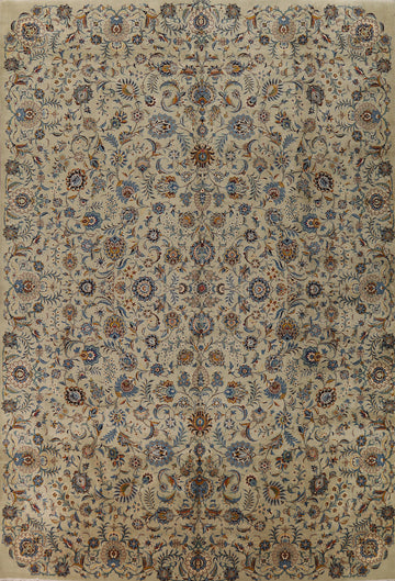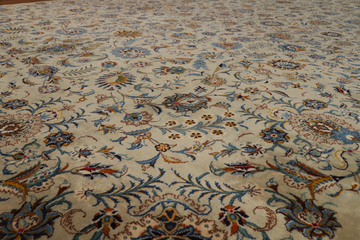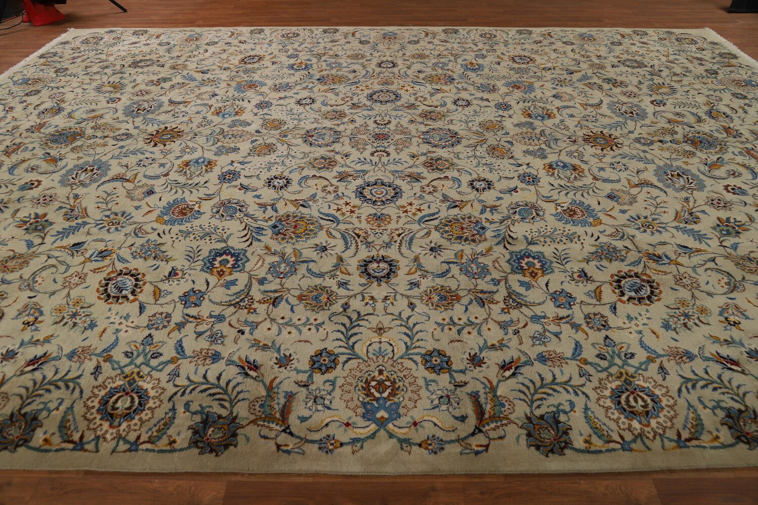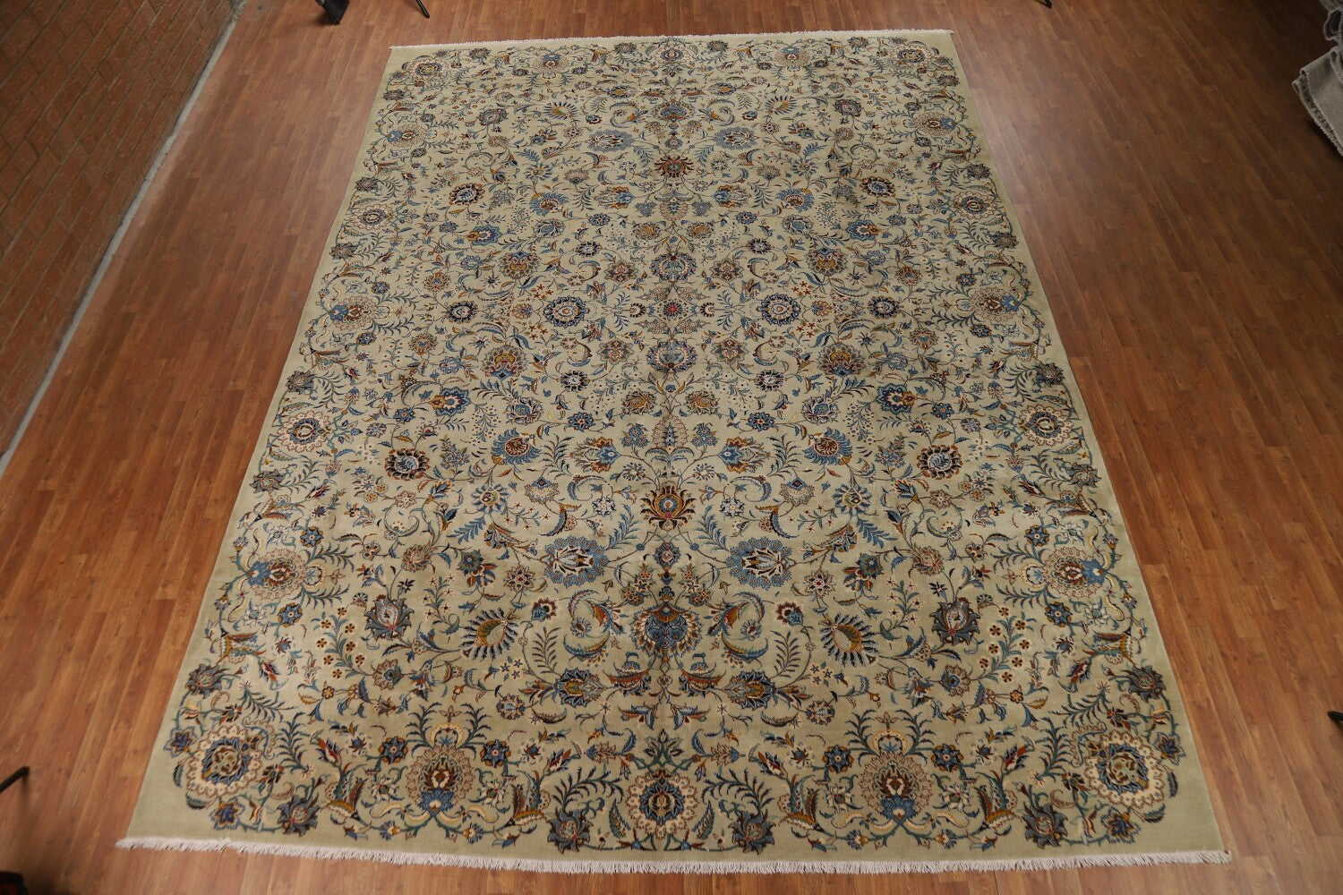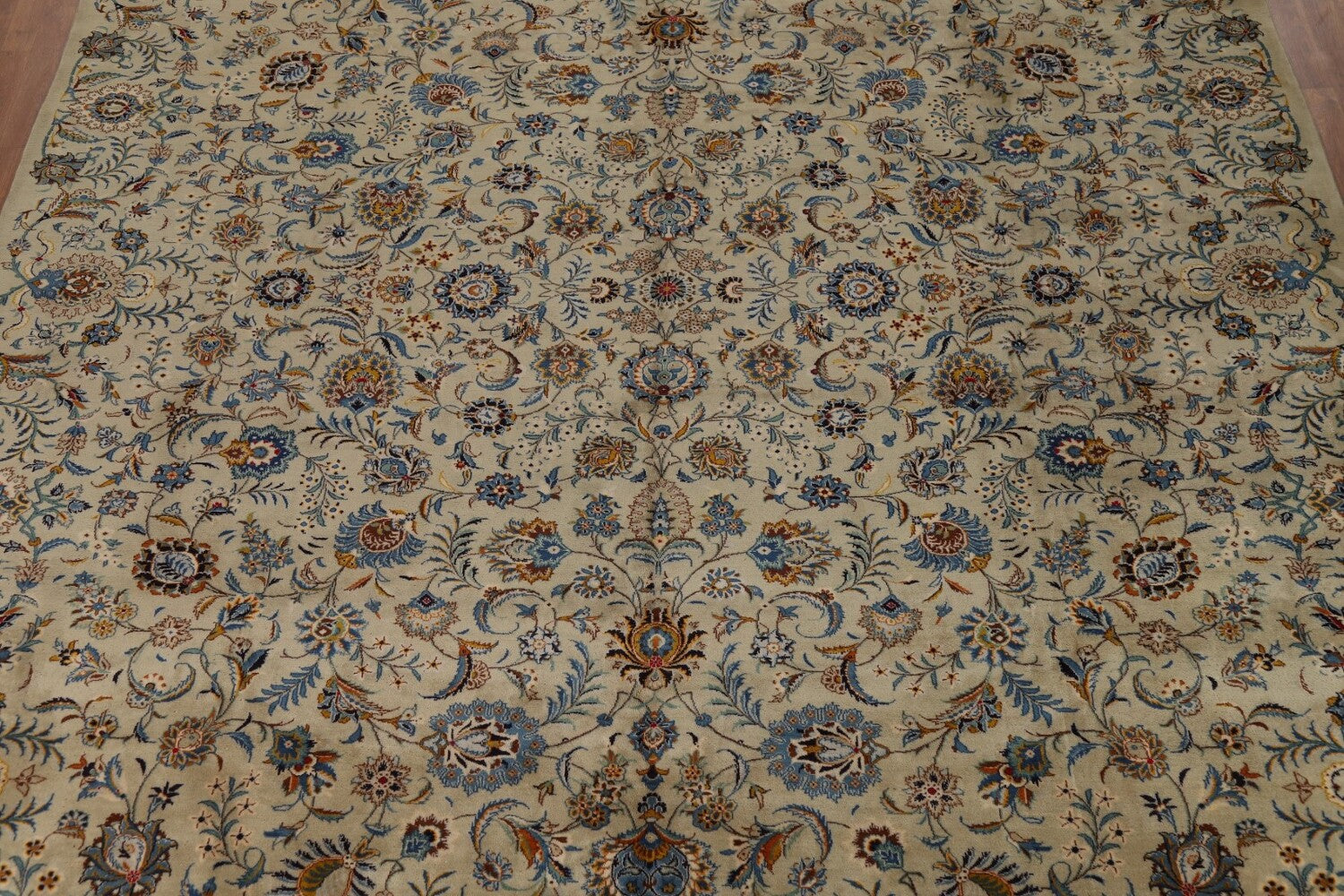 A Beautiful Genuine Persia ( Persia ) Kashan rug is Hand Knotted by skillful weavers in Persia ( Persia ) with 100% Wool Material. This rug is in Excellent condition. dimensions are 14' 11'' X 11' 0'' in foot and 455 X 335 in centimeter. the primary color is Beige & Ivories.