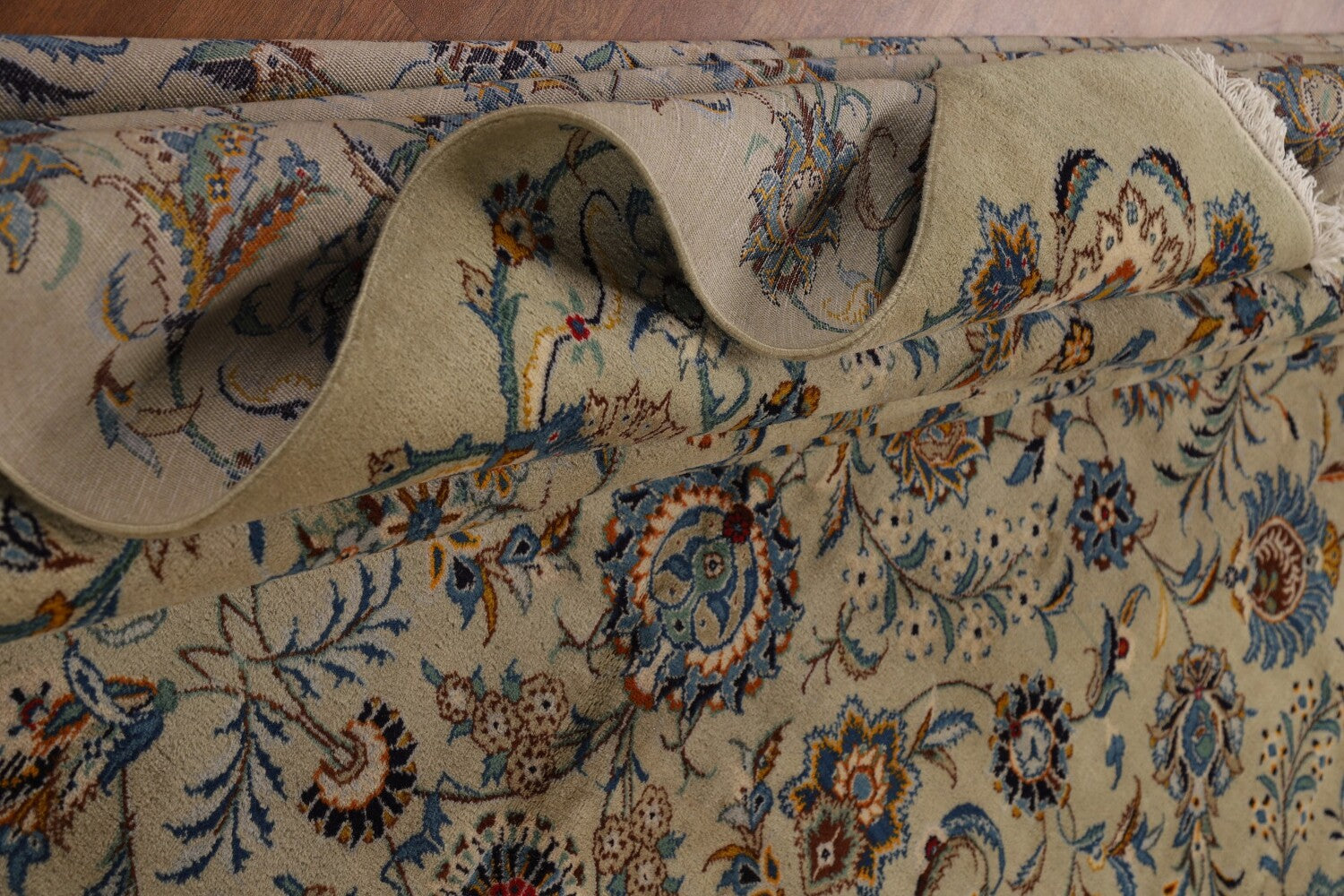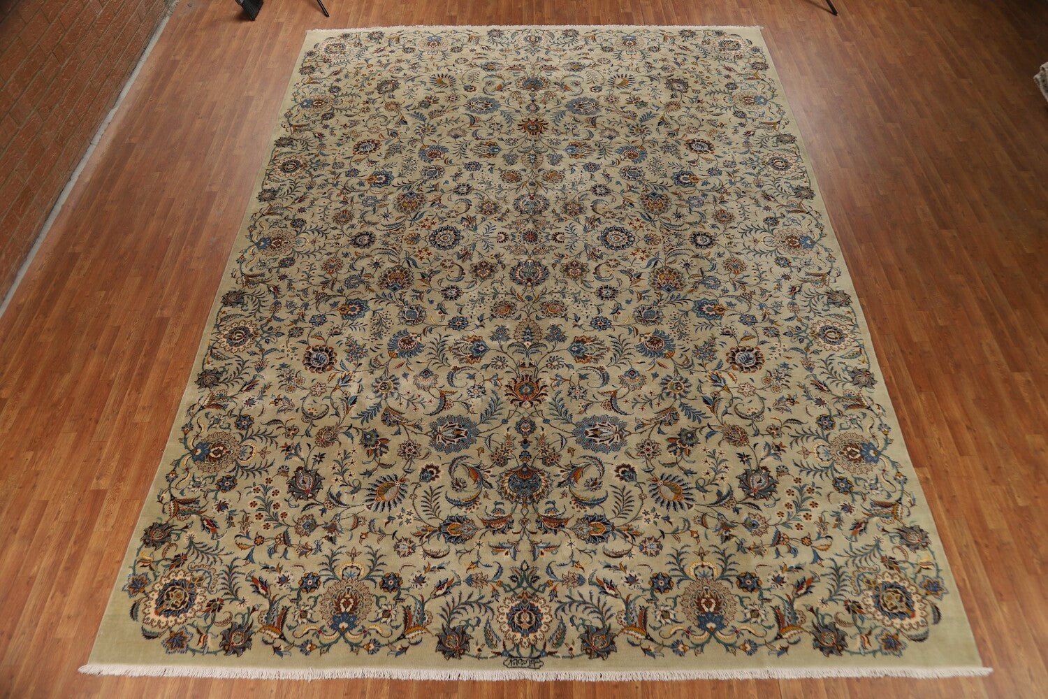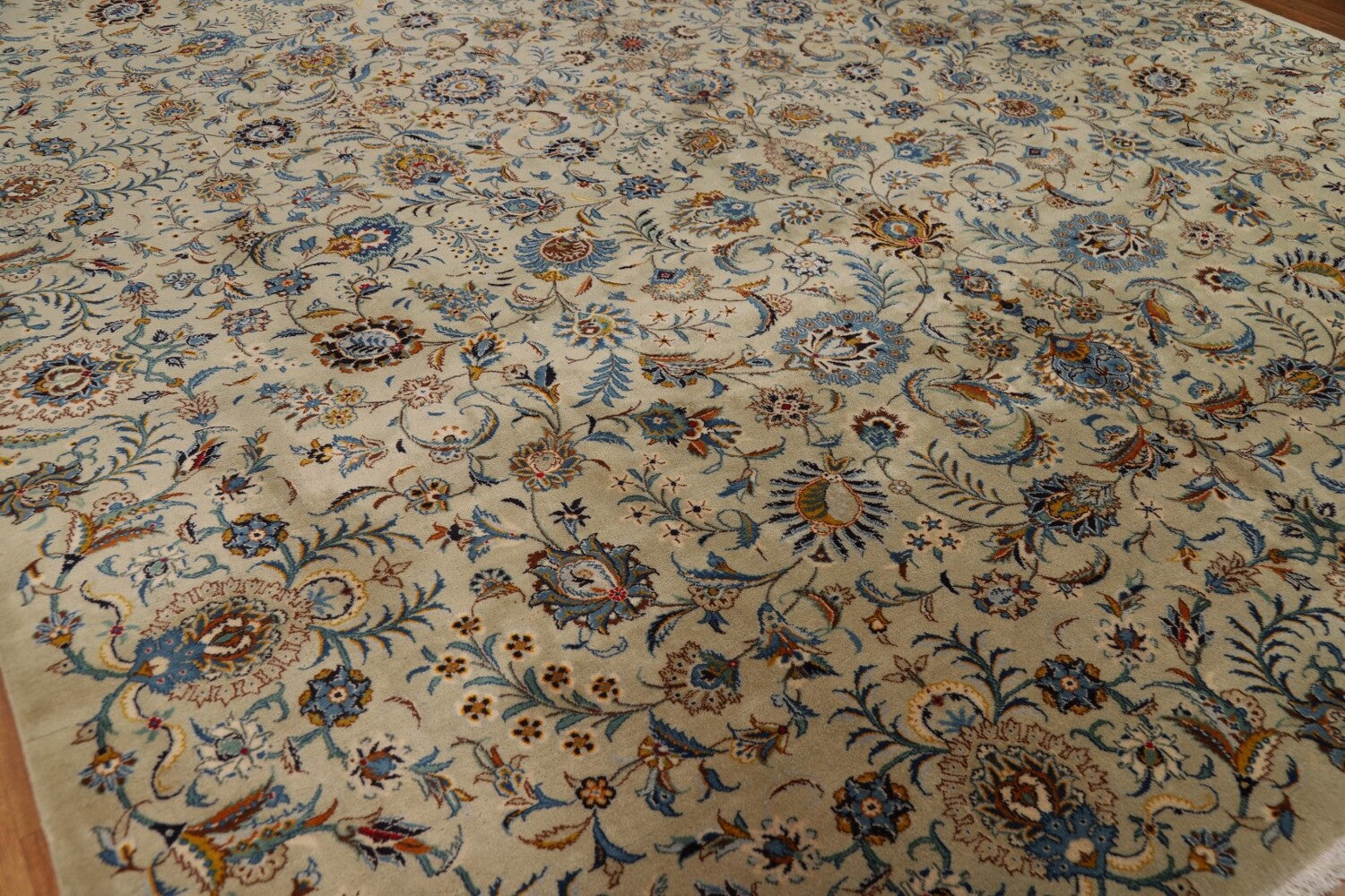 Vegetable Dye Floral Signed Kashan Persian Large Rug 11x15