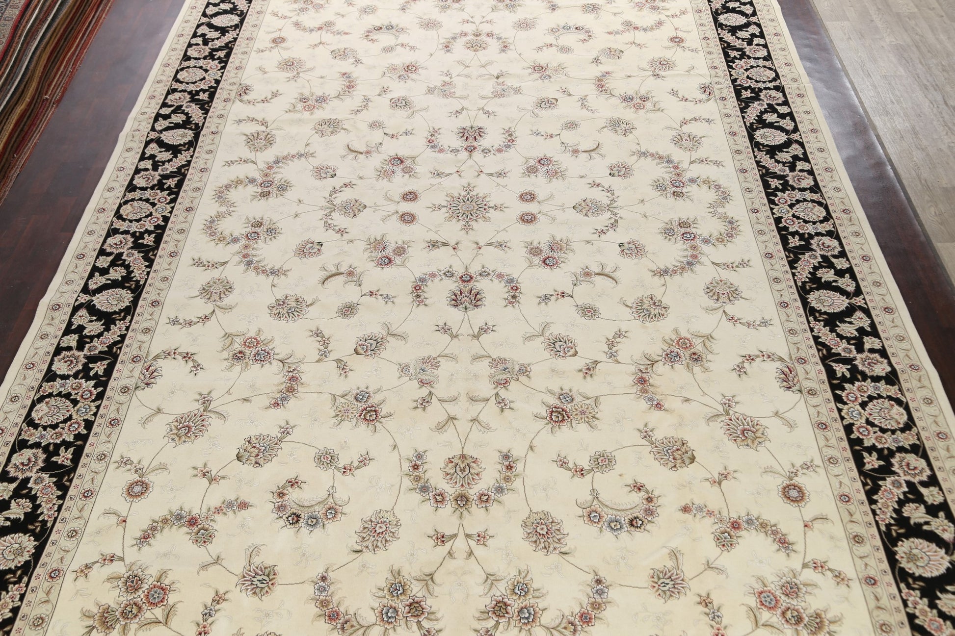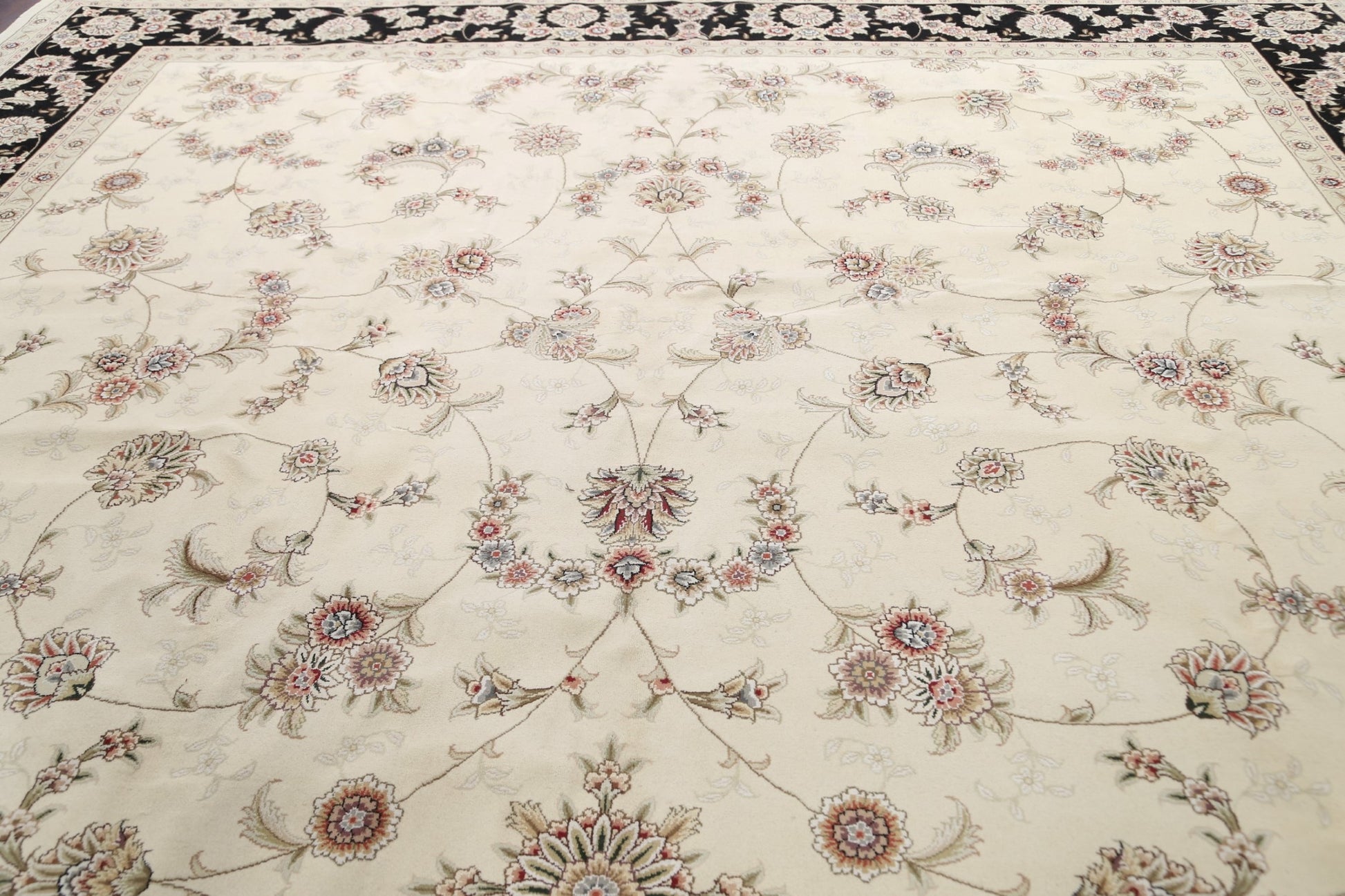 A Beautiful Genuine China Tabriz rug is Hand Knotted by skillful weavers in China with Wool & Silk Material. This rug is in New, First Quality condition. dimensions are 18' 0'' X 12' 1'' in foot and 549 X 368 in centimeter. the primary color is Beige & Ivories.
