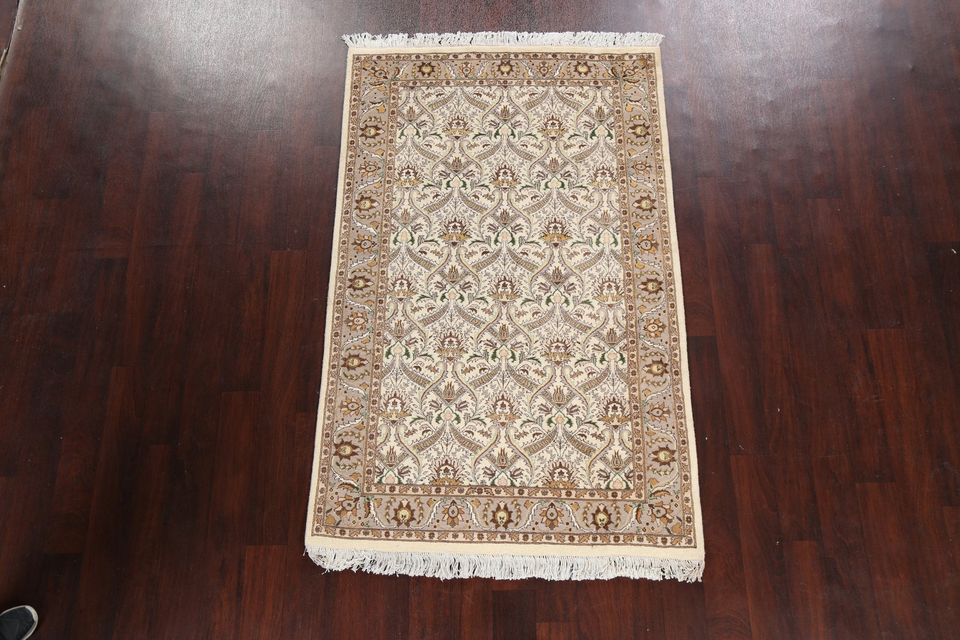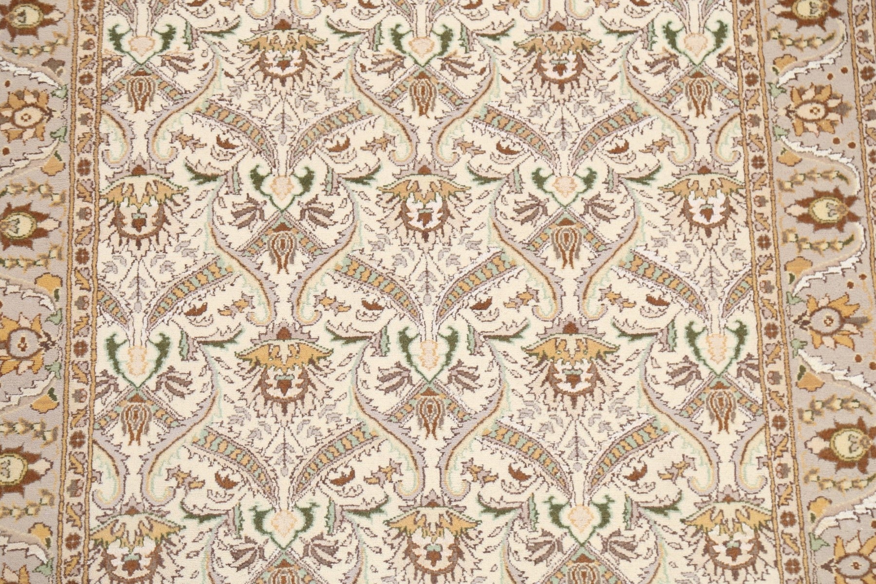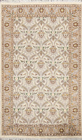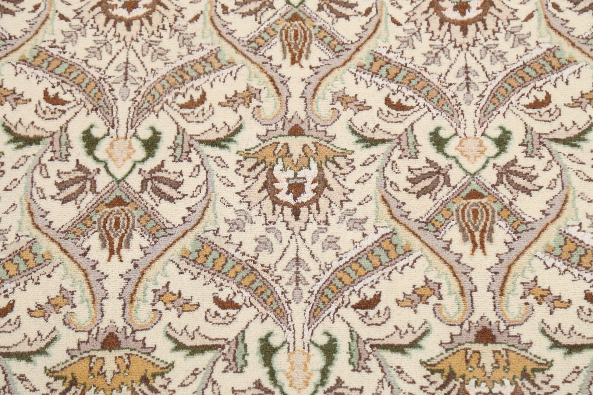 A Beautiful Genuine Pakistan Tabriz rug is Hand Knotted by skillful weavers in Pakistan with Wool & Silk Material. This rug is in New, First Quality condition. dimensions are 6' 2'' X 3' 11'' in foot and 188 X 119 in centimeter. the primary color is Beige & Ivories.