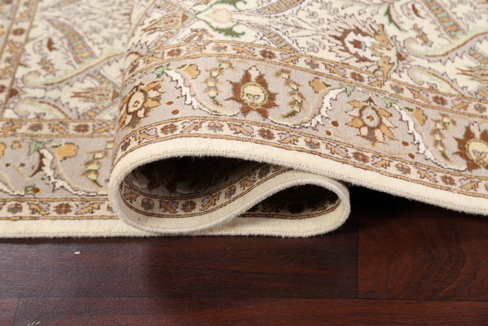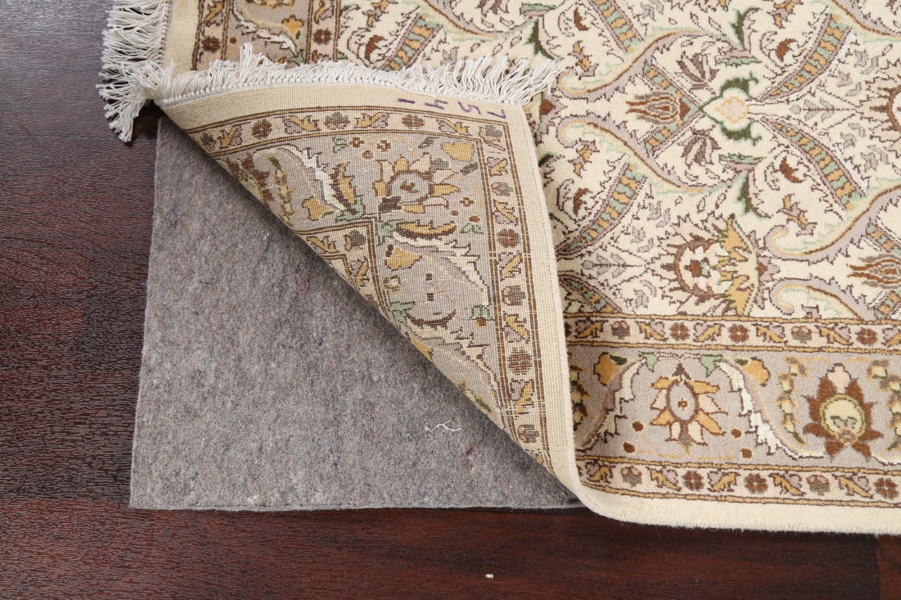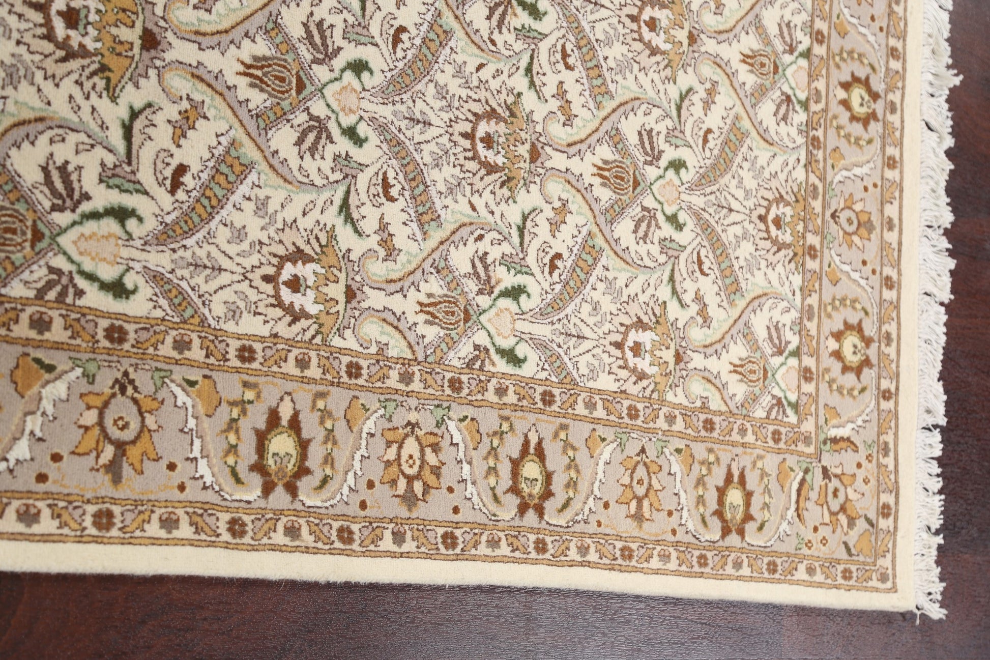 A Beautiful Genuine Pakistan Tabriz rug is Hand Knotted by skillful weavers in Pakistan with Wool & Silk Material. This rug is in New, First Quality condition. dimensions are 6' 2'' X 3' 11'' in foot and 188 X 119 in centimeter. the primary color is Beige & Ivories.