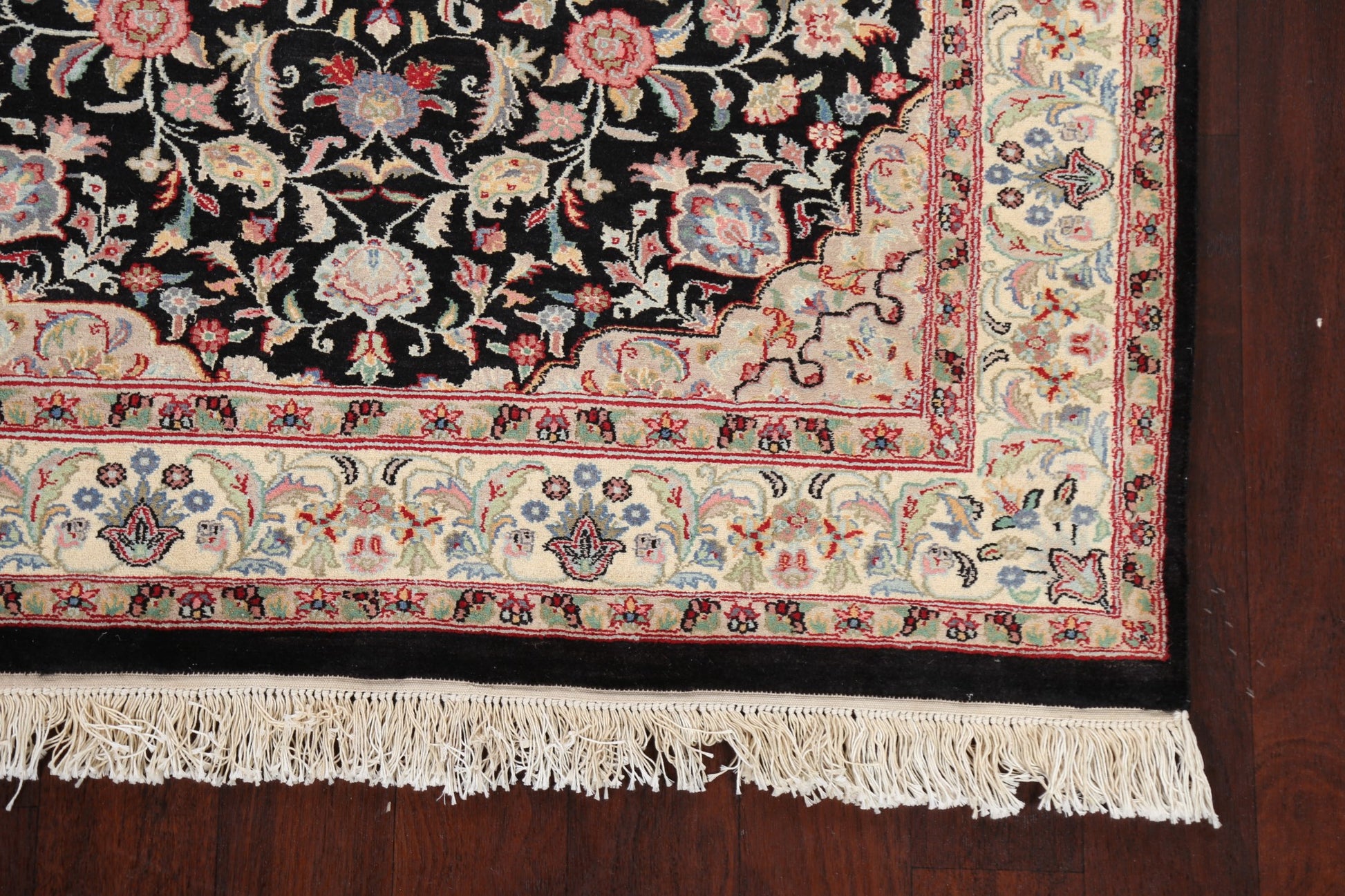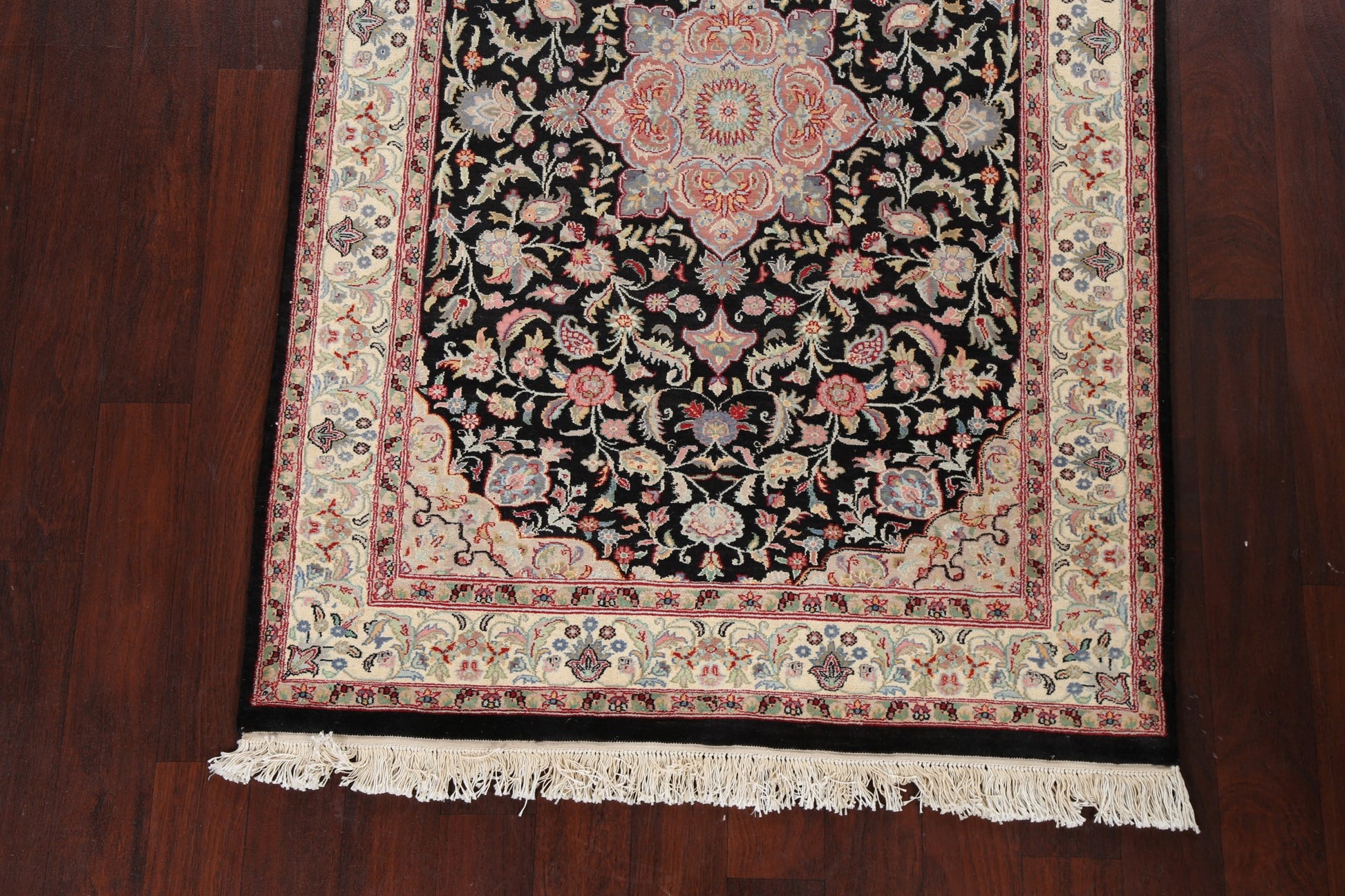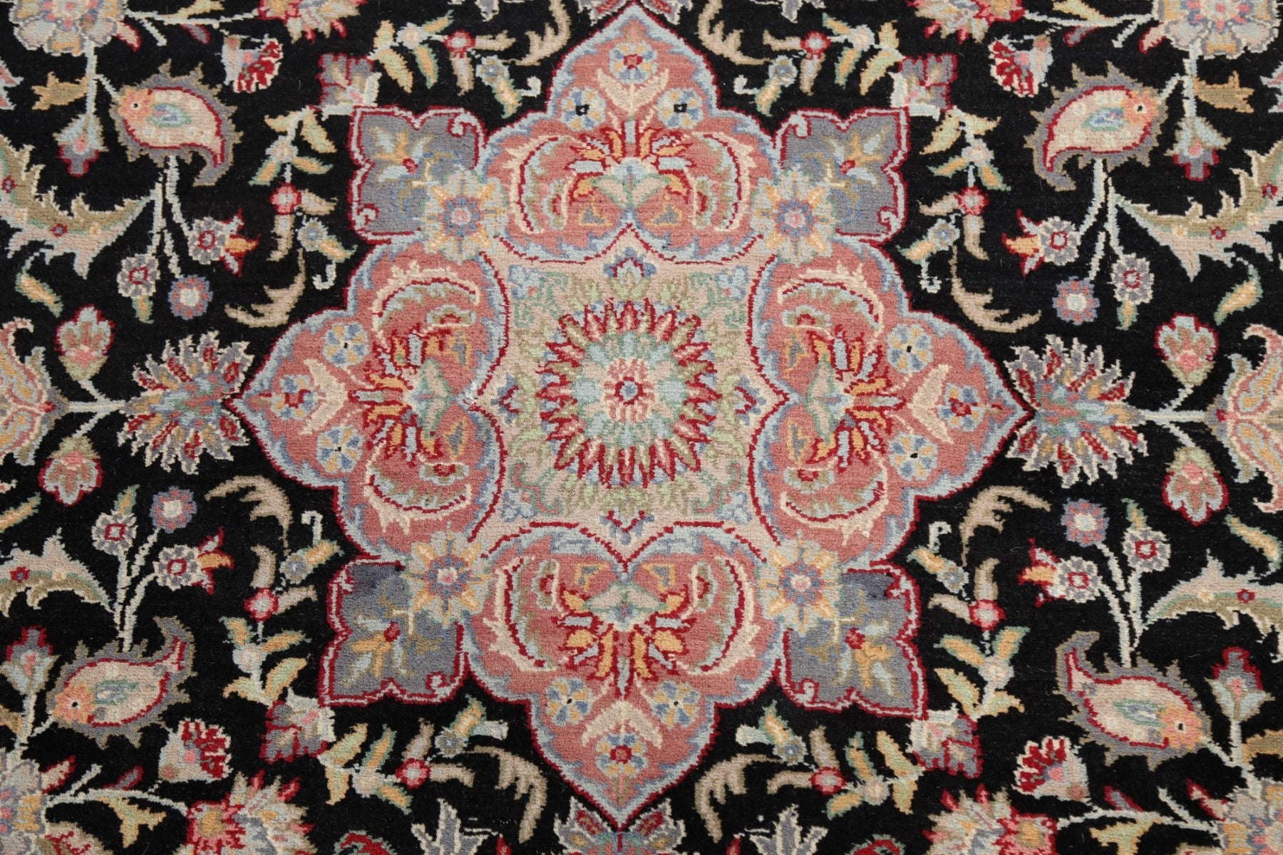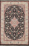 A Beautiful Genuine Pakistan Tabriz rug is Hand Knotted by skillful weavers in Pakistan with Wool & Silk Material. This rug is in New, First Quality condition. dimensions are 5' 11'' X 4' 0'' in foot and 180 X 122 in centimeter. the primary color is Black.