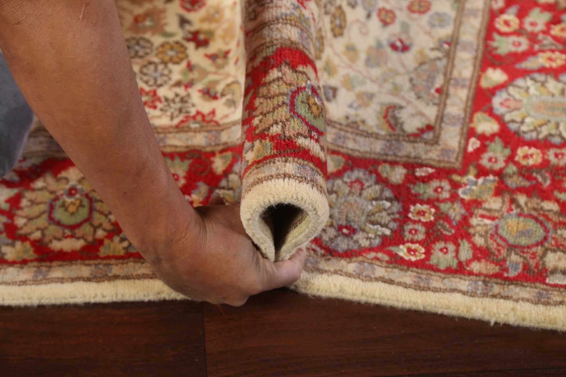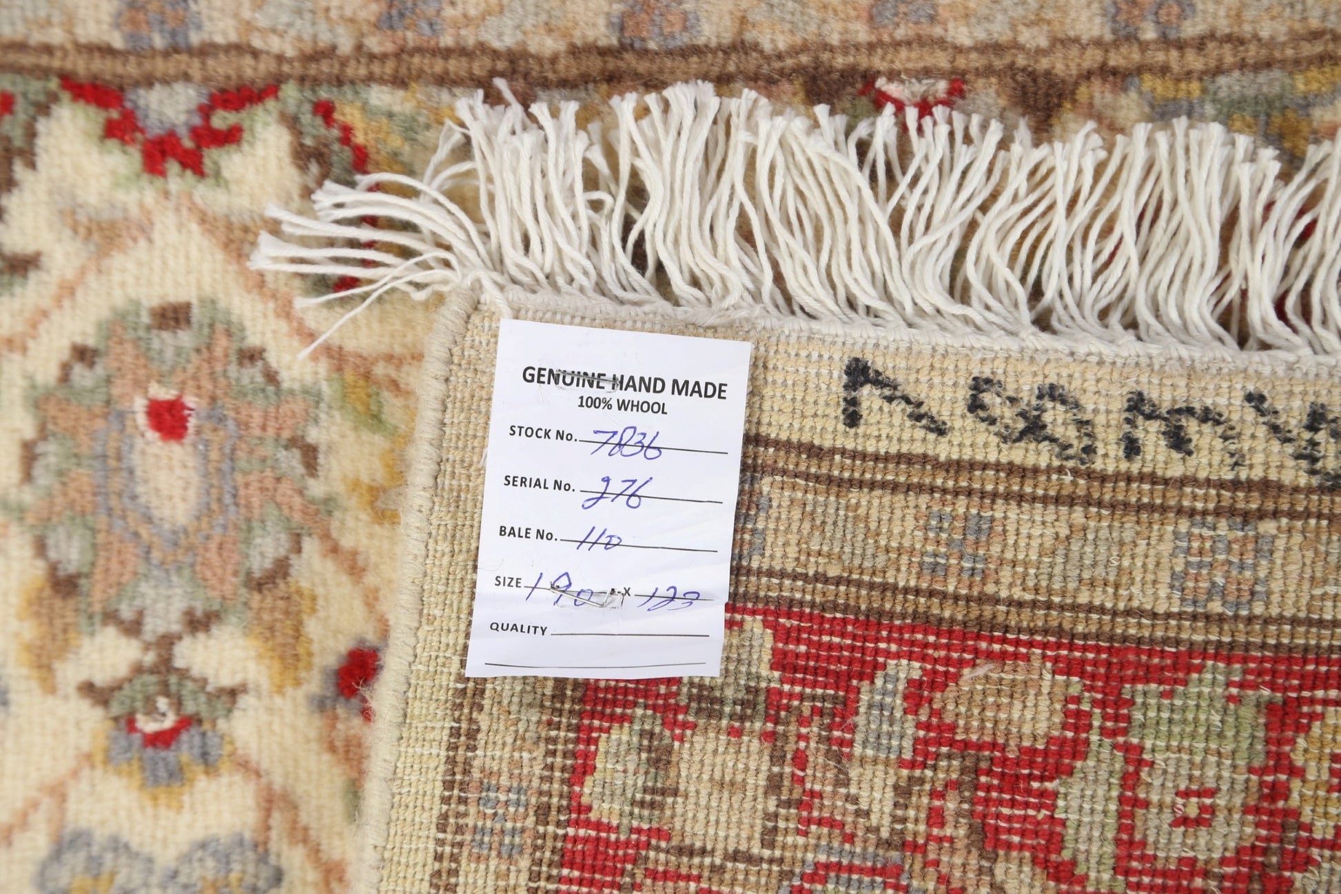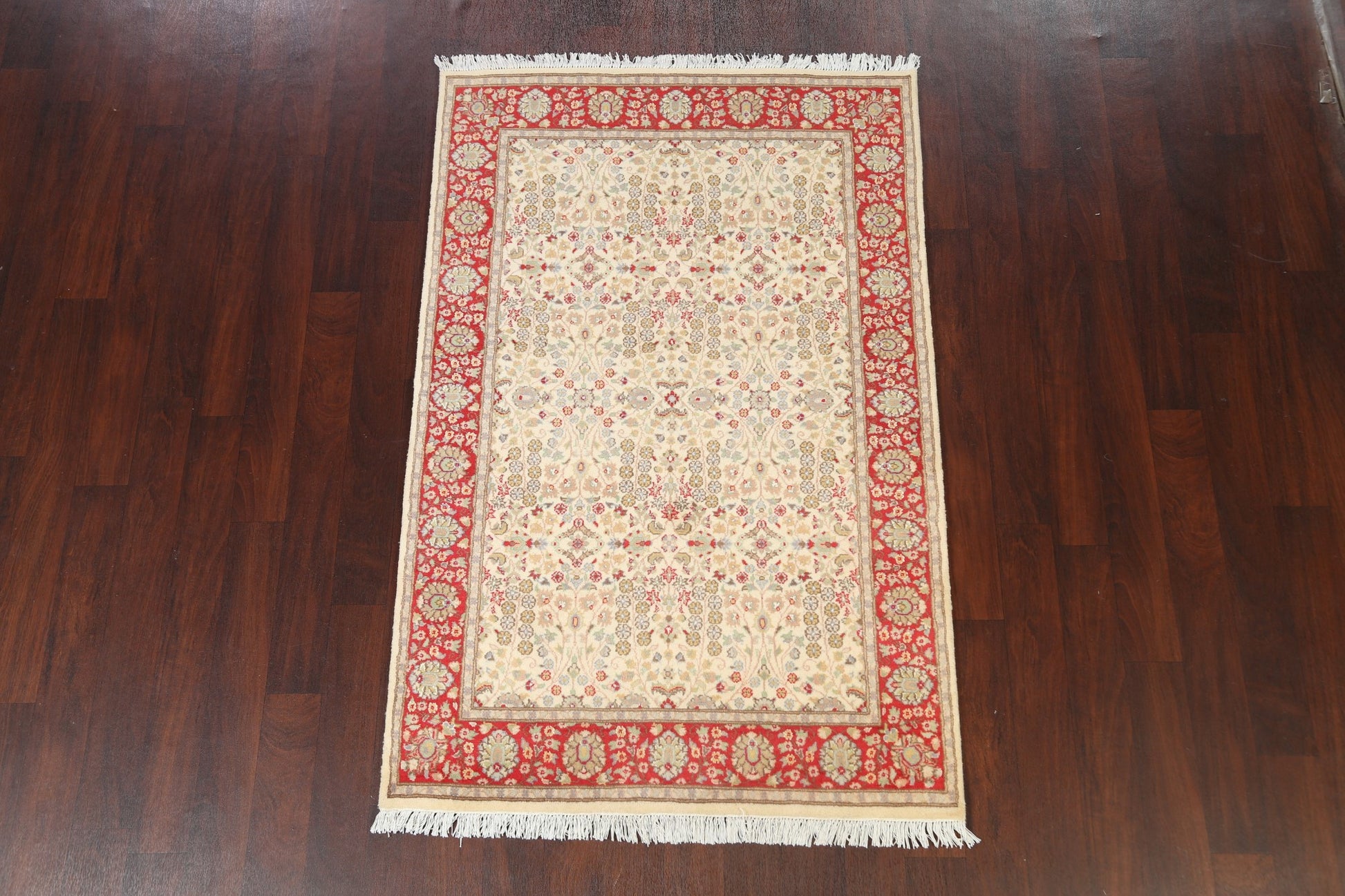 A Beautiful Genuine Pakistan Tabriz rug is Hand Knotted by skillful weavers in Pakistan with Wool & Silk Material. This rug is in New, First Quality condition. dimensions are 6' 3'' X 4' 0'' in foot and 191 X 122 in centimeter. the primary color is Beige & Ivories.