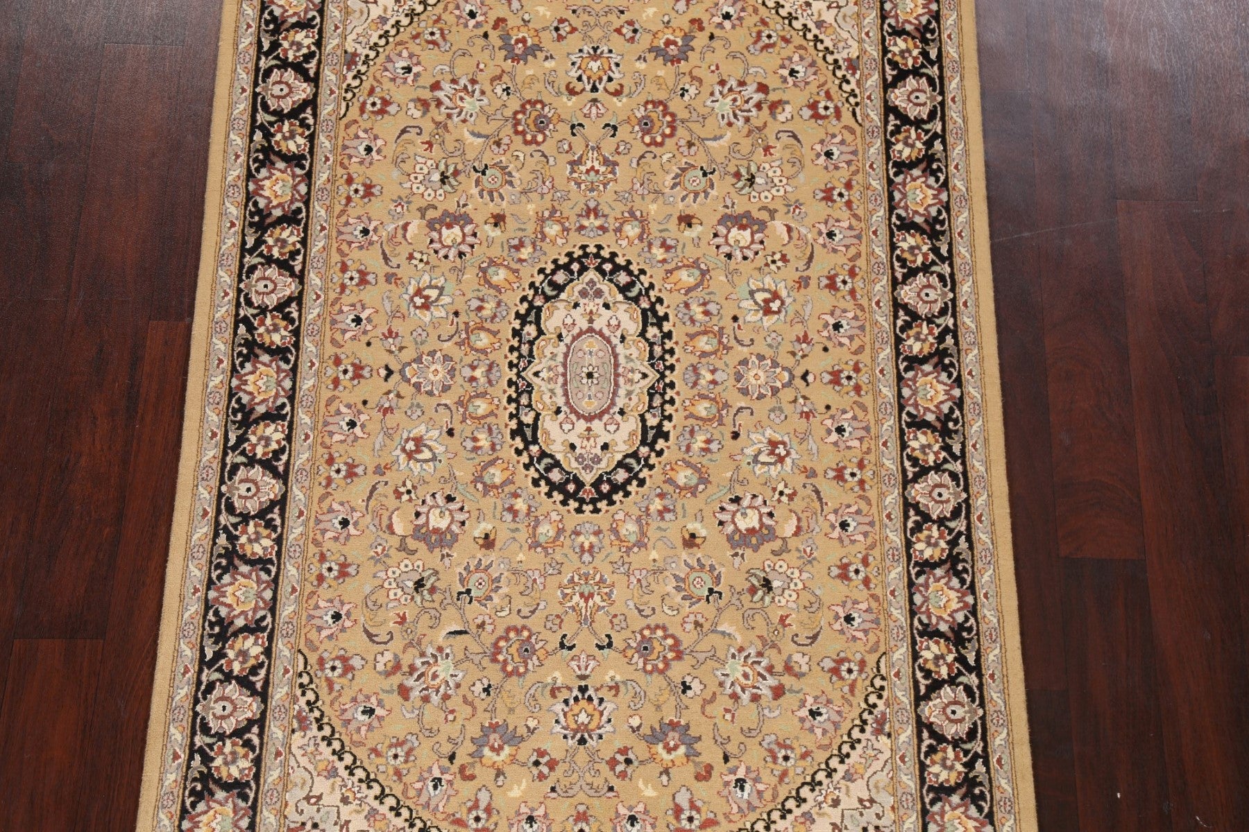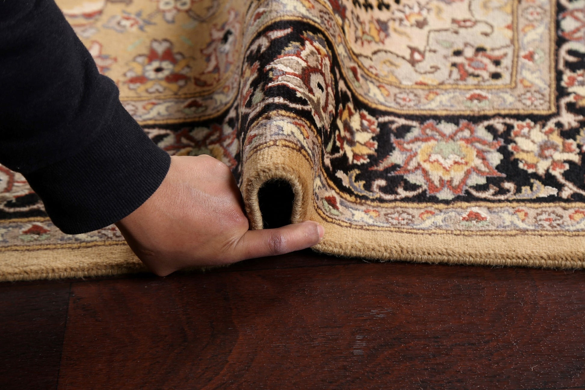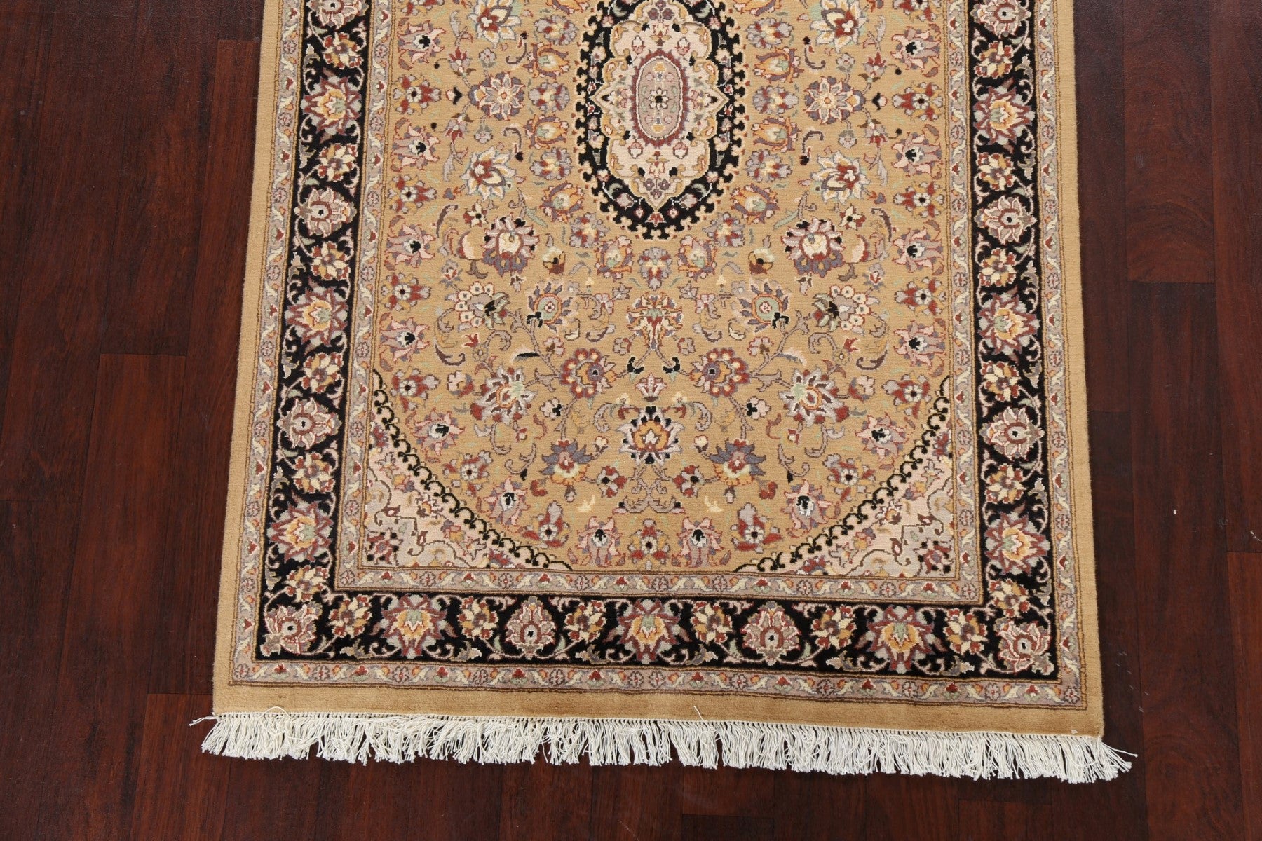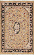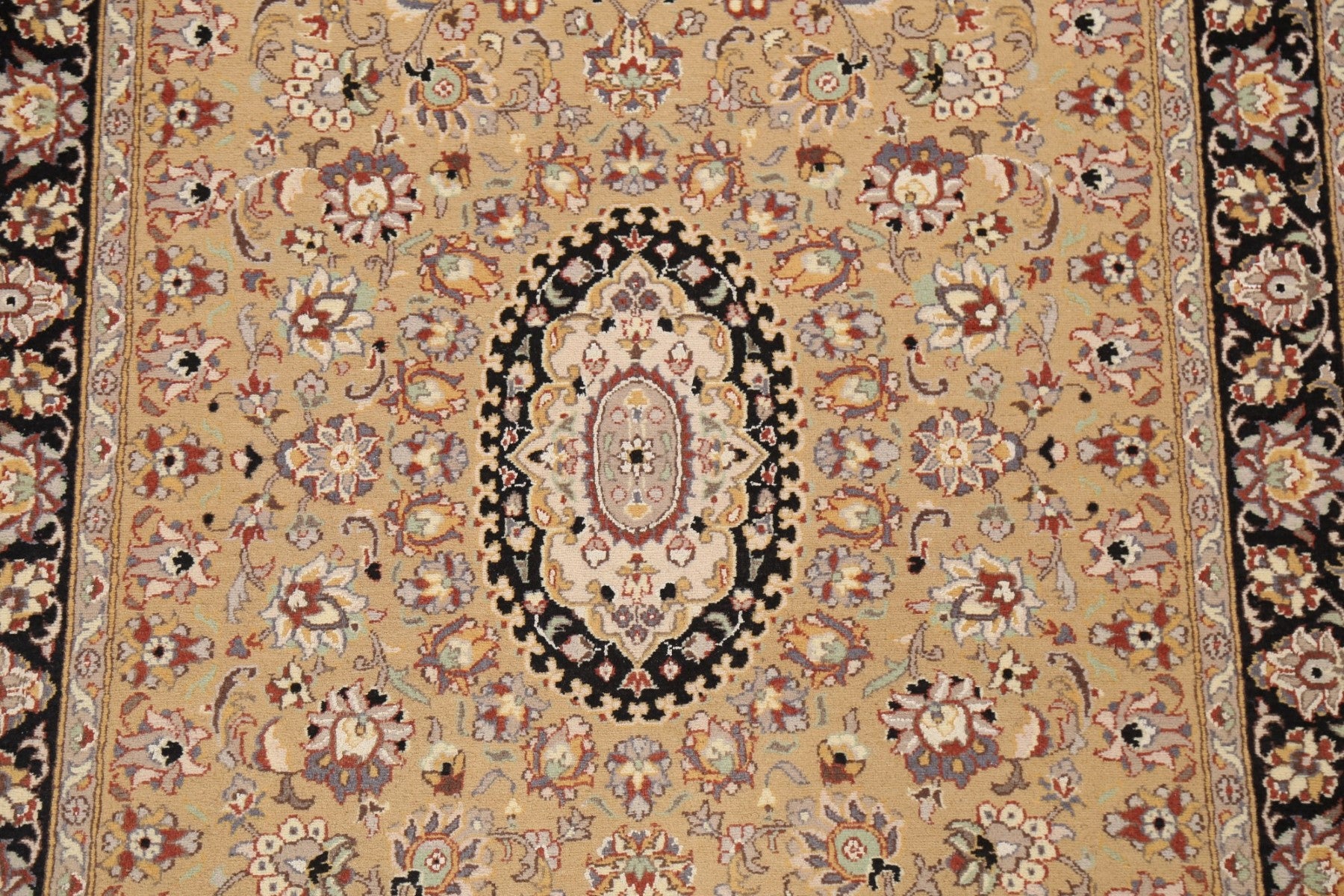 A Beautiful Genuine Pakistan Tabriz rug is Hand Knotted by skillful weavers in Pakistan with Wool & Silk Material. This rug is in New, First Quality condition. dimensions are 6' 3'' X 4' 0'' in foot and 191 X 122 in centimeter. the primary color is Beige & Ivories.