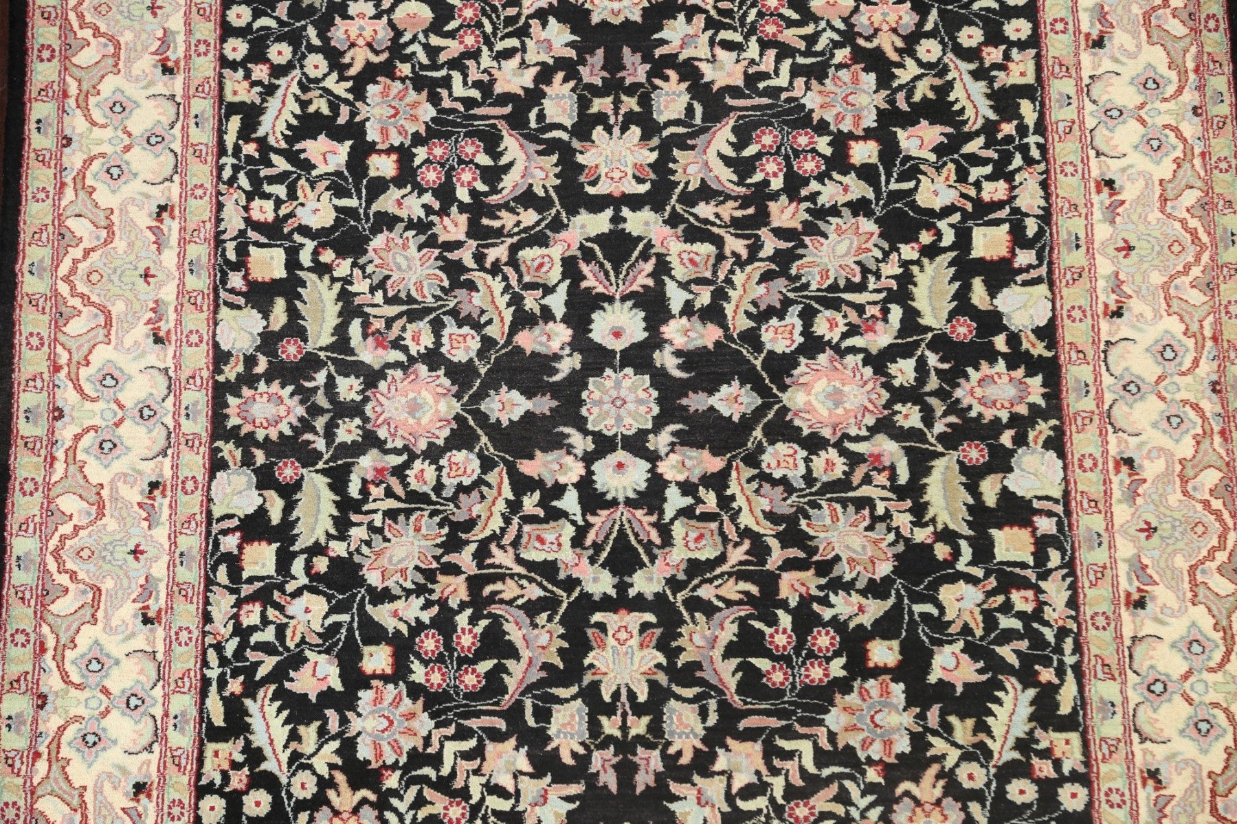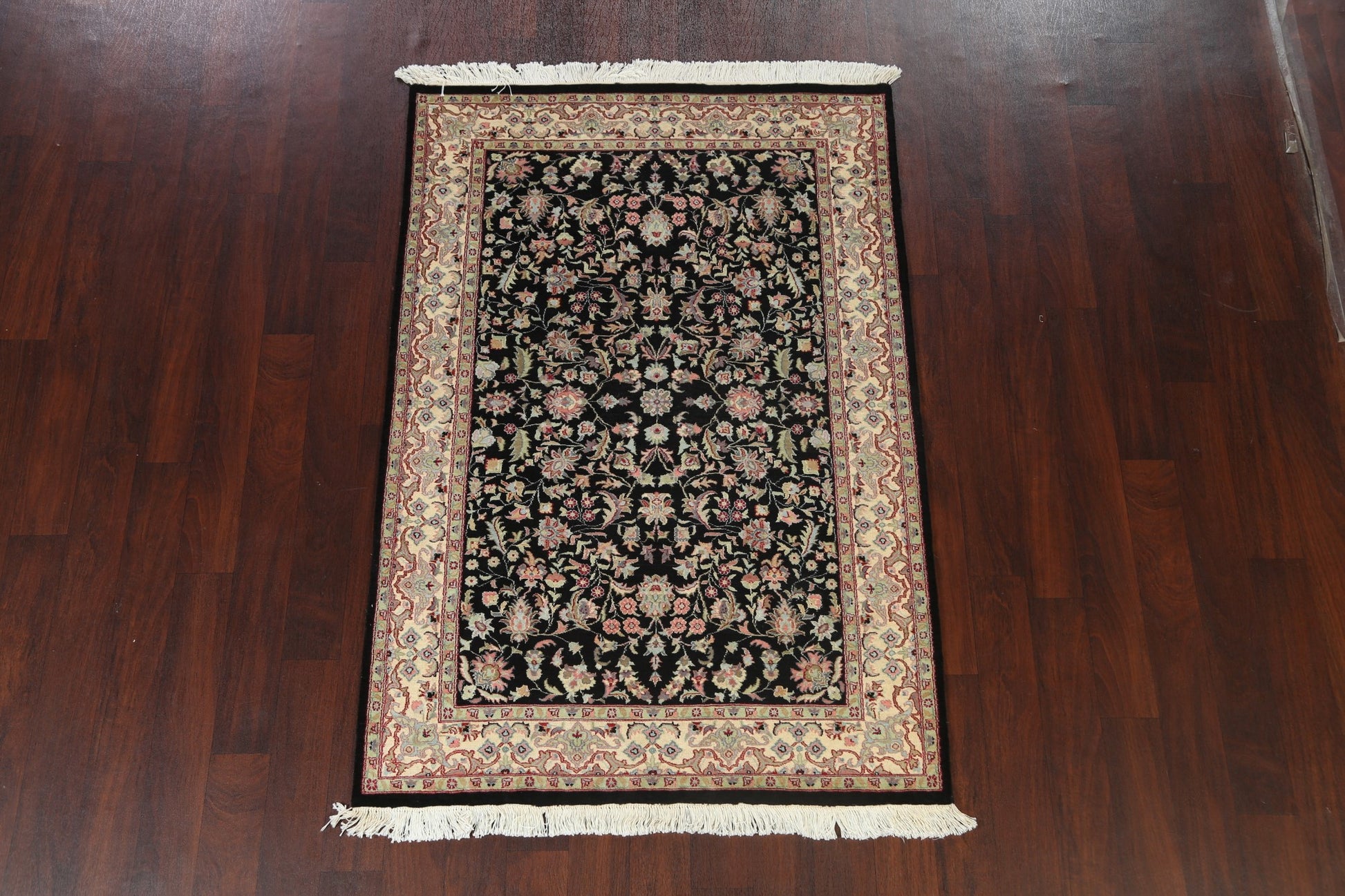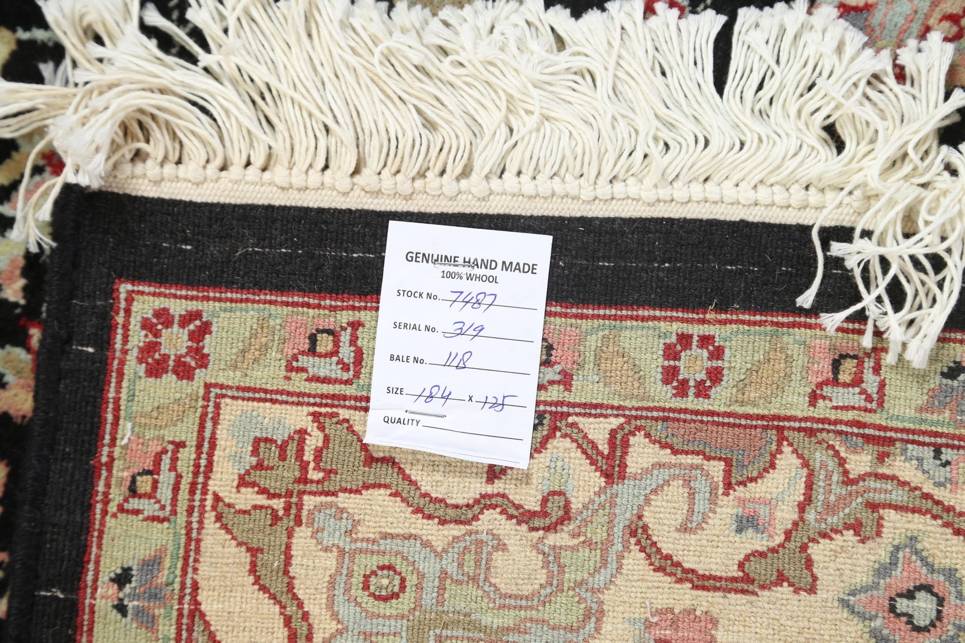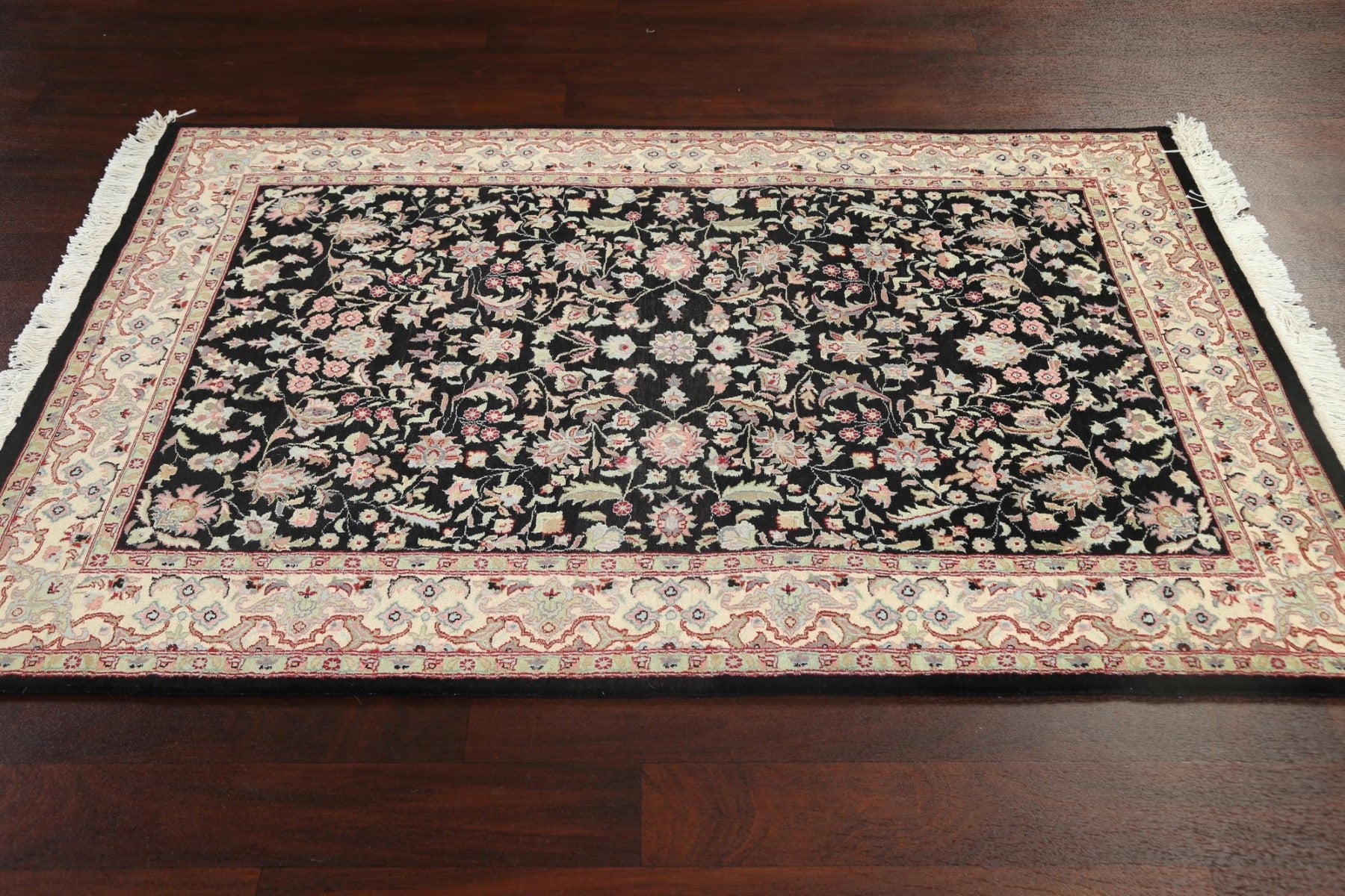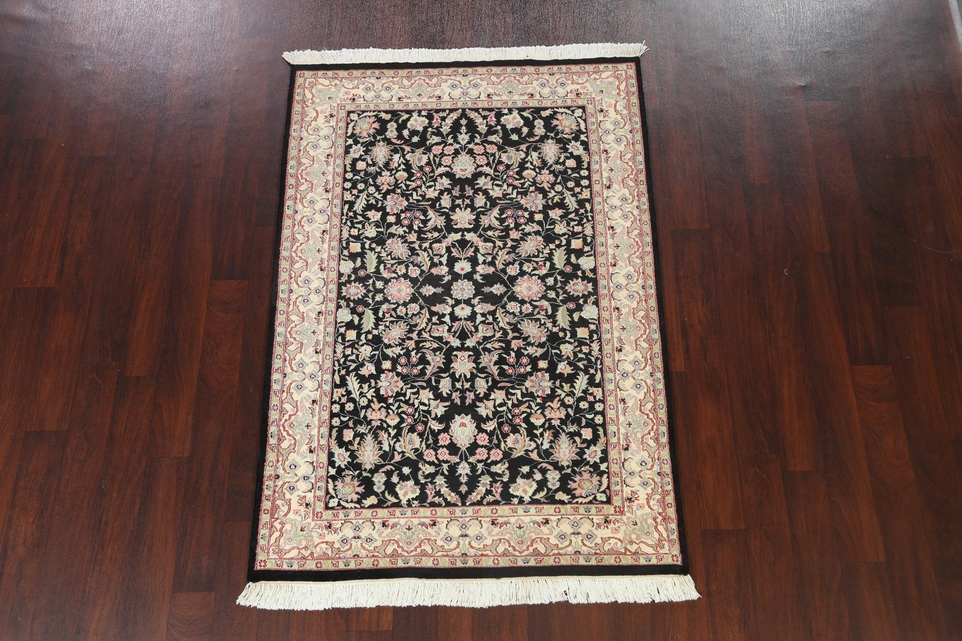 A Beautiful Genuine Pakistan Tabriz rug is Hand Knotted by skillful weavers in Pakistan with Wool & Silk Material. This rug is in New, First Quality condition. dimensions are 6' 1'' X 4' 1'' in foot and 185 X 124 in centimeter. the primary color is Black.