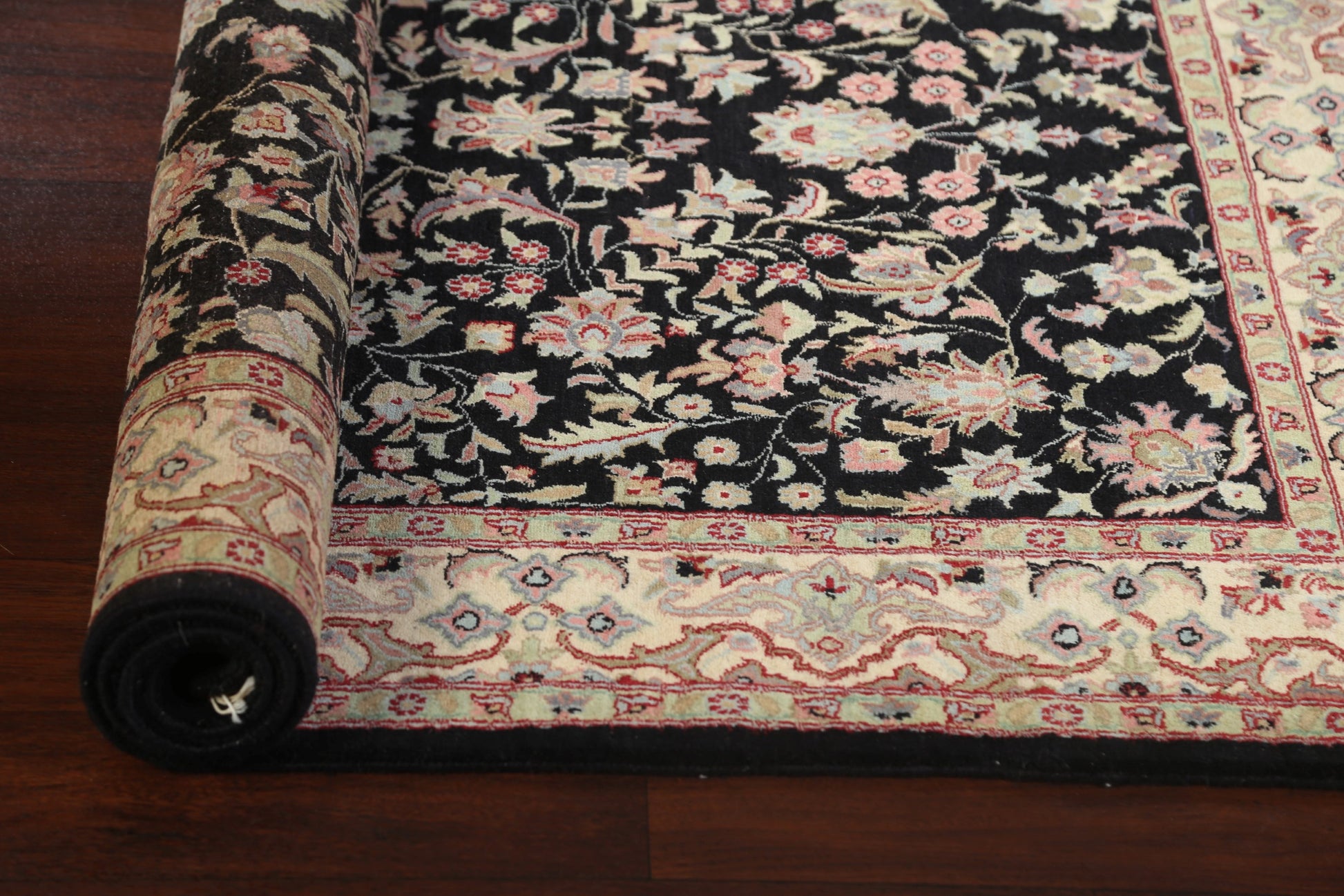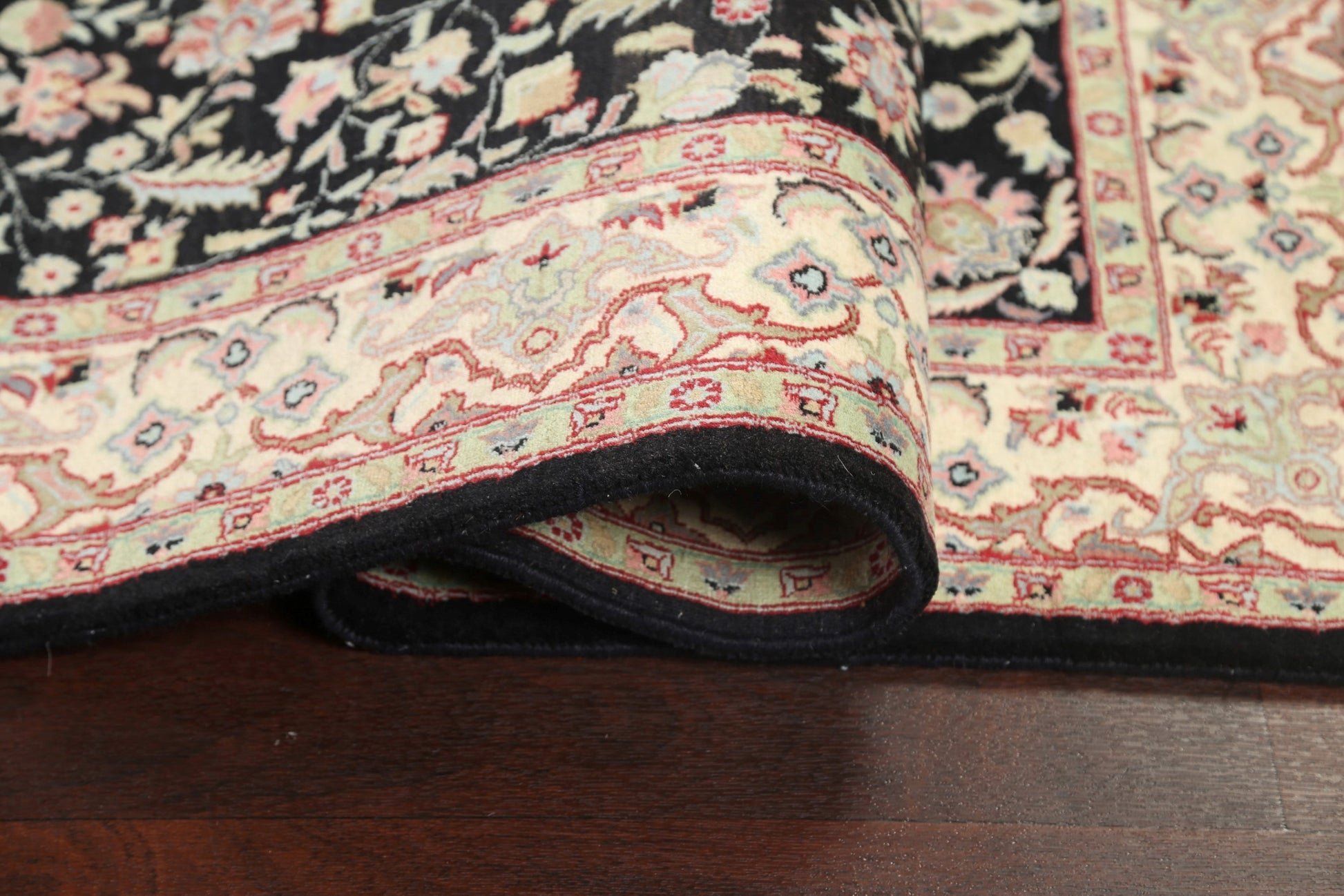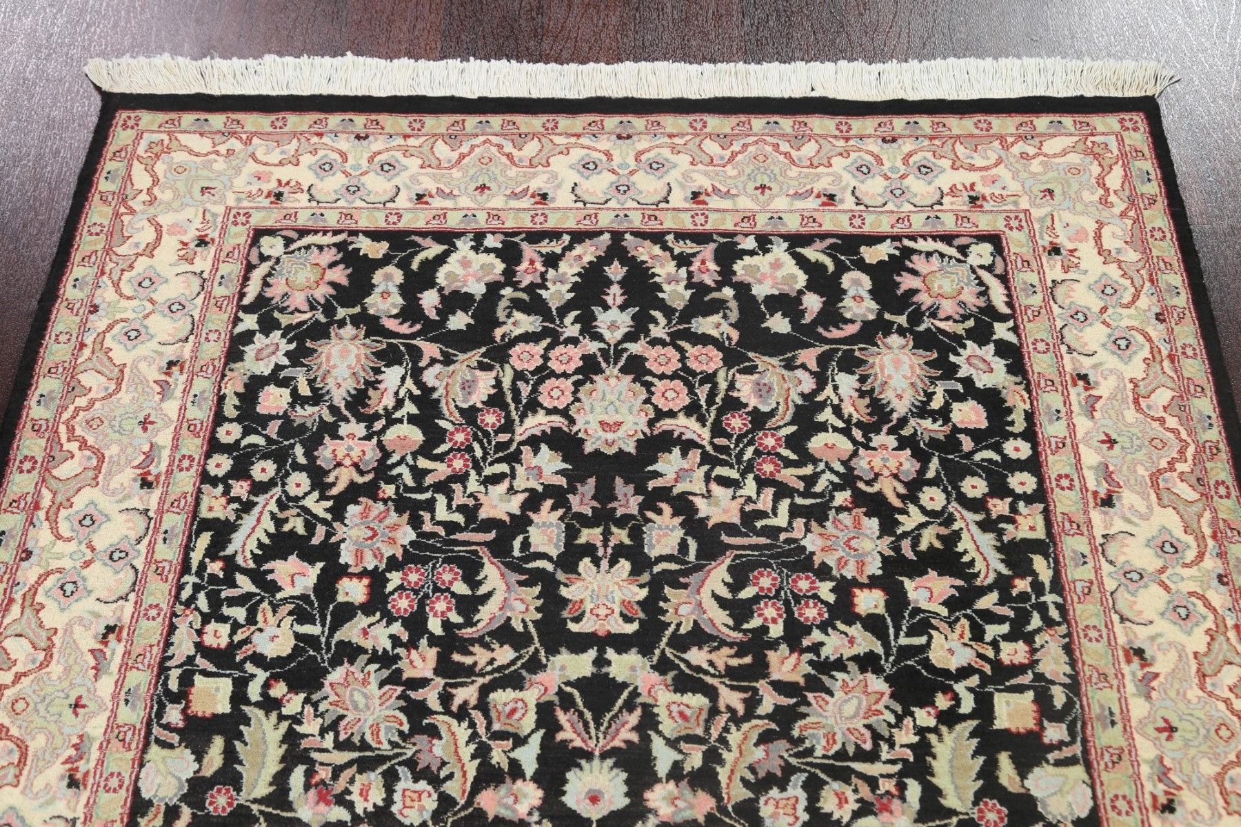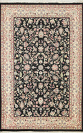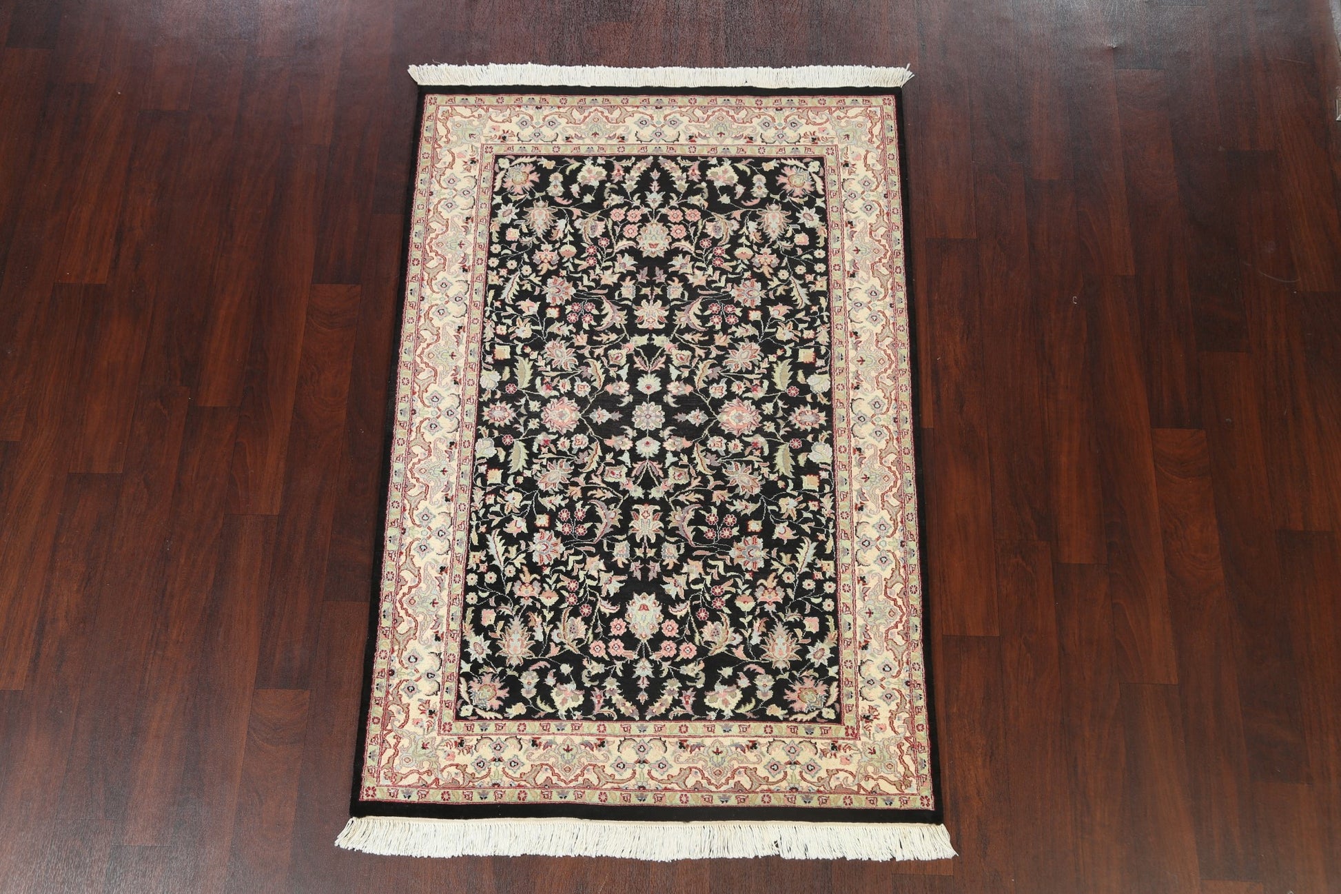 A Beautiful Genuine Pakistan Tabriz rug is Hand Knotted by skillful weavers in Pakistan with Wool & Silk Material. This rug is in New, First Quality condition. dimensions are 6' 1'' X 4' 1'' in foot and 185 X 124 in centimeter. the primary color is Black.