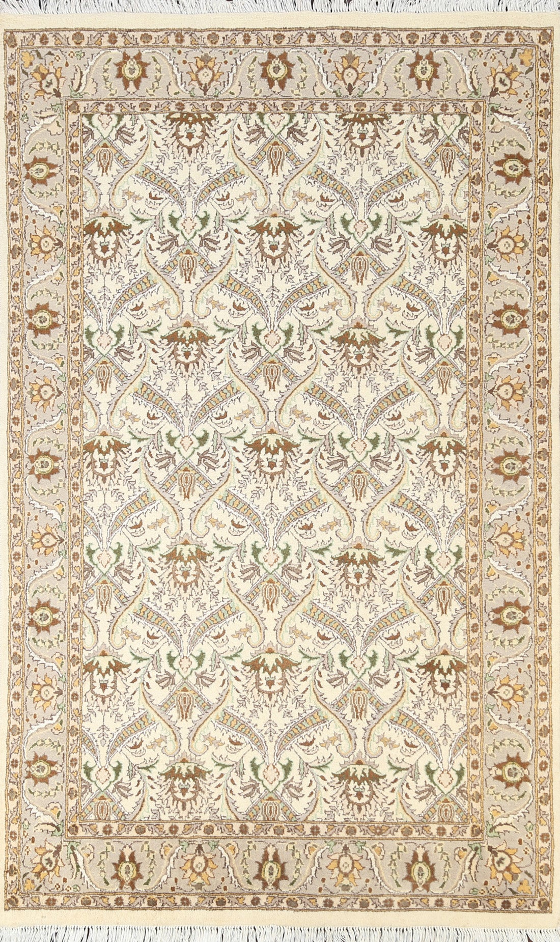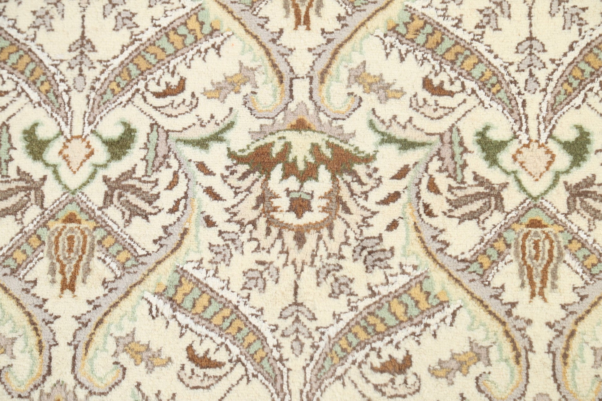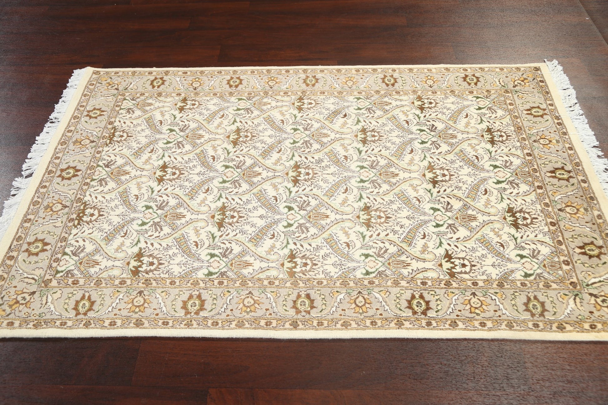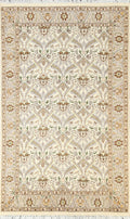 A Beautiful Genuine Pakistan Tabriz rug is Hand Knotted by skillful weavers in Pakistan with Wool & Silk Material. This rug is in New, First Quality condition. dimensions are 6' 3'' X 3' 11'' in foot and 191 X 119 in centimeter. the primary color is Beige & Ivories.