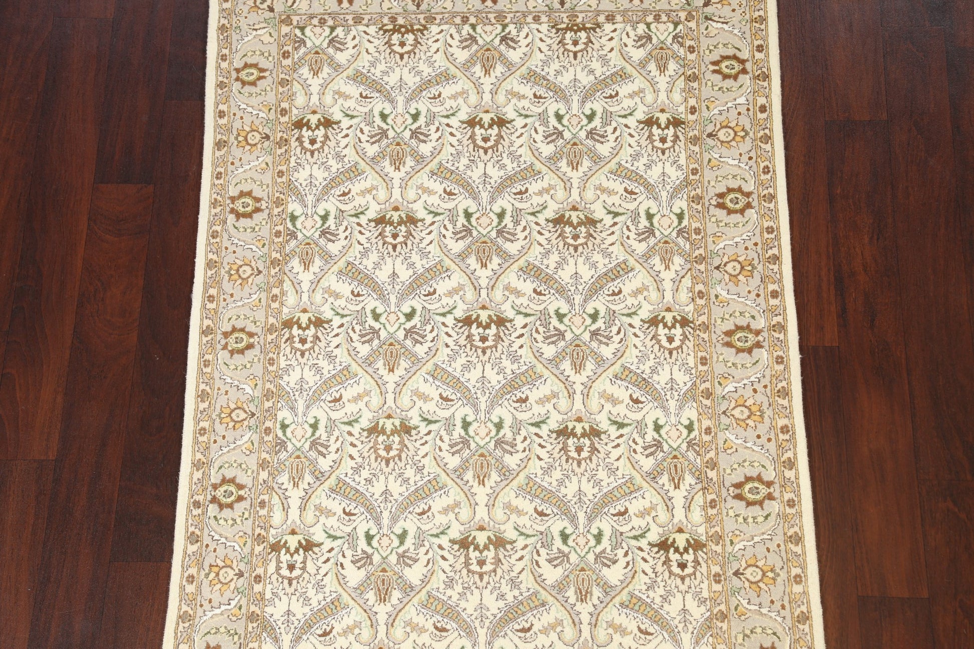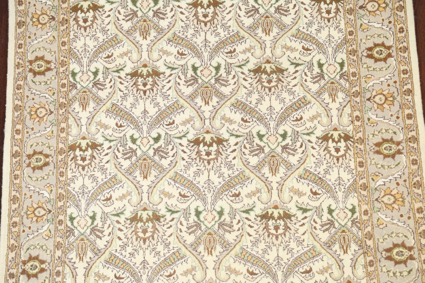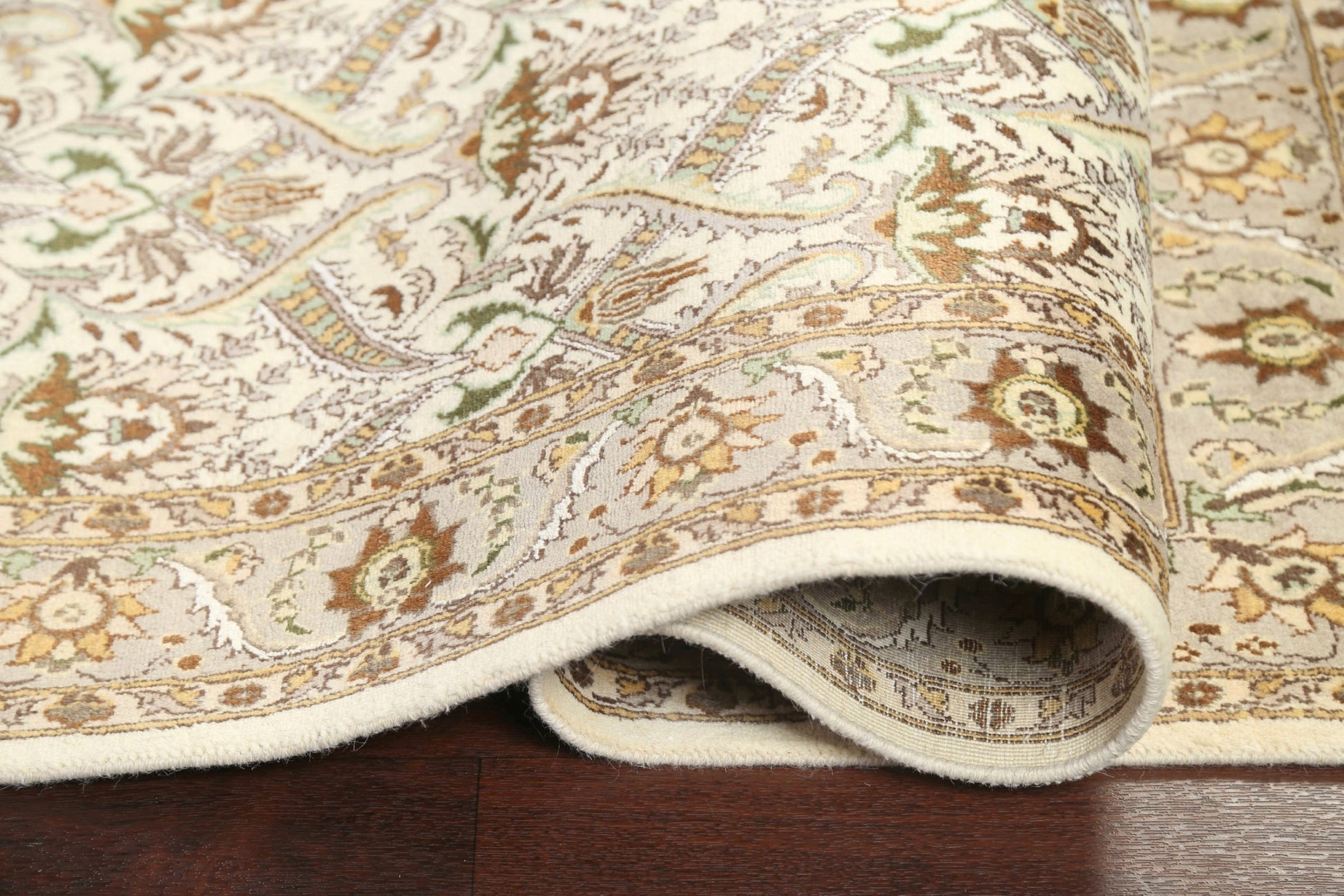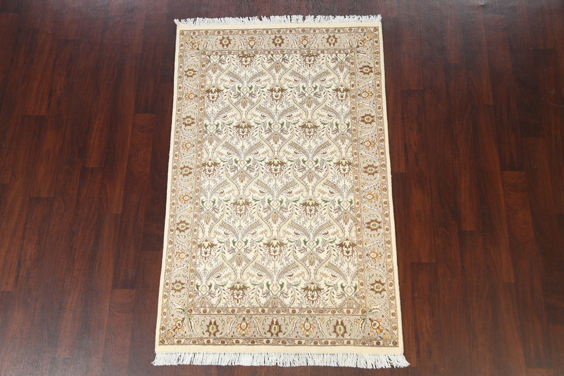 A Beautiful Genuine Pakistan Tabriz rug is Hand Knotted by skillful weavers in Pakistan with Wool & Silk Material. This rug is in New, First Quality condition. dimensions are 6' 3'' X 3' 11'' in foot and 191 X 119 in centimeter. the primary color is Beige & Ivories.