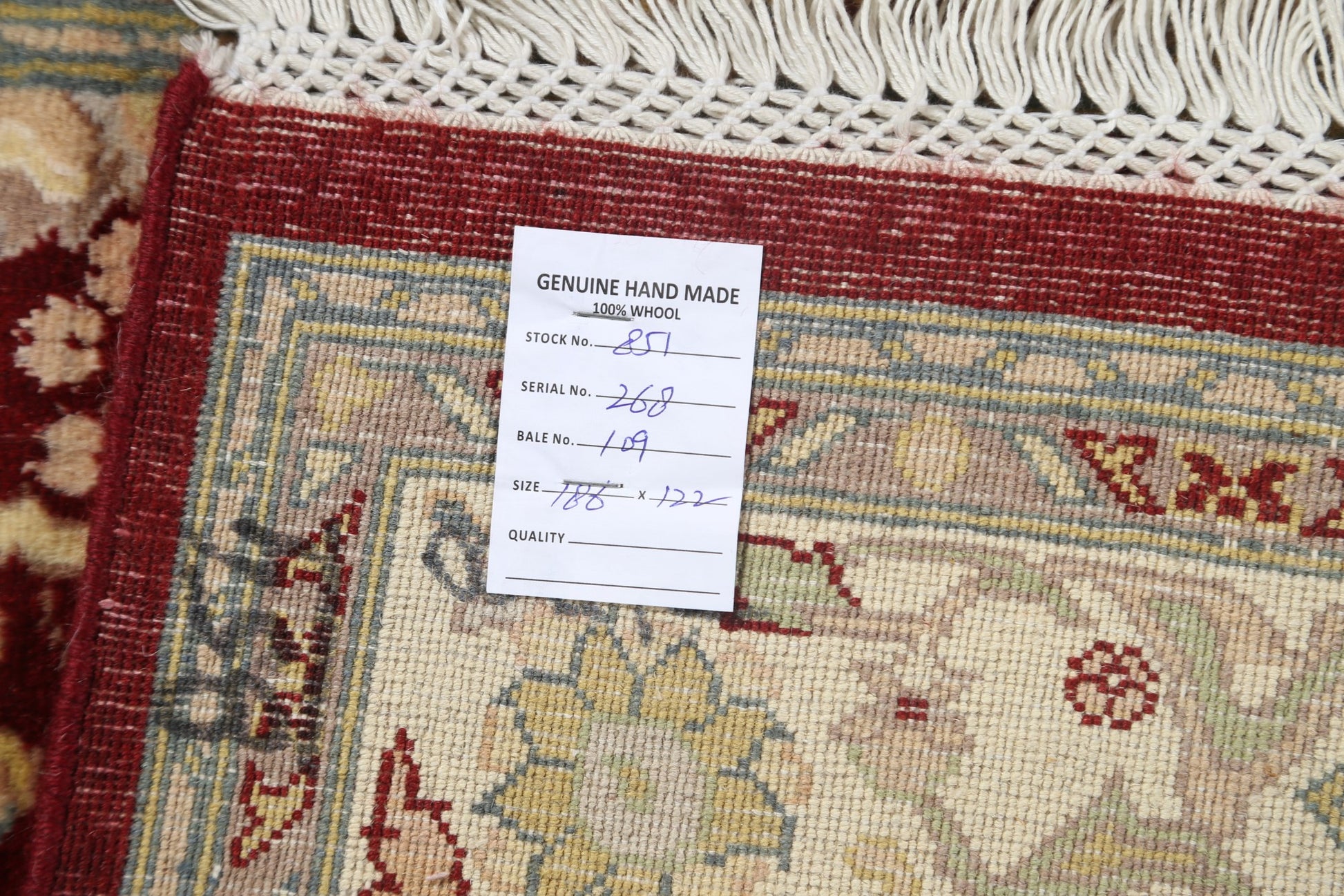 A Beautiful Genuine Pakistan Tabriz rug is Hand Knotted by skillful weavers in Pakistan with Wool & Silk Material. This rug is in New, First Quality condition. dimensions are 6' 2'' X 4' 0'' in foot and 188 X 122 in centimeter. the primary color is Red.