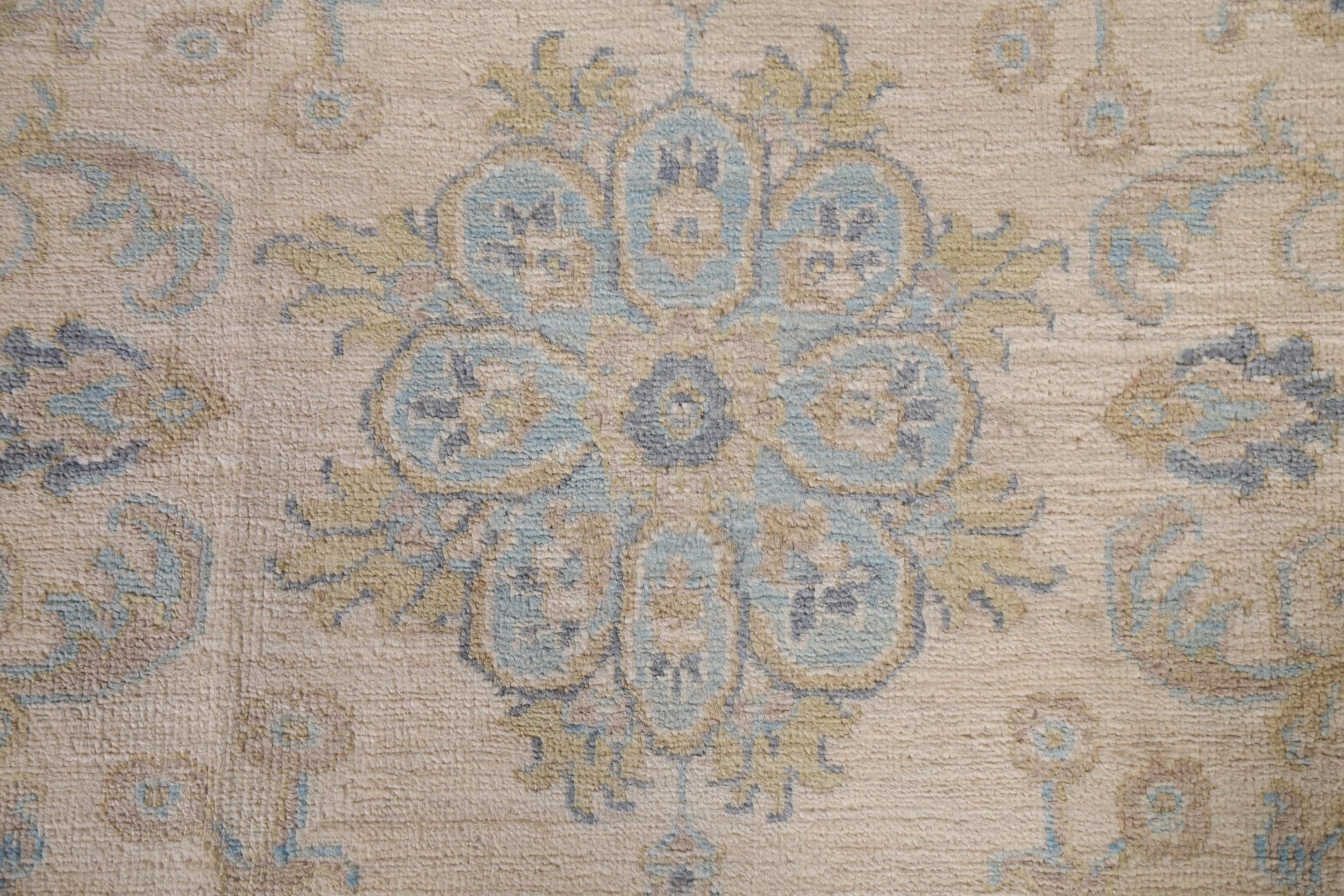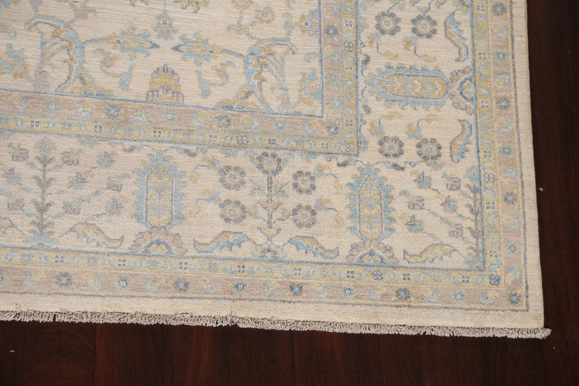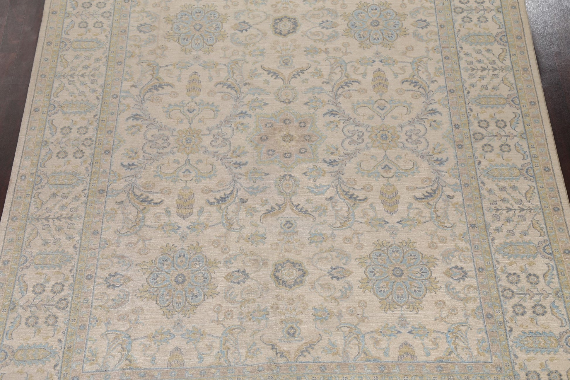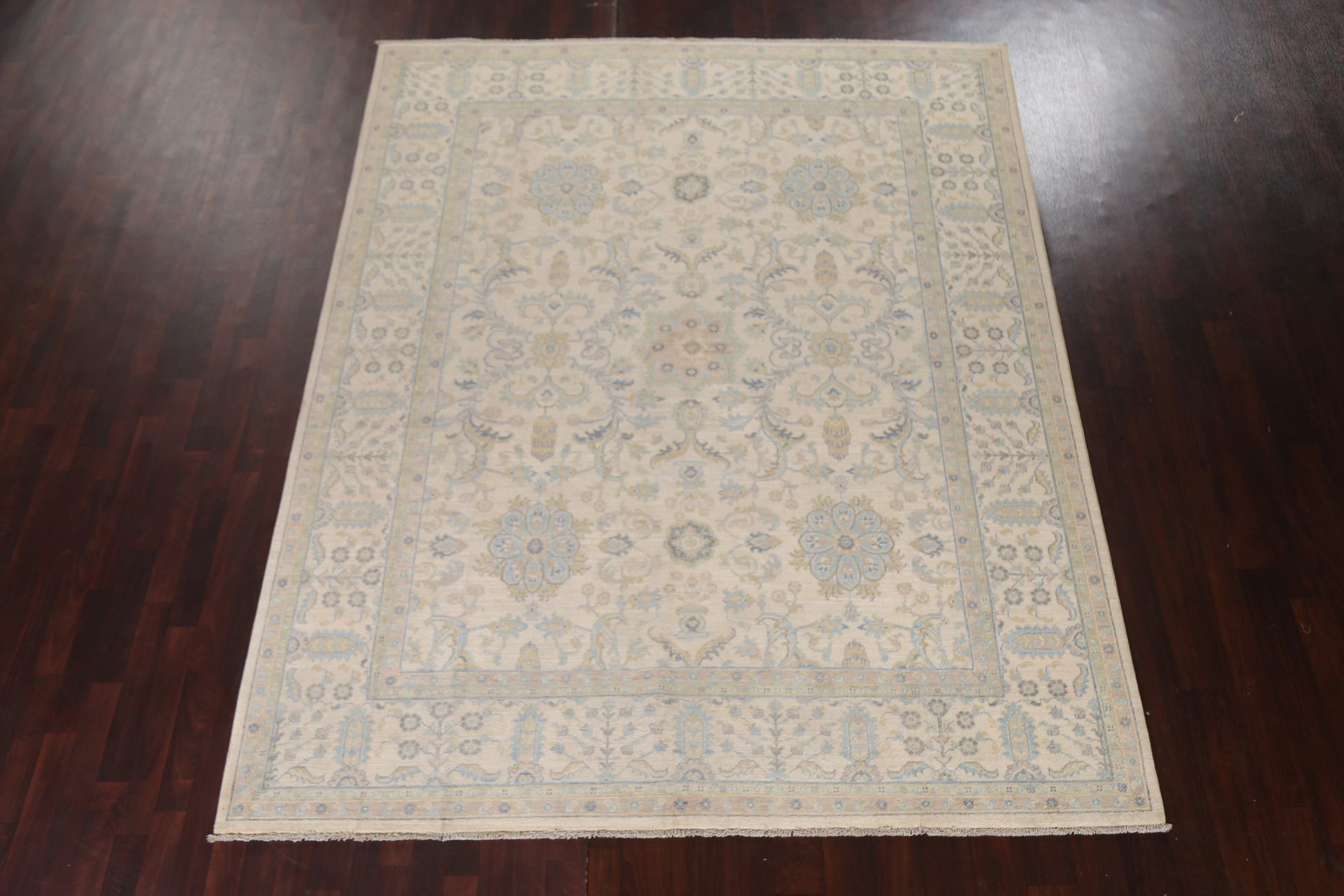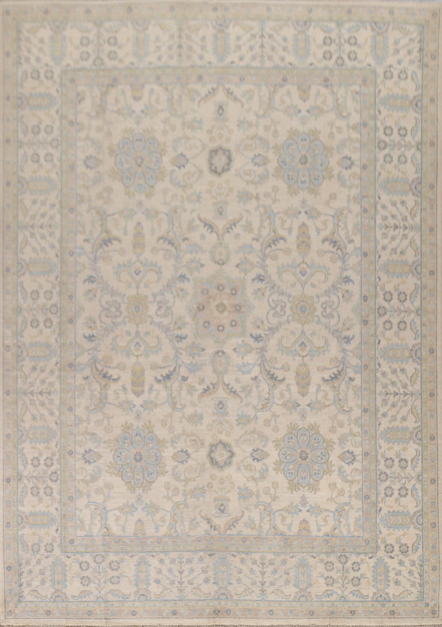 A Beautiful Genuine Pakistan Ziegler rug is Hand Knotted by skillful weavers in Pakistan with 100% Wool Material. This rug is in New, First Quality condition. dimensions are 9' 10'' X 7' 11'' in foot and 300 X 241 in centimeter. the primary color is Beige & Ivories.