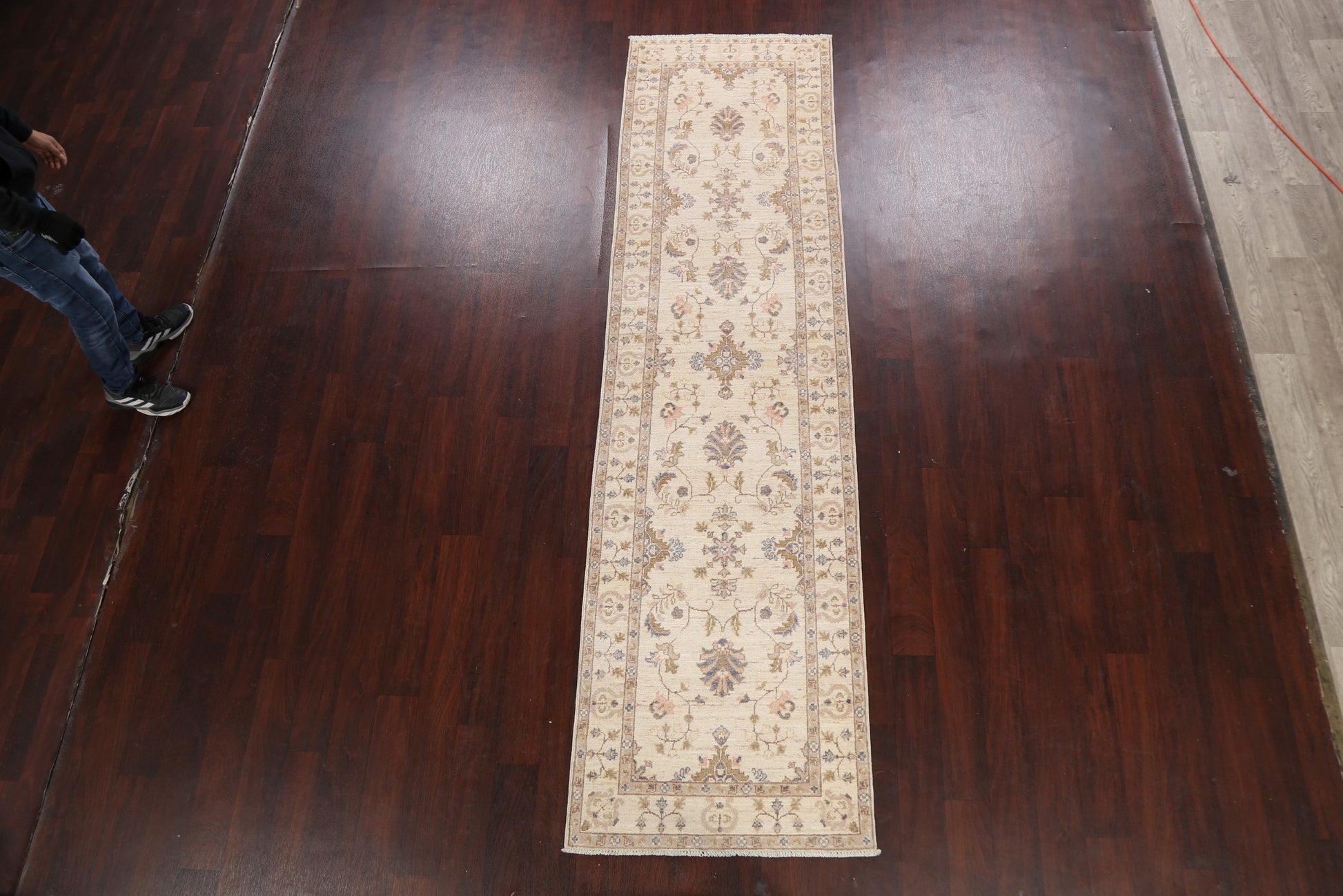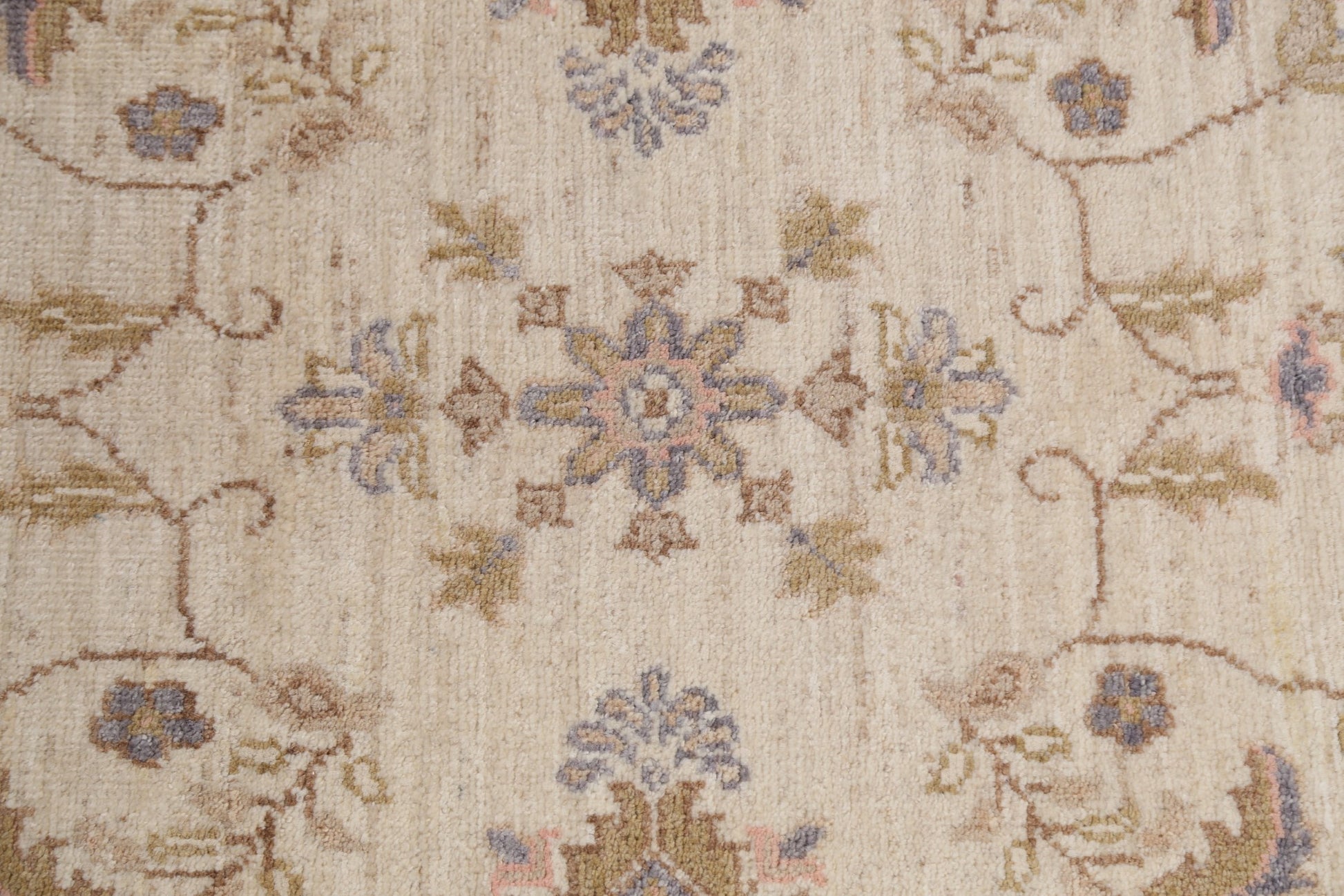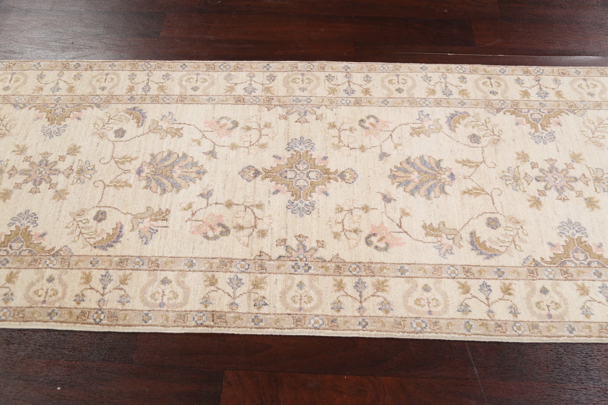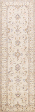 A Beautiful Genuine Pakistan Ziegler rug is Hand Knotted by skillful weavers in Pakistan with 100% Wool Material. This rug is in New, First Quality condition. dimensions are 10' 2'' X 2' 8'' in foot and 310 X 81 in centimeter. the primary color is Beige & Ivories.