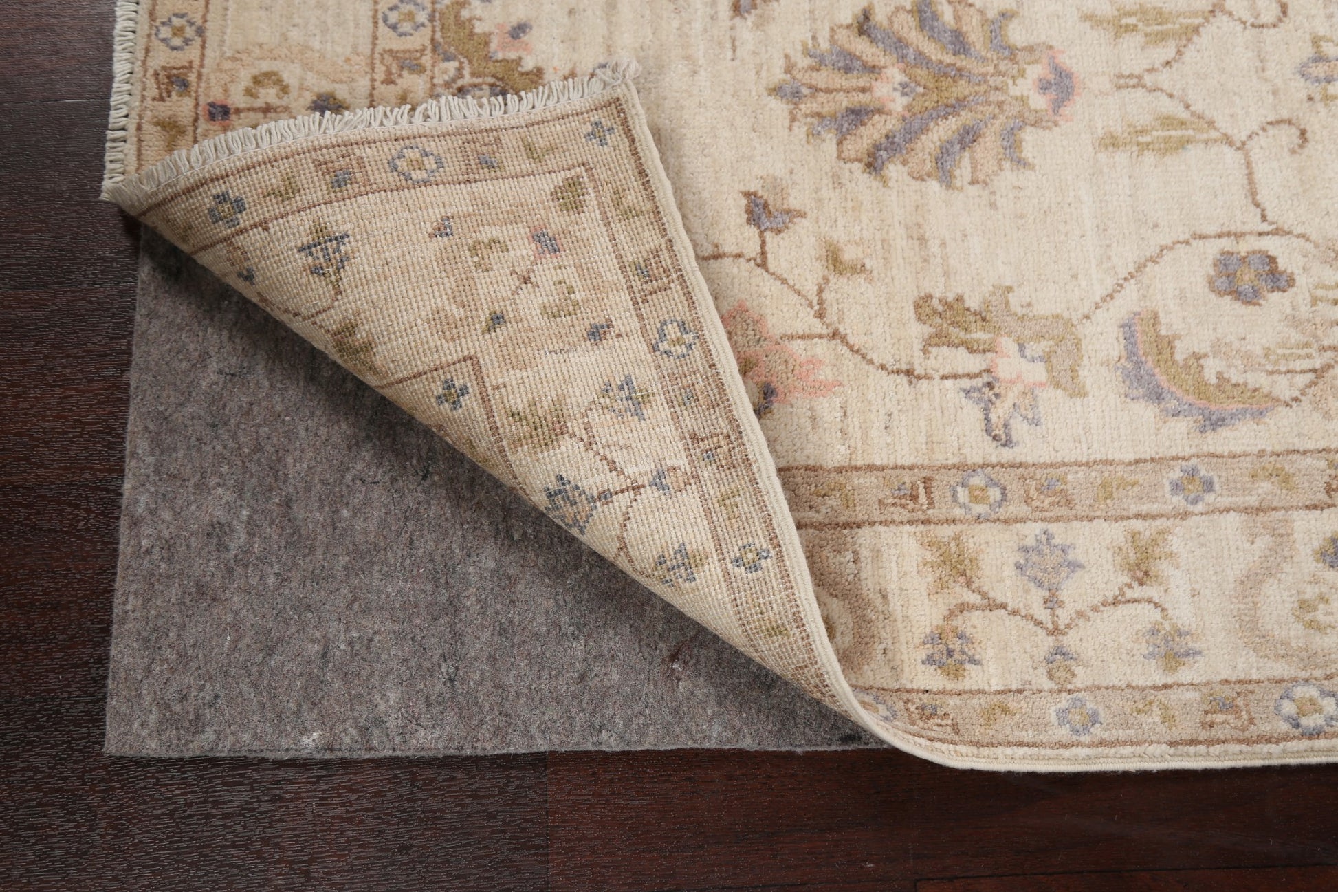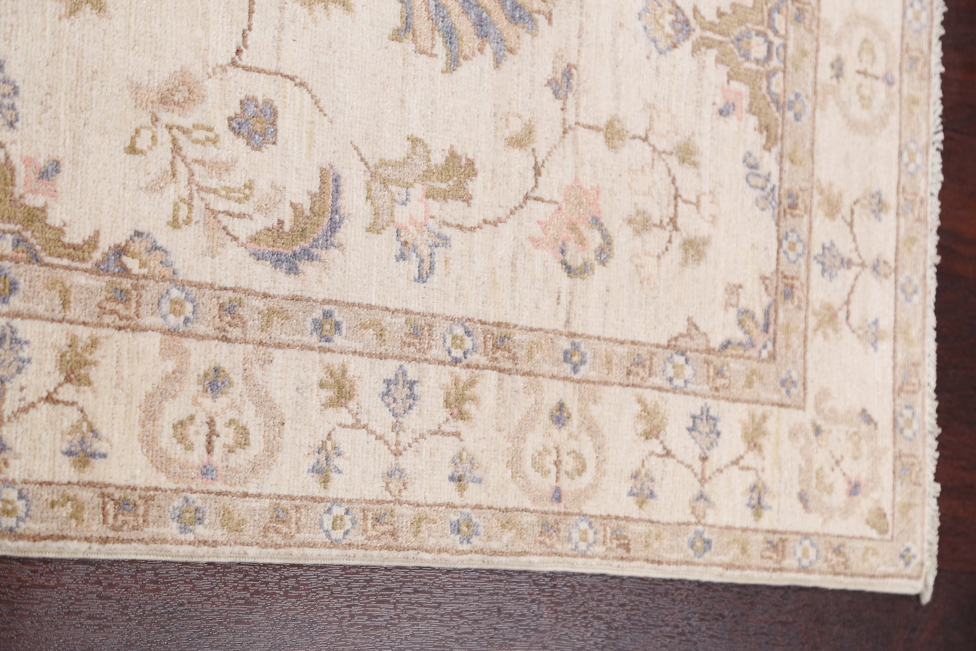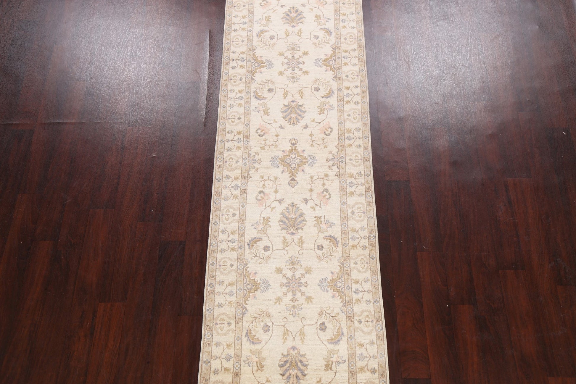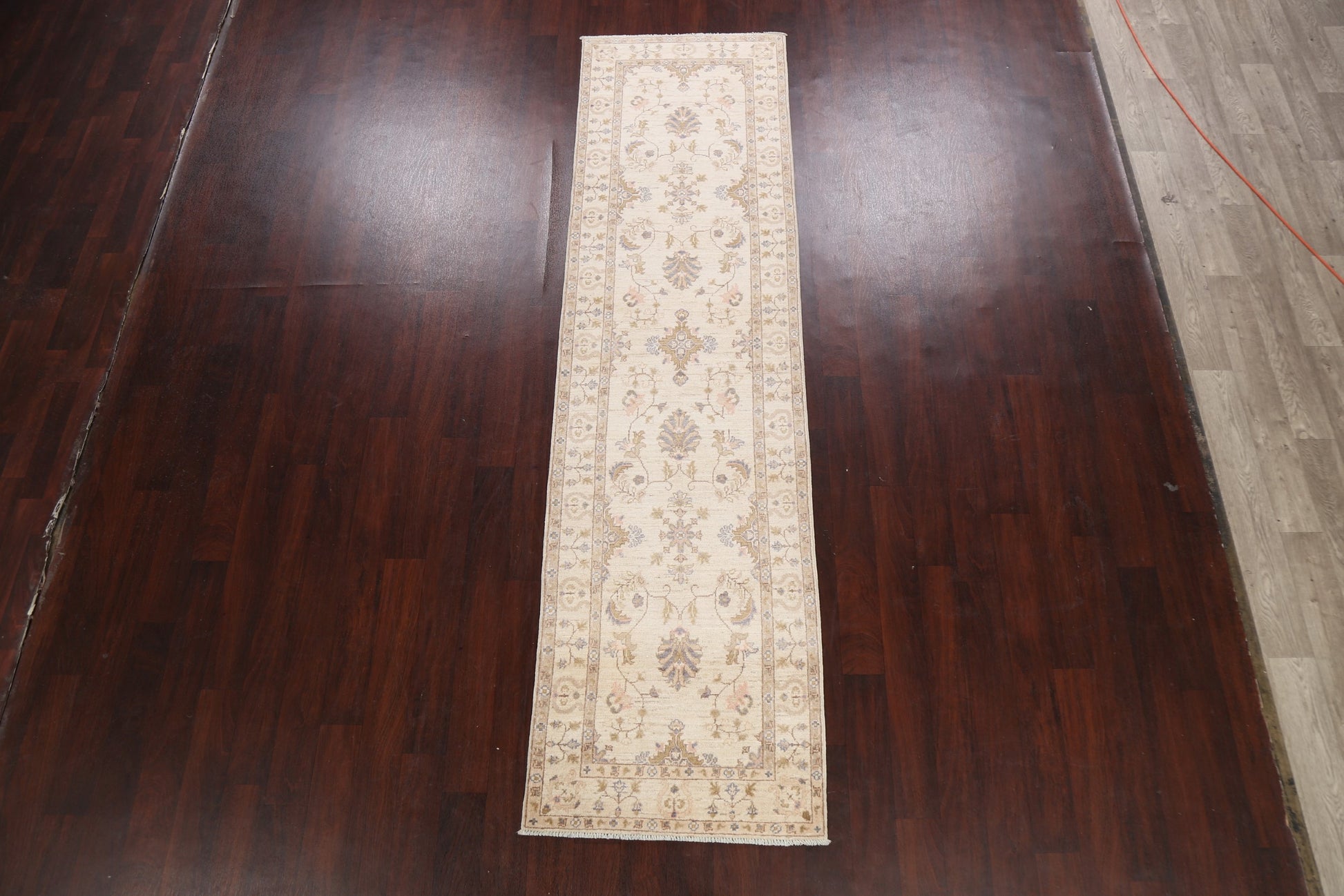 A Beautiful Genuine Pakistan Ziegler rug is Hand Knotted by skillful weavers in Pakistan with 100% Wool Material. This rug is in New, First Quality condition. dimensions are 10' 2'' X 2' 8'' in foot and 310 X 81 in centimeter. the primary color is Beige & Ivories.
