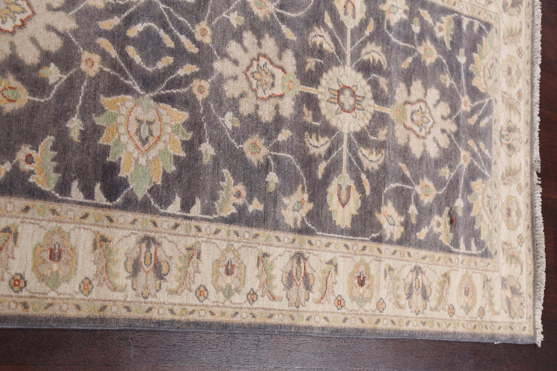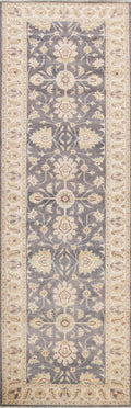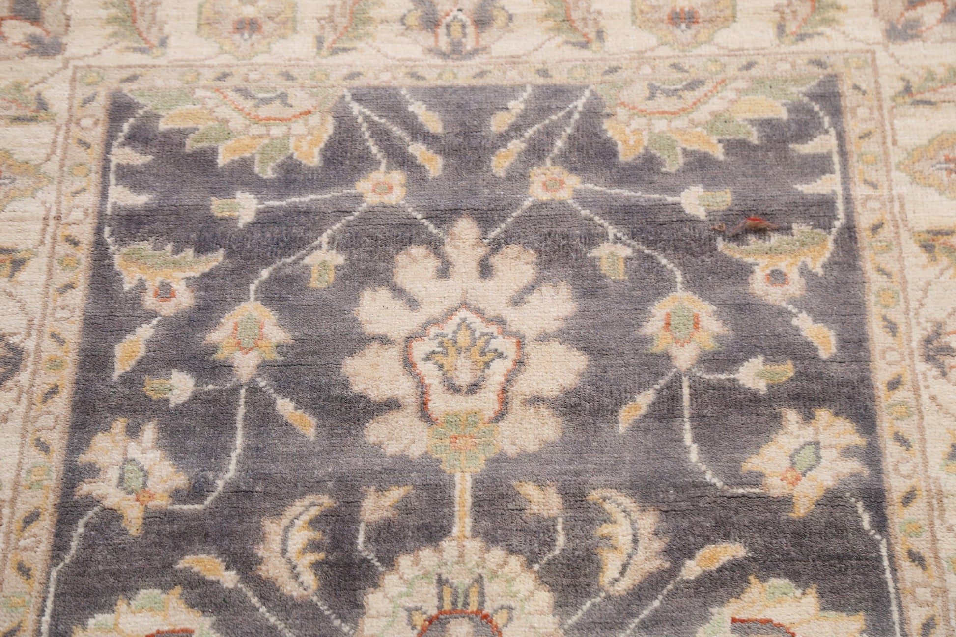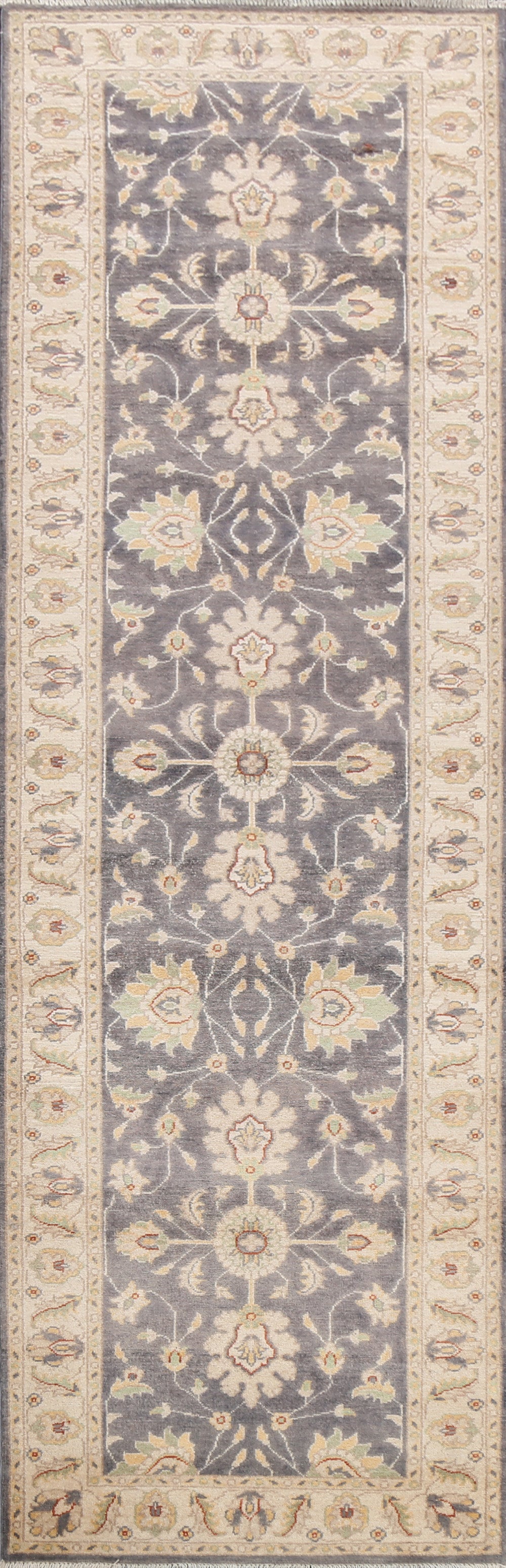 A Beautiful Genuine Pakistan Ziegler rug is Hand Knotted by skillful weavers in Pakistan with 100% Wool Material. This rug is in New, First Quality condition. dimensions are 9' 8'' X 2' 10'' in foot and 295 X 86 in centimeter. the primary color is Greys & Charcoal.