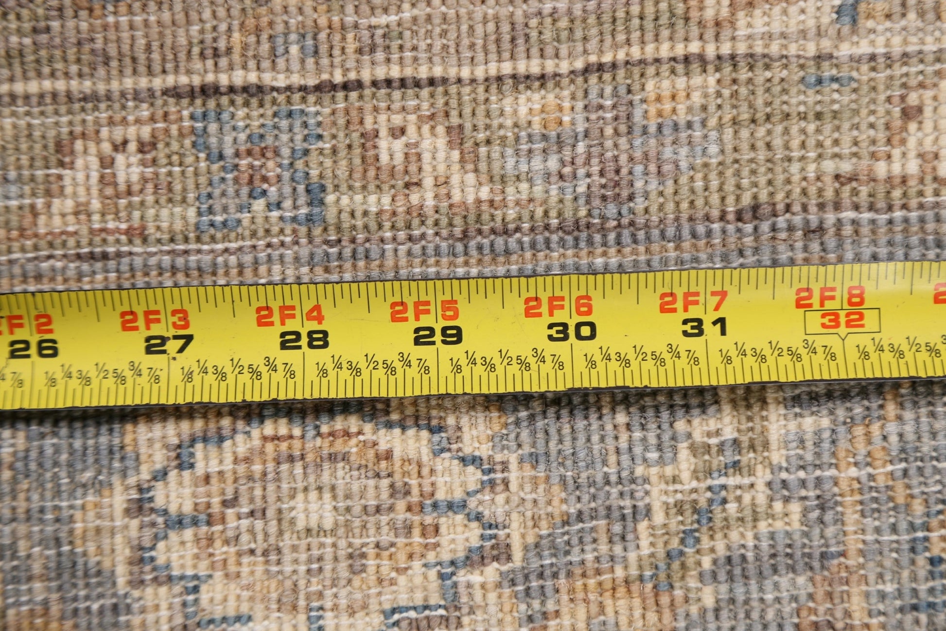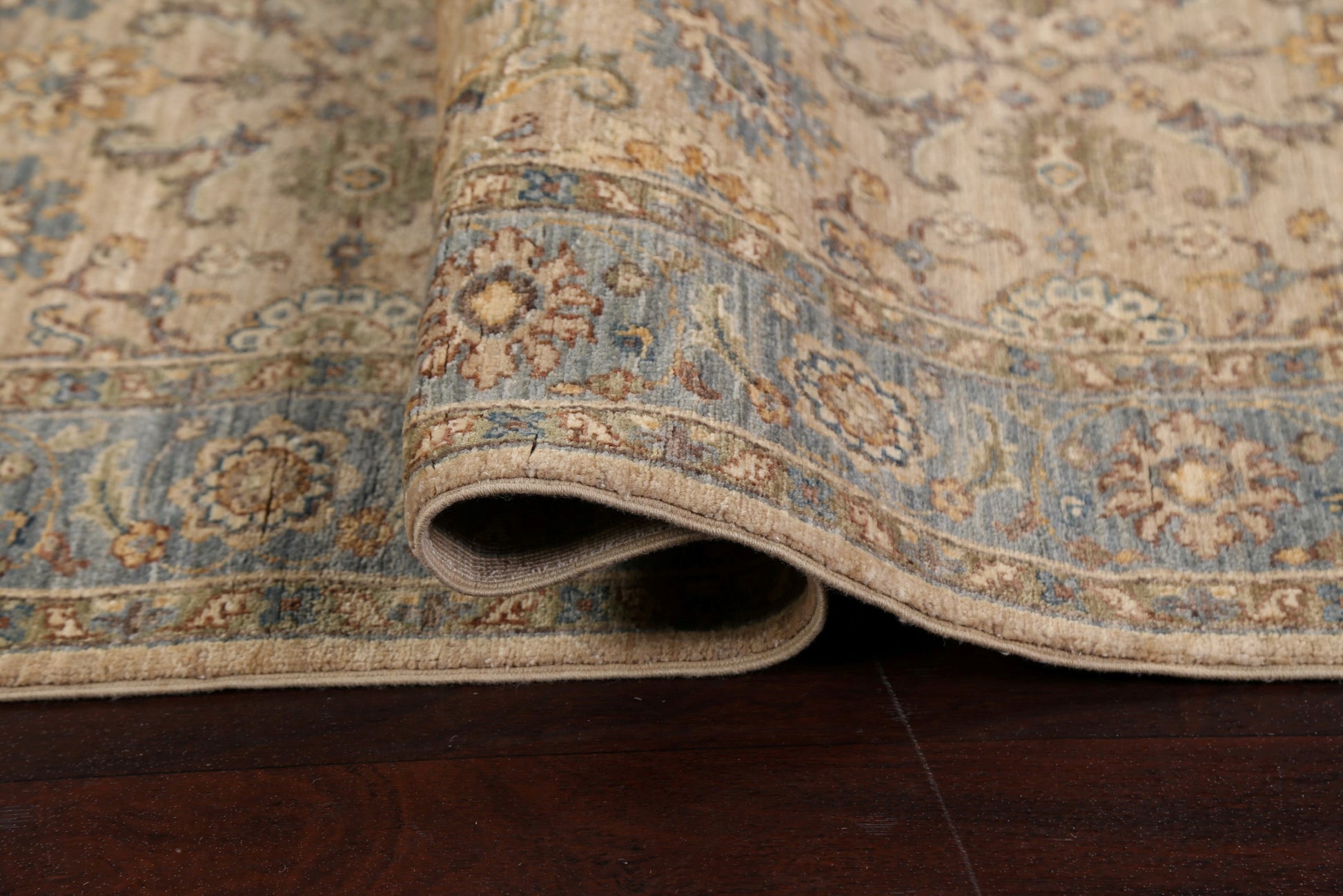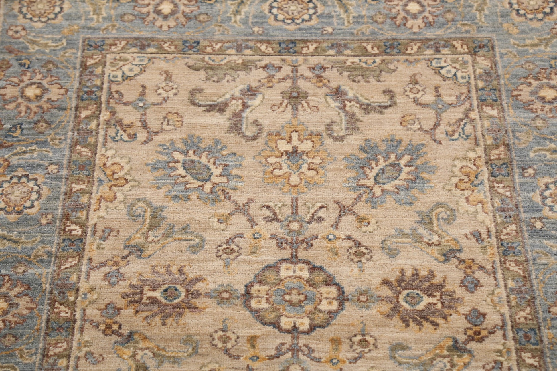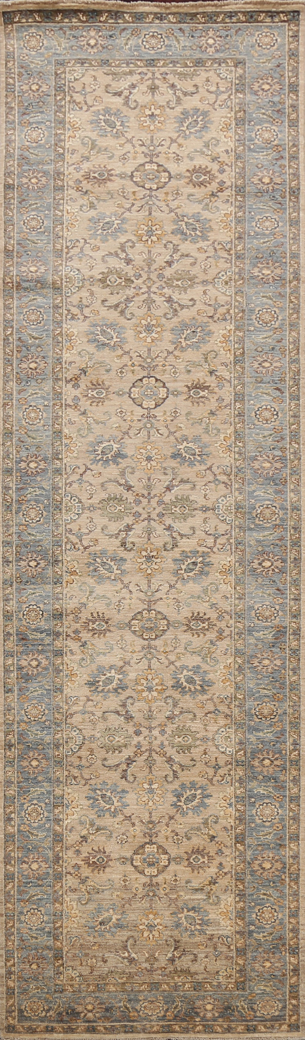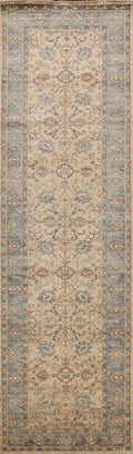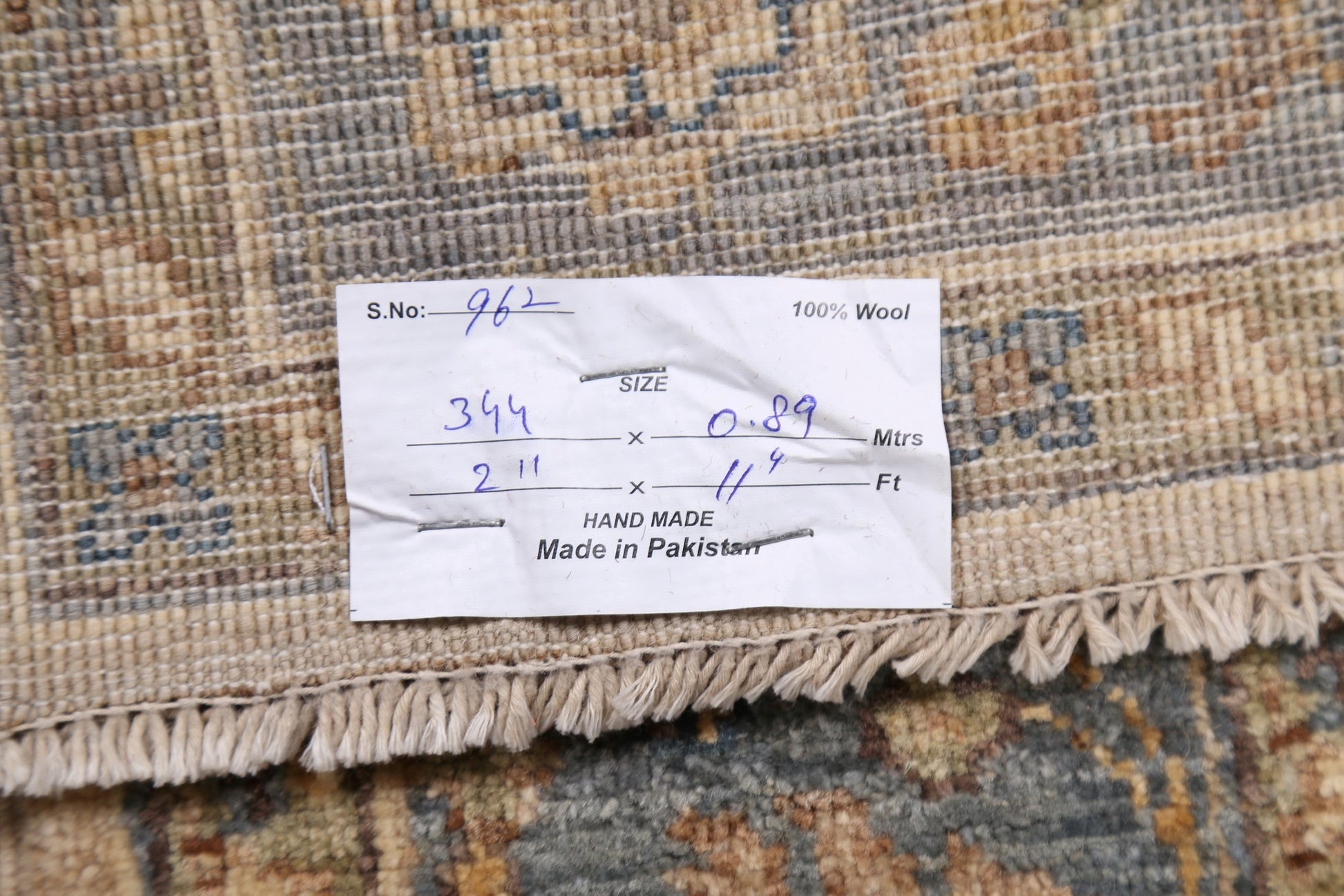 A Beautiful Genuine Pakistan Ziegler rug is Hand Knotted by skillful weavers in Pakistan with 100% Wool Material. This rug is in New, First Quality condition. dimensions are 11' 4'' X 2' 11'' in foot and 345 X 89 in centimeter. the primary color is Beige & Ivories.
